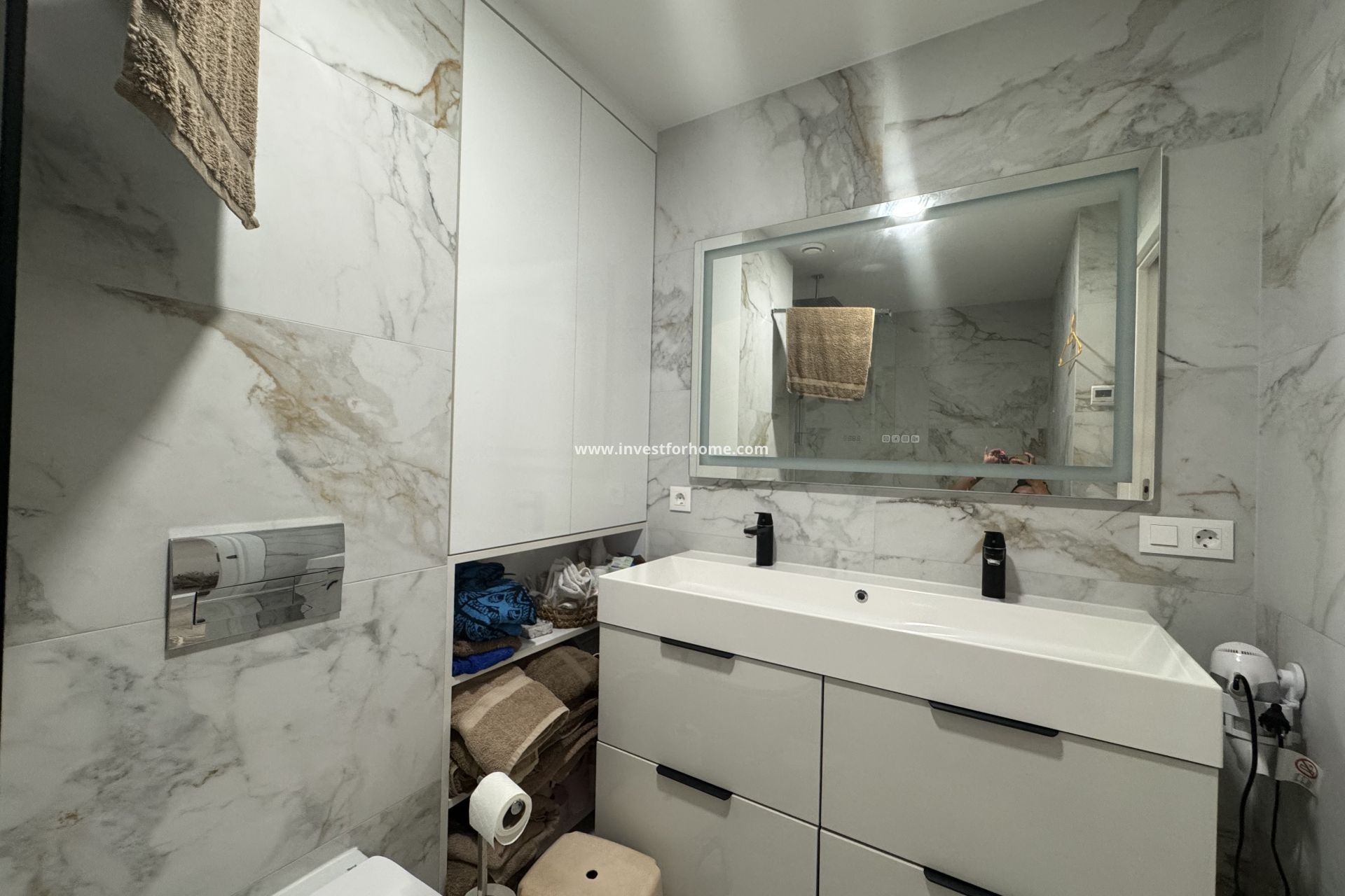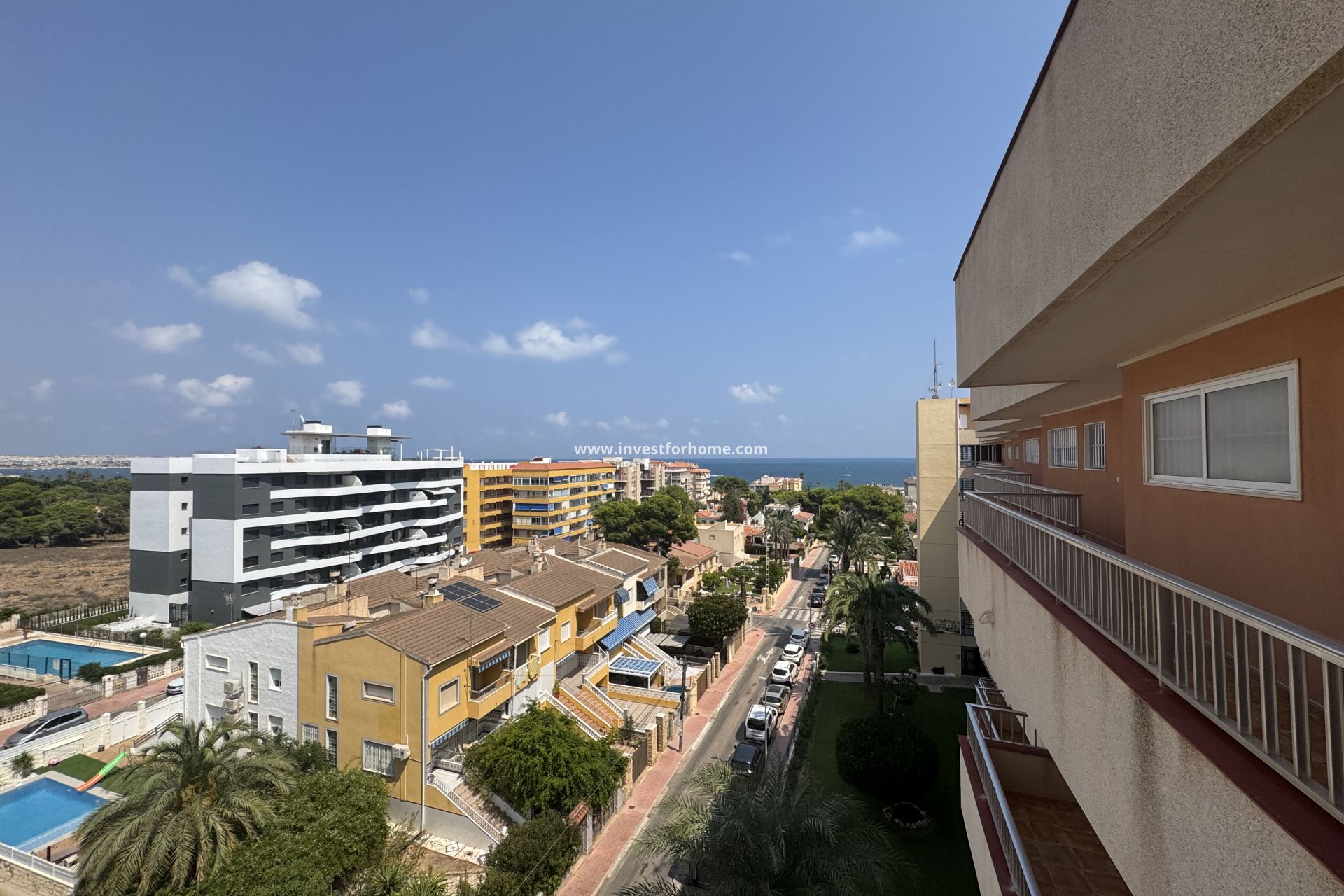 Ático en Rocío del Mar, Torrevieja. Ubicado a solo 200 m del mar, este luminoso ático en planta 6 ofrece 110 m² más una terraza acristalada de 12 m² orientada al sur. Dispone de 3 dormitorios (uno con salida a la terraza), 1 baño completo, 1 aseo, salón-comedor con aire acondicionado y ventilador, y cocina americana reformada con lavavajillas, lavadora y ventana exterior. La vivienda incluye puerta de seguridad, se vende amueblada y cuenta con ascensor, piscina y aparcamiento comunitario. Situado en la tranquila urbanización de Rocío del Mar, con todos los servicios a su alcance y excelente conexión por carretera. Características destacadas: 3 dormitorios y 2 baños (1 completo + 1 aseo) 110 m² construidos + terraza acristalada de 12 m² Orientación sur Cocina americana reformada con electrodomésticos Salón-comedor con A/C y ventilador Aire acondicionado adicional en el pasillo Amueblado y equipado Puerta de seguridad Aparcamiento comunitario Piscina comunitaria Edificio con ascensor Ubicación: A 200 m del mar Zona residencial tranquila y consolidada Cerca de supermercados, restaurantes, hospitales y centros comerciales (La Zenia Boulevard) Fácil acceso a N-332 y AP-7 Próximo a playas con bandera azul, calas, campos de golf y zonas deportivas
