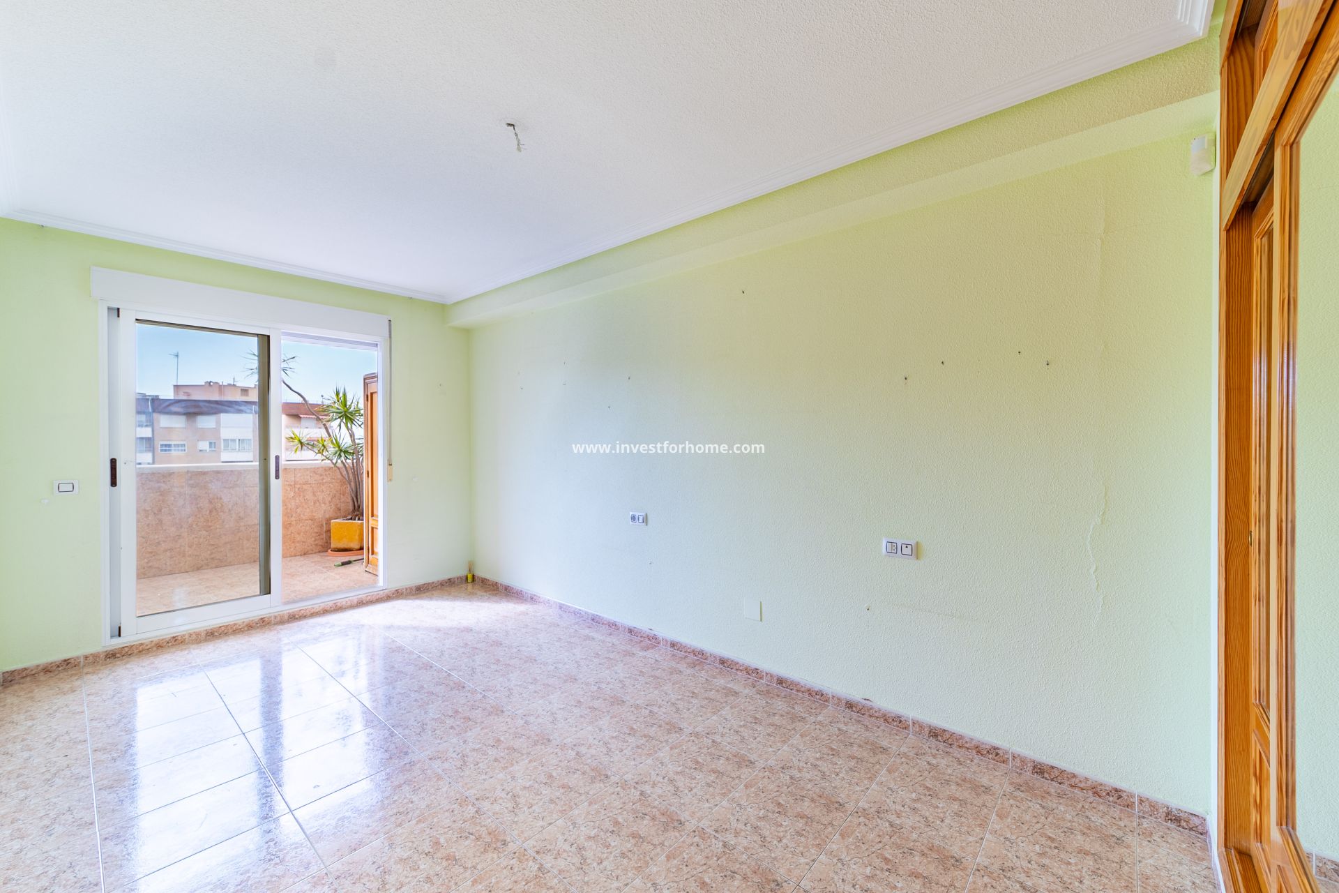 Ático reformado con vistas al mar en el centro de Torrevieja. Este acogedor ático de 76 m² a solo unos pasos del puerto, el paseo marítimo y las playas del Cura y Acequión. Situado en segunda línea de mar, ofrece tranquilidad y vistas despejadas. Distribución: 2 dormitorios: uno doble y otro triple con acceso directo al baño. 1 baño con ducha acristalada, sanitarios ROCA y doble iluminación. Cocina independiente con muebles a medida y salida a terraza-lavadero. Salón con suelo de madera y acceso a la terraza principal. Cuarto interior extra de almacenaje. Calidades y reforma: Suelos cerámicos y parquet en el salón. Aire acondicionado frío/calor. Armarios empotrados, rodapiés de madera y molduras decorativas. Grifería de alta calidad, doble grifo en ducha y fregadero con filtro de agua. Puerta blindada, caja fuerte y doble seguridad en accesos a terrazas. Terrazas y vistas: Dos terrazas de 3×3 m: una abierta con toma de agua y armario empotrado; otra acristalada con ventilador de techo. Vistas semi frontales al mar, sin edificios delante ni posibilidad de futuras construcciones. Toldos automáticos y paneles de cristal móviles. Edificio y entorno: Edificio del año 2000, con dos ascensores y cámaras de seguridad. Comunidad tranquila e internacional. Zona rodeada de supermercados, farmacias, colegios, restaurantes, parques y transporte público. Extras opcionales: Plaza de garaje a 30 m del edificio, con ascensor para vehículos. Dos trasteros de 5 m² cada uno, con escrituras independientes. La vivienda se vende sin electrodomésticos. Garaje y trasteros disponibles opcionalmente.