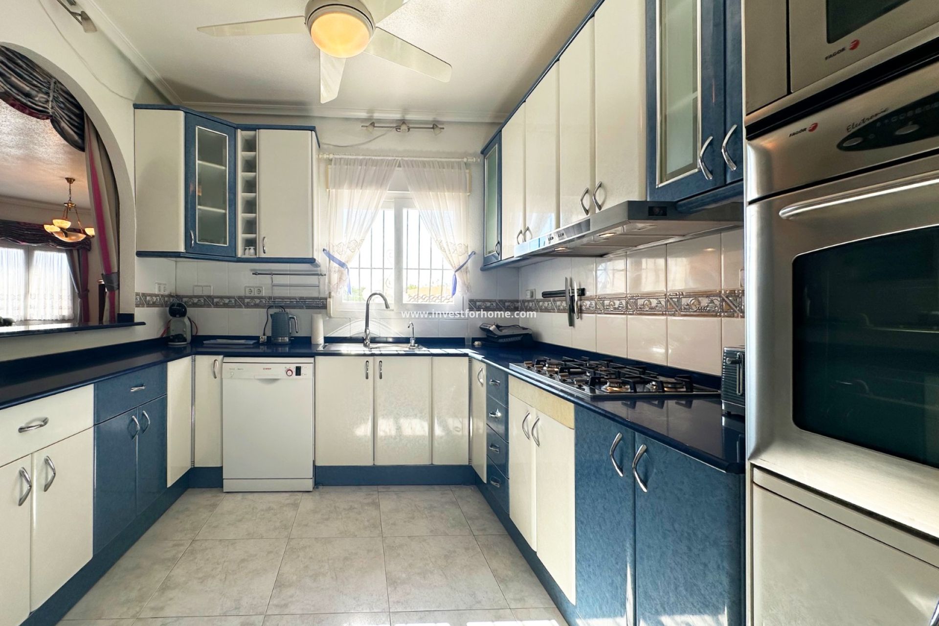 Tu sueño de una casa totalmente amueblada y lista para entrar a vivir, rodeada de la belleza de Playa Flamenca - Orihuela Costa, está a punto de hacerse realidad. ¡No dejes pasar esta oportunidad perfecta! Esta villa de estilo mediterráneo ofrece el mejor estilo de vida costero, situada a solo unos minutos de las doradas playas del Mediterráneo, del prestigioso campo de golf de Villamartín y del famoso bulevar de La Zenia. Orihuela Costa lo tiene todo: relajación, aventura o una mezcla de ambas cosas. Esta casa familiar de estilo mediterráneo ha sido meticulosamente diseñada para su comodidad y cuenta con acabados de alta calidad y todas las comodidades modernas esenciales. Tiene todo lo que necesita para una mudanza sin complicaciones. Esta impresionante villa de lujo, hecha a medida y totalmente amueblada, con piscina de agua salina climatizada, ofrece el mejor estilo de vida en un entorno privilegiado. Nada más entrar, le recibirá un ambiente luminoso y acogedor gracias a su orientación sur, que permite que la luz natural inunde cada rincón. La villa está convenientemente situada en una sola planta y cuenta con tres amplios dormitorios dobles, perfectos para descansar y relajarse, así como dos baños con ducha a ras de suelo. La suite principal, con un armario empotrado de pared a pared y baño en suite, ofrece un toque de sofisticación, incluyendo calefacción por suelo radiante para mayor comodidad. La cocina independiente, totalmente equipada con acabados de alta calidad, es un sueño para los amantes de la gastronomía y se comunica perfectamente con el comedor, creando el espacio ideal para compartir momentos con la familia y los amigos.Desde el amplio salón y la zona de estar panorámica, con una mesa de billar y una mesa de comedor a medida, y una nevera-congelador de tamaño americano, se puede disfrutar de una encantadora vista de la piscina y el jardín. Esta villa también incluye muchos extras y una serie de comodidades excepcionales: aire acondicionado por conductos para un confort personalizado, armarios empotrados que optimizan el espacio y, además, en el jardín trasero, para un almacenamiento adicional, se puede disfrutar de un práctico cobertizo para mayor comodidad.Disfrute de las instalaciones perfectas para relajarse y mantenerse activo. La ubicación es inmejorable, a solo 1,8 km de la playa y rodeada de servicios como centros comerciales, médicos, colegios y parques, lo que la convierte en el lugar ideal para vivir.