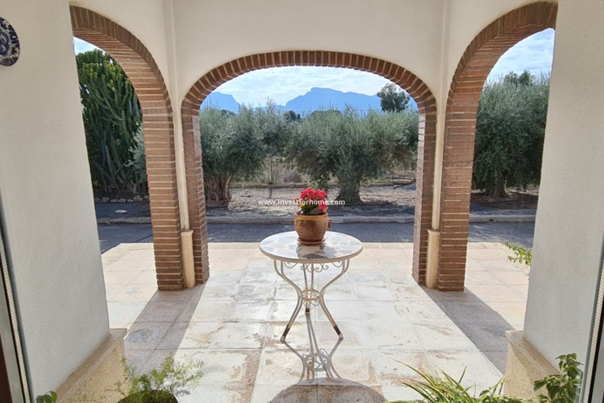 Esta encantadora villa típicamente española se encuentra en una gran propiedad de 10.000 m² y es ideal, por ejemplo, para un empresario que necesita mucho espacio de trabajo pero también quiere estar cerca de la casa privada y la familia. Un espacio de trabajo completamente cerrado de 400 m², un taller cubierto en el exterior, numerosos trasteros y áreas de almacenamiento... en resumen, ¡demasiado para hablar pero realmente vale la pena! Si no necesita estos espacios de trabajo, también puede convertirlos en un hogar adicional si lo desea. La casa particular tiene una superficie habitable total de 330 m², todo en una sola planta y consta de una cocina muy espaciosa con chimenea cerrada, un gran trastero / lavadero, una sala de estar, sala de estar - comedor, 2 halls de entrada , entrada (delantera y trasera), 2 baños, 3 dormitorios, un amplio vestidor y una hermosa terraza cubierta. Hay calefacción central. La casa tiene un sótano excepcionalmente grande que se puede utilizar para muchos propósitos. La sala técnica de la piscina se encuentra en una parte independiente del sótano. El espacio privado al aire libre también contiene una hermosa cocina al aire libre con auténticos hornos de leña, plancha, chimenea, etc. Y detrás una bonita zona de relax vallada con piscina climatizada con elementos de jacuzzi integrados en la escalera y cascada con chorros. También hay una zona exterior cubierta y un baño/vestidor con ducha y WC. La finca está protegida por un sistema de alarma con cámaras. Toda la finca se describe en 2 actos. La suma (impuesto sobre bienes inmuebles) total anual es de unos 1000 € No dude en ponerse en contacto con nosotros para más información o para una visita.