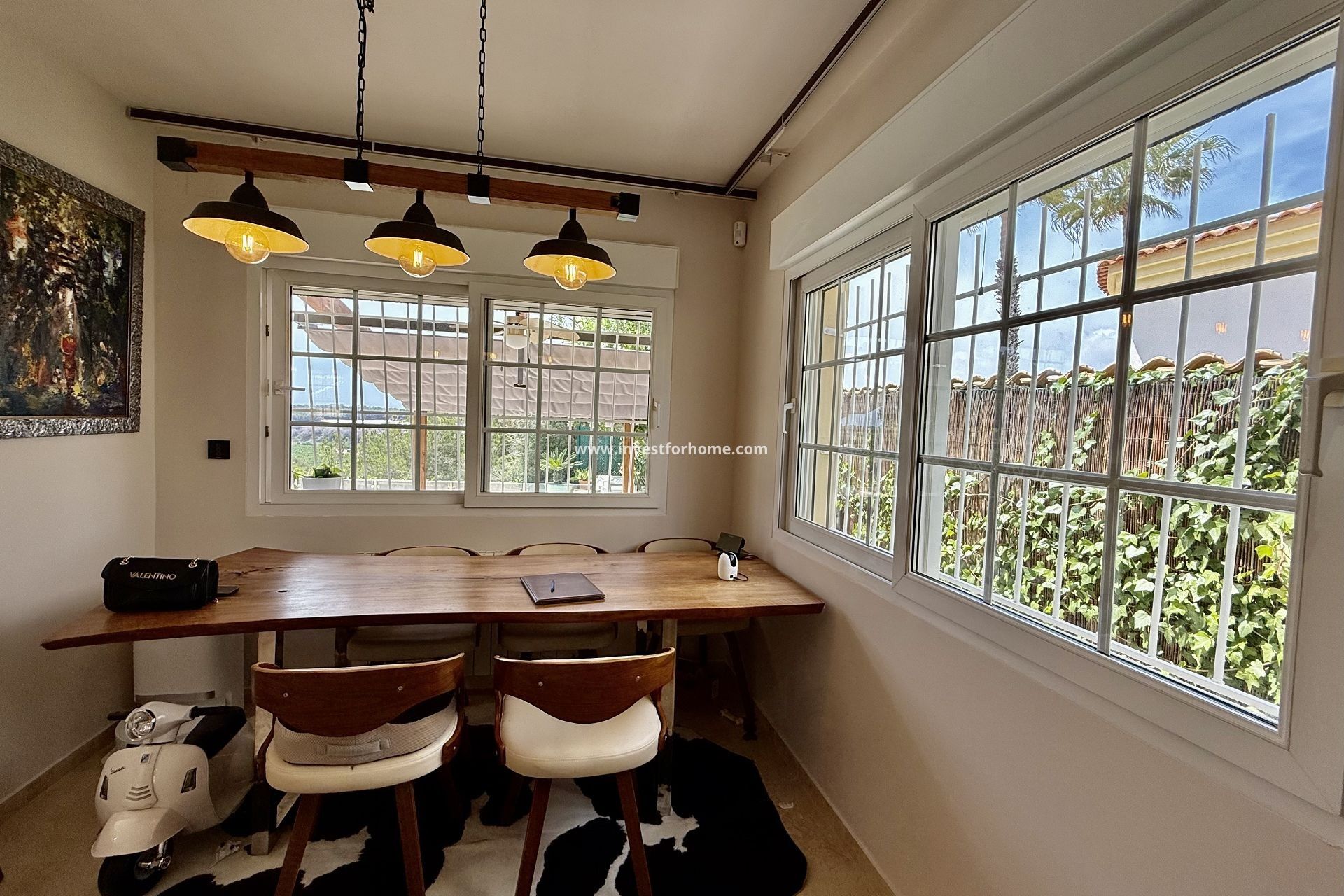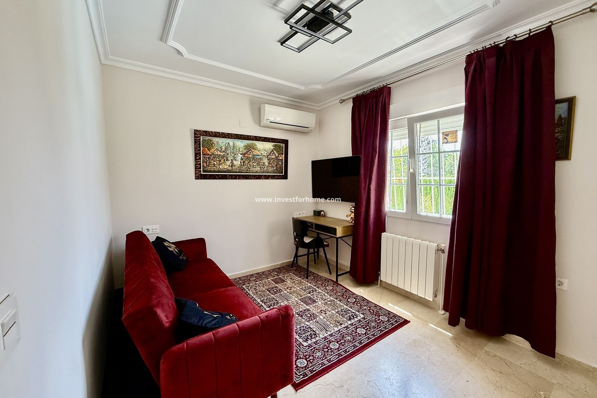 ¡Hermosa Villa de Golf rodeada de naturaleza serena!. Visite esta hermosa villa rodeada de naturaleza serena. Esta casa familiar, completamente renovada, ofrece el equilibrio perfecto entre comodidad moderna y máxima privacidad, garantizando que disfrute de su espacio con tranquilidad. Con dos plantas de espacios habitables cuidadosamente diseñados, esta propiedad es el refugio perfecto para quienes buscan paz y lujo.Al entrar en la villa, le recibirá una acogedora sala de estar y comedor que se integra a la perfección con una cocina abierta. Grandes ventanales enmarcan la vista a la resplandeciente piscina, creando un ambiente luminoso y espacioso. La planta baja también cuenta con dos dormitorios bien equipados, un baño elegante y moderno, y un práctico lavadero, que ofrece comodidad y funcionalidad con amplio espacio de almacenamiento.En la planta superior, encontrará dos amplios dormitorios adicionales con abundante luz natural y espacio de almacenamiento incorporado. Lo más destacado de esta planta es el lujoso baño, diseñado con acabados de alta gama para crear un espacio de spa. Desde la planta superior, salga a la terraza privada, donde podrá disfrutar de impresionantes vistas al mar y al campo de golf, perfectas para relajarse o recibir invitados.El jardín de la villa ha sido diseñado para facilitar su mantenimiento, ofreciendo amplio espacio para aparcar vehículos y disfrutar de la vida al aire libre. La gran piscina es un elemento destacado, con una separación acristalada que mejora la conexión entre la zona de piscina y la zona de barbacoa y chill-out adyacente. Ya sea para celebrar una reunión o para disfrutar de un tranquilo día junto a la piscina, este espacio al aire libre es ideal para relajarse y disfrutar de la tranquilidad del entorno.Con privacidad, lujo e impresionantes vistas al mar, esta villa ofrece una experiencia de vida verdaderamente excepcional. Es perfecta para quienes valoran la tranquilidad, el estilo y la conexión con la naturaleza.