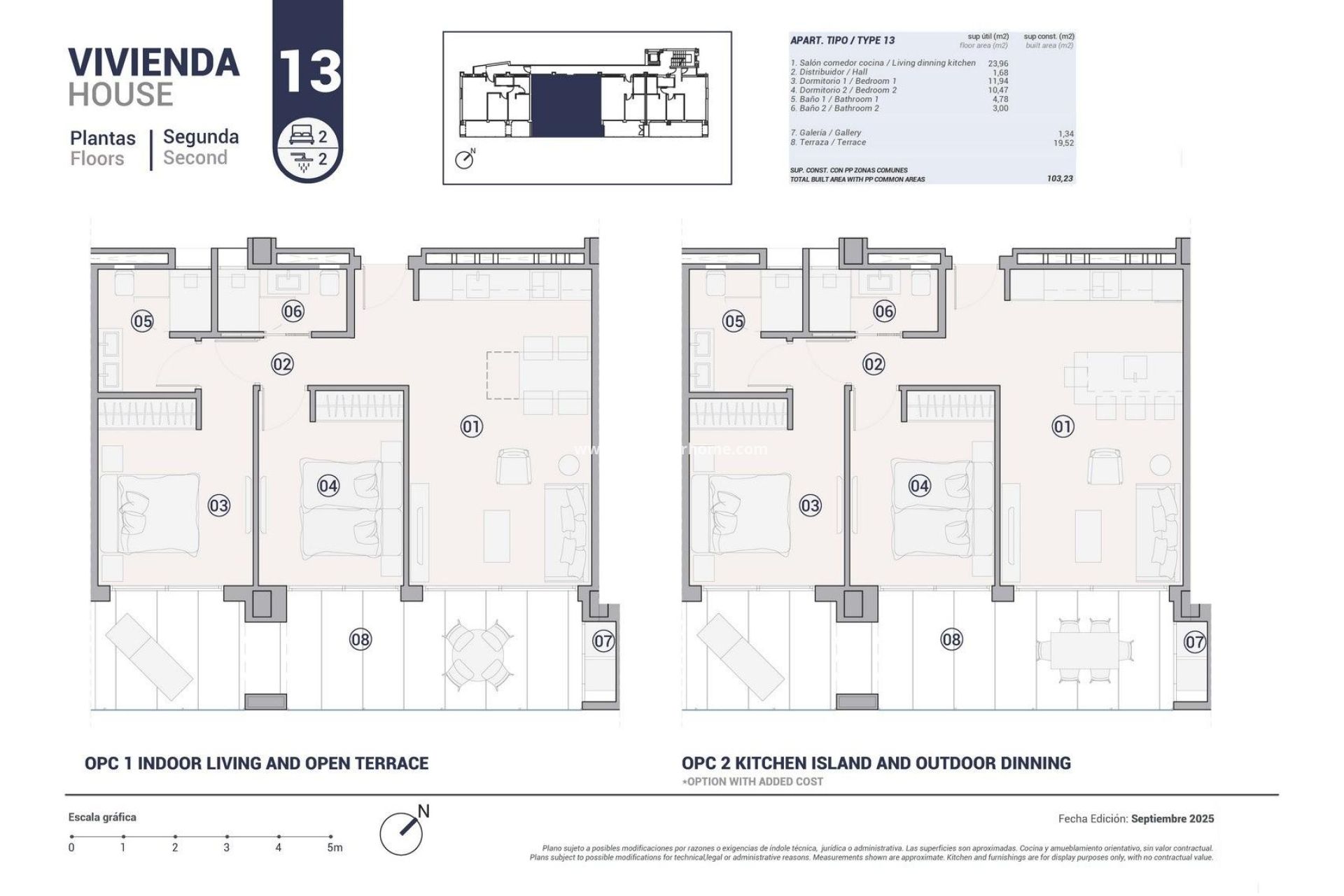 Apartamentos de lujo frente al mar en Villajoyosa con vistas panorámicas al Mediterráneo Vida exclusiva junto al mar en la Costa Blanca Disfrute del mejor estilo de vida mediterráneo en este nuevo complejo residencial frente al mar en Villajoyosa, una encantadora ciudad costera conocida por sus coloridas casas, su vibrante cultura local y sus aguas cristalinas. Situadas a pocos metros de la playa de Mallaeta, estas viviendas ofrecen impresionantes vistas al mar y acceso inmediato al paseo marítimo y a las cercanas playas de arena dorada, como la playa de Villajoyosa, Cala Puntes del Moro y Playa Paraíso, todas ellas perfectas para nadar, bucear o disfrutar de un día soleado junto al mar. Villajoyosa está convenientemente situada a 10 minutos de Benidorm, a 30 minutos del aeropuerto de Alicante (45 km) y bien comunicada por tranvía con la estación de tren de alta velocidad de Alicante, lo que la convierte en un lugar ideal tanto para residencia permanente como para vacaciones. Elegante diseño mediterráneo y calidad superior Esta promoción boutique ofrece apartamentos de 1 y 2 dormitorios con amplias terrazas, jardines privados en las plantas bajas o soláriums en los áticos. Cada vivienda está diseñada con un estilo mediterráneo moderno, que combina materiales naturales, colores suaves y líneas arquitectónicas limpias que se integran a la perfección con el entorno costero. Los acabados de alta calidad incluyen: Cocinas totalmente equipadas con electrodomésticos integrados Aire acondicionado (frío/calor) instalado Baños con tocador, espejo y mampara de ducha Opciones de personalización para los acabados interiores Plaza de aparcamiento privada y trastero incluidos en cada vivienda Servicios estilo resort con impresionantes vistas Los residentes pueden disfrutar de excepcionales zonas comunes que elevan la experiencia de vida. El complejo cuenta con una piscina infinita con vistas al Mediterráneo, un jacuzzi climatizado, un gimnasio al aire libre y hermosos jardines y zonas de descanso. Cada detalle ha sido diseñado para crear un refugio costero sereno y lujoso. La auténtica esencia de Villajoyosa Villajoyosa, también conocida como «La Vila», es un pintoresco pueblo de pescadores lleno de historia, encanto y sabor. Su casco antiguo, con calles empedradas y casas de colores, ofrece un ambiente mediterráneo auténtico, complementado con una excelente oferta gastronómica y la famosa tradición local del chocolate. Su hogar perfecto en la costa y una oportunidad de inversión Combinando ubicación, calidad y exclusividad, esta promoción frente al mar en Villajoyosa ofrece un estilo de vida excepcional y un alto potencial de inversión. Póngase en contacto con nosotros hoy mismo para descubrir su nuevo hogar junto al mar en la Costa Blanca.