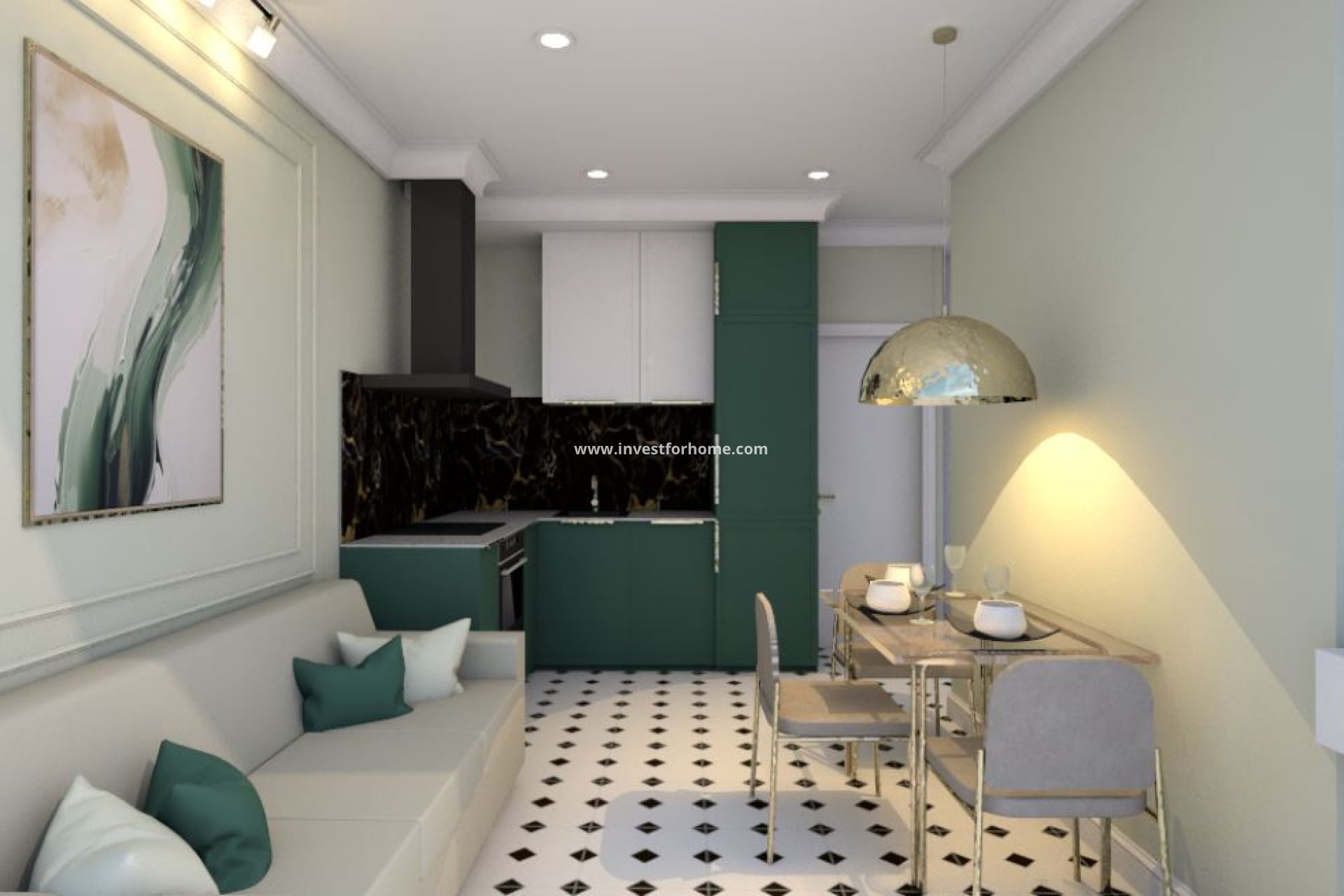 Moderno estudio con renovación de diseño en Torrevieja. El apartamento de 35 m2 se vende con muebles y electrodomésticos, y cuenta con su propia terraza.A poca distancia de la playa y el paseo marítimo central;600 metros de distancia de hospital, escuelas, restaurantes;Buen acceso al transporte públicoEl apartamento ha sido renovado por completo.Suelo radiante en todo el apartamento;Baños equipados con todo lo necesario;Aire acondicionado;Cerraduras electrónicas y vigilancia por video;Ascensor con acceso desde la calle.Posibilidad de reservar online, así como de comprar a crédito en el banco al 4-6% de interés anual.