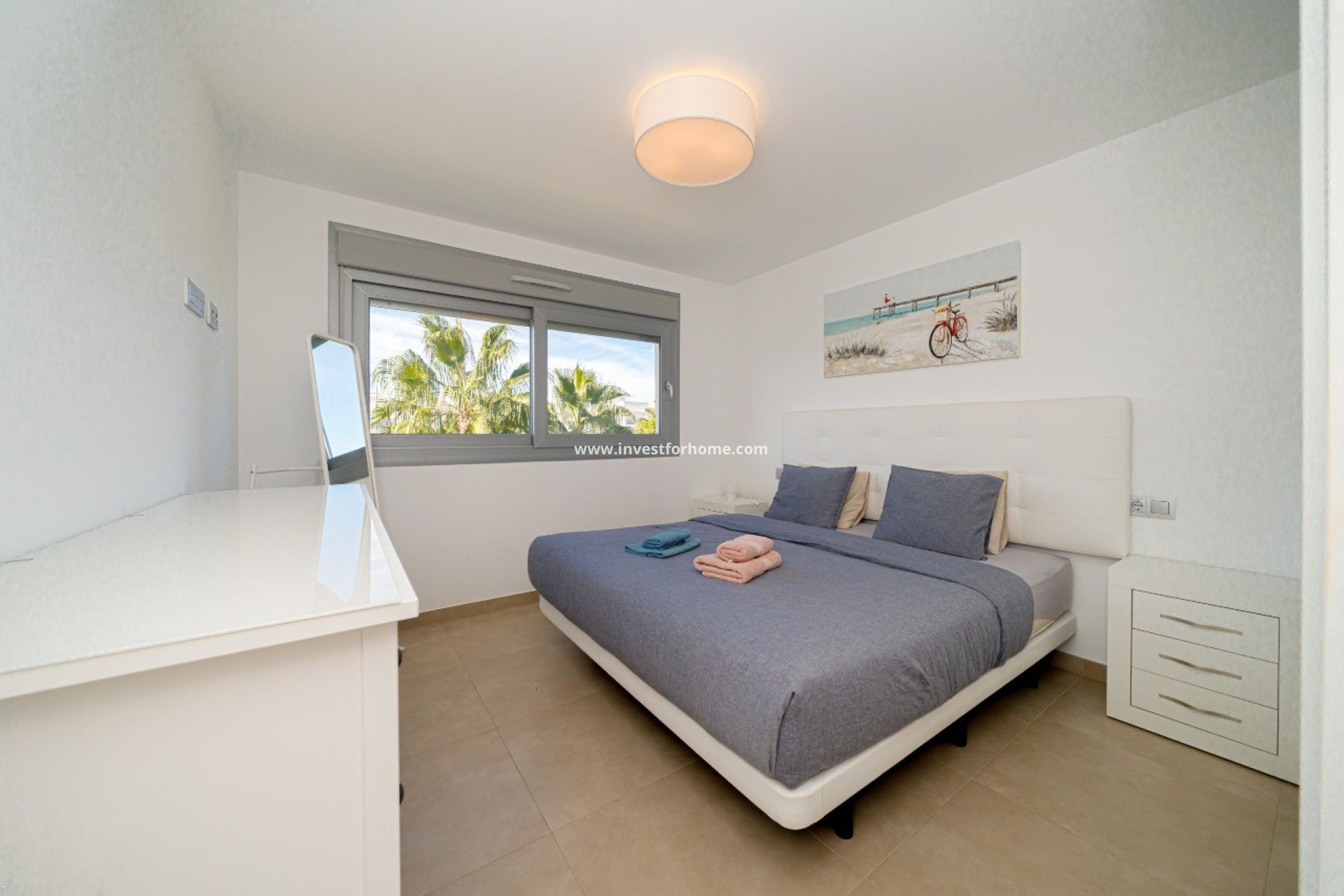 Situado en la agradable zona residencial de Vistabella Golf, que además de su precioso campo de golf ofrece una completa gama de servicios a poca distancia a pie: supermercado, restaurantes, farmacia, peluquería, pistas de pádel... Vistabella, también conocida como «Entre Naranjos», está cerca de la autopista y ofrece una buena conexión con los pueblos de los alrededores y las playas de Torrevieja y Orihuela Costa a través de la línea de autobús Costa Azul Orihuela-Mil Palmeras. Este apartamento está situado en la primera y última planta de una bonita residencia de reciente construcción (2017), que forma parte de la fase III de la promoción Capri. Los edificios de Capri 3 tienen un diseño moderno que combina funcionalidad y estilo. Los espacios interiores de las viviendas son luminosos y amplios. Las zonas comunes son verdes y están bien acondicionadas con diferentes espacios: petanca, descanso, piscina comunitaria. Descripción -Cocina equipada. -Salón. -2 dormitorios. -2 baños. -Terraza. -Solárium. -Plaza de aparcamiento privada. Se vende completamente amueblado y equipado: electrodomésticos, iluminación, mobiliario interior/exterior, aire acondicionado frío/calor centralizado. Su gran solárium permite disfrutar del sol durante todo el día y ofrece una bonita vista de los campos circundantes. Las playas de Orihuela Costa están a solo 15 km, una distancia ideal para vivir en un entorno verde, tranquilo y sereno, sin estar lejos del mar.