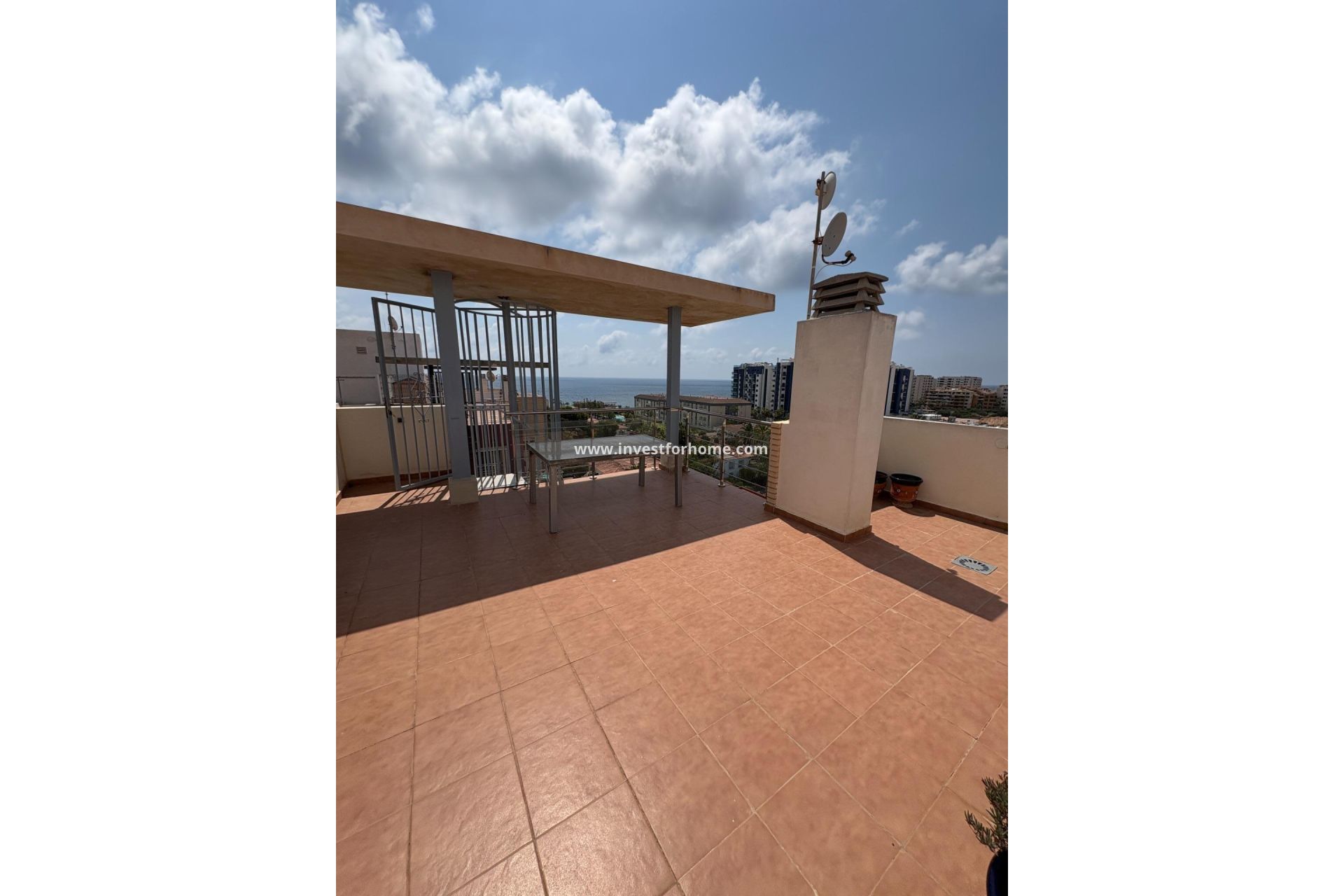 Bienvenido a este elegante y perfectamente ubicado ático en la codiciada zona residencial de Residencial AQVA en la soleada Punta Prima: un hogar que combina estilo, comodidad y ese toque adicional de distinción. La ubicación es realmente inmejorable. A tan solo unos minutos a pie encontrarás una amplia variedad de servicios, como restaurantes, cafeterías, tiendas y supermercados. Para los amantes del mar, la playa está a pocos minutos, y los entusiastas del golf podrán disfrutar de varios campos de golf de renombre en las cercanías. Punta Prima es conocida por su ritmo animado, pero a la vez relajado, donde todo está cerca y la calidad de vida es la prioridad. La propiedad está situada en el piso superior y ofrece una distribución bien pensada con dos luminosos dormitorios y un baño moderno. Desde el salón, se accede a un soleado balcón orientado al este que da al mar, un lugar perfecto para disfrutar del café por la mañana o seguir la vida del vecindario a lo largo del día. Subiendo un nivel más, descubrirás el privado solárium, un auténtico oasis con vistas panorámicas que se extienden por kilómetros, tanto hacia la zona como hacia el resplandeciente mar Mediterráneo. Hay amplio espacio para muebles de salón y tumbonas, y el solárium también está equipado con una práctica solución de almacenamiento para cojines y accesorios, frigorífico y una refrescante ducha exterior: todo lo necesario para disfrutar de la vida perfecta bajo el sol español. Ademas el place de garaje esta incluido en el precio Este ático representa una oportunidad única de adquirir una propiedad que combina confort moderno con un diseño elegante. Además, se encuentra en una de las mejores ubicaciones de la costa, perfecta tanto para unas vacaciones de ensueño como para vivir cómodamente durante todo el año.
