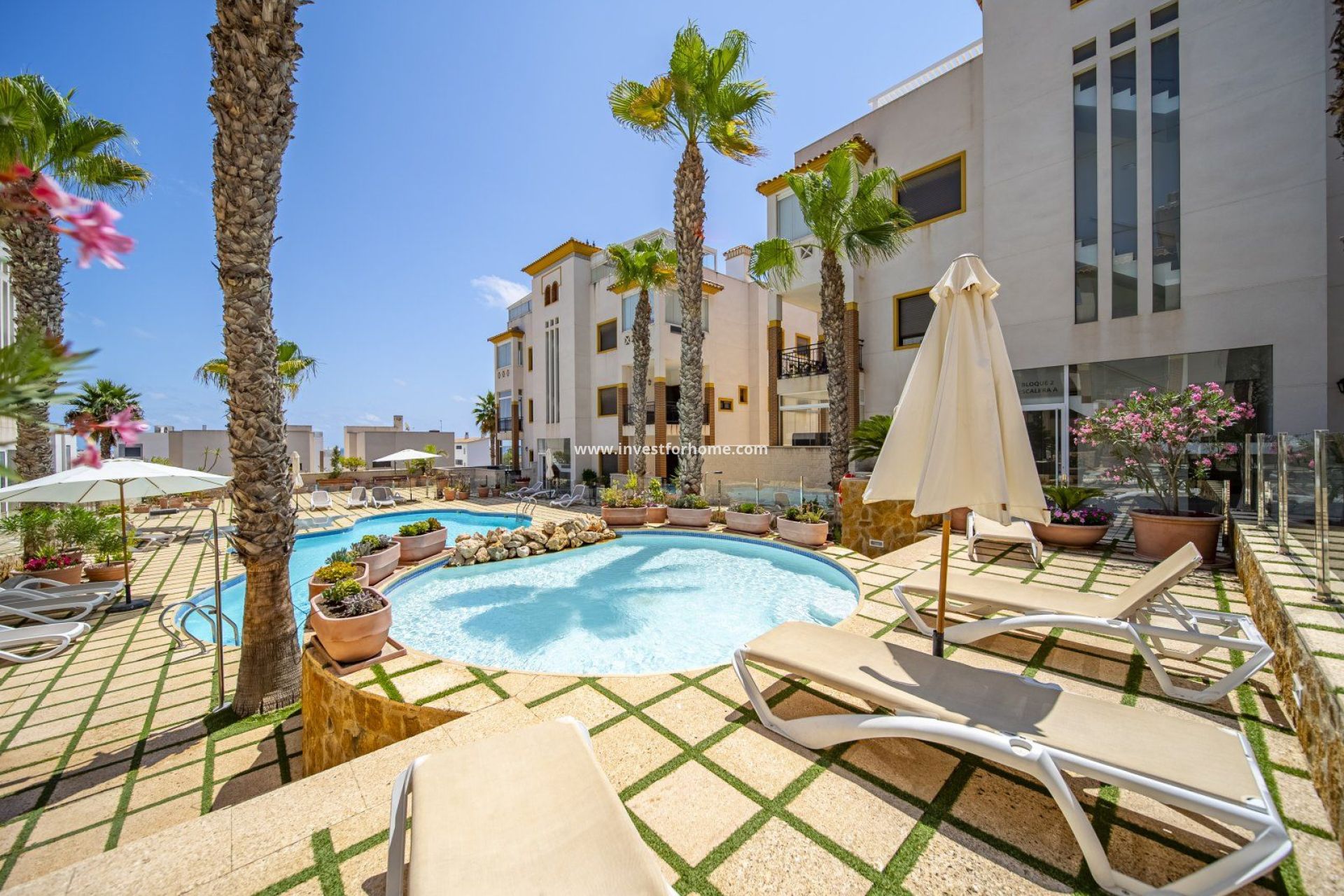 Apartamento en planta baja con vistas al mar en Guardamar del Segura. Ubicado en un cuidado residencial de estilo mediterráneo, este apartamento ofrece 70 m² construidos con 2 dormitorios y 2 baños, uno de ellos en suite. Dispone de un luminoso salón-comedor con cocina abierta y una amplia terraza de 40 m² con vistas al mar. Incluye plaza de parking subterráneo y trastero. El complejo cuenta con piscina comunitaria con cascada y zona de playa, piscina interior climatizada, gimnasio, sauna y vestuarios. Construido en 2013, se encuentra a solo 850 m de la playa de Guardamar y cerca de bares, tiendas y restaurantes. El aeropuerto de Alicante está a 30 min en coche. Características destacadas: 2 dormitorios y 2 baños (1 en suite) 70 m² construidos + terraza de 40 m² Vistas al mar 1 plaza de parking subterráneo y trastero Piscina exterior con cascada y zona de playa Piscina interior climatizada Gimnasio, sauna y vestuarios Año de construcción: 2013 Gastos anuales: IBI: 386,43 € Comunidad: 1883 € Distancias: A 850 m de la playa de Guardamar A menos de 1KM de bares, restaurantes y tiendas Aeropuerto de Alicante a 30 minutos