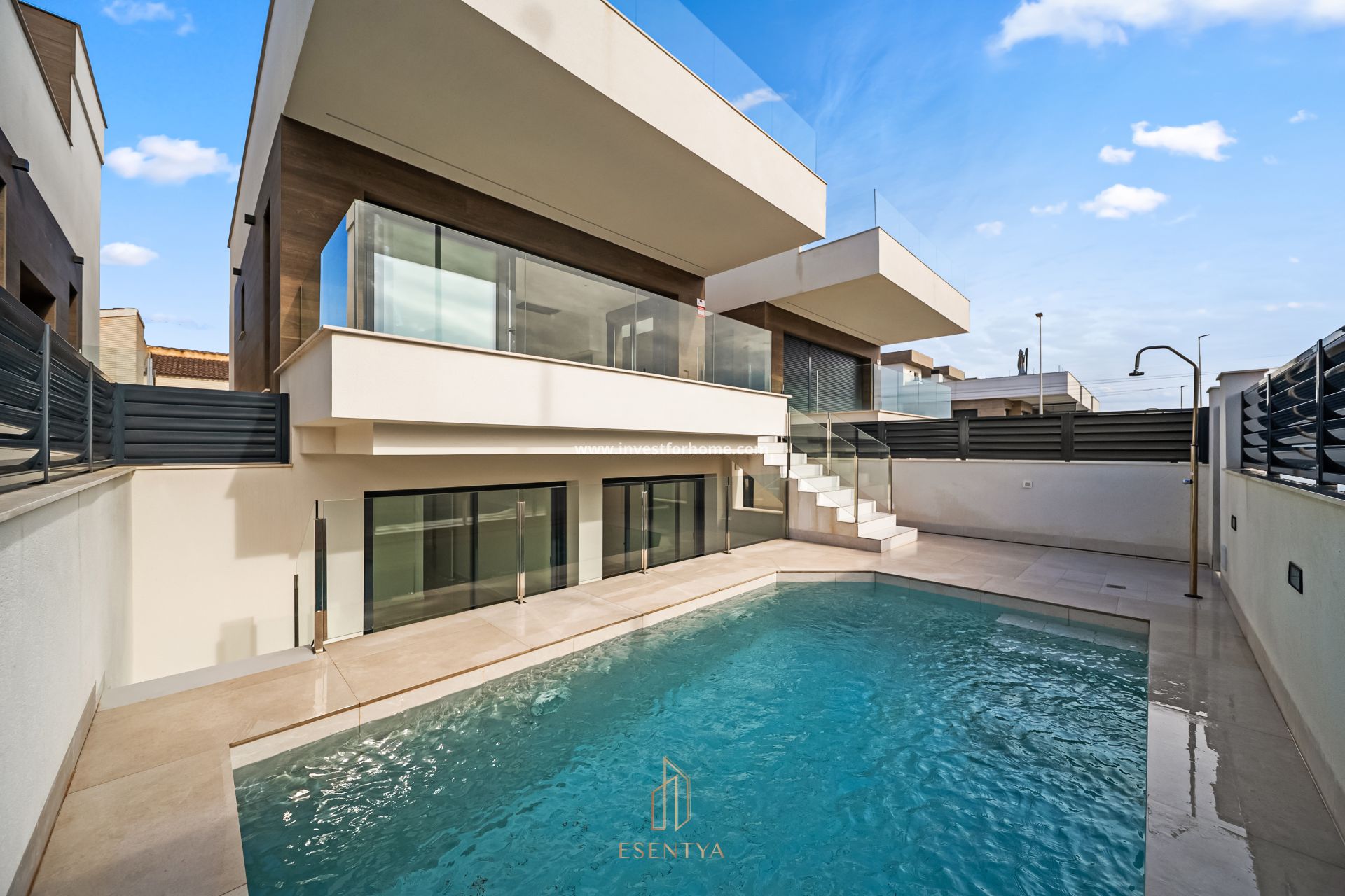 ¡Descubre Villa Playa: Exclusivas villas con vistas al mar! Sumérgete en el lujo y el encanto de Villa Playa, un proyecto excepcional que te invita a vivir rodeado de belleza y comodidad en el pintoresco pueblo de La Mata, justo a las afueras de Torrevieja. Imagina despertar cada mañana con vistas al mar desde tu villa de diseño moderno y elegante. Estas 3 espaciosas villas, construidas con materiales de alta calidad y técnicas modernas, te brindarán una experiencia de vida incomparable. Son las primeras viviendas que han sido construidas con un sistema de pared altamente aislado desarrollado en Noruega, asegurando aislamiento térmico durante todo el año. Desde tu terraza privada, podrás contemplar las impresionantes vistas del Mediterráneo, mientras te llenas de energía con los rayos del sol gracias a su orientación sur. Las villas son un oasis de tranquilidad y privacidad, a solo 70 metros de una de las playas más hermosas de la Costa Blanca. Cada villa cuenta con cuatro dormitorios, todos con armarios empotrados, y tres baños. Disfruta de tu propia área exterior privada con piscina, donde podrás relajarte y disfrutar del cálido clima mediterráneo. Además, contarás con plaza de parking dentro de la parcela. El interior de las villas están diseñadas pensando hasta el último detalle. En la primera planta, encontrarás un dormitorio con armario empotrado, 1 baño y una amplia sala de estar  con cocina abierta. Desde la sala de estar, accederás directamente a una terraza orientada al sur con vistas espectaculares al mar. Los amplios ventanales y las puertas correderas llenan los espacios de luz natural y crean una sensación de amplitud. En el semisótano, encontrarás tres dormitorios, dos baños (uno de ellos en-suite) y trastero. Dos de los dormitorios en la planta baja tienen acceso directo al área exterior y a la piscina a través de grandes puertas correderas, brindándote la experiencia de vivir en armonía con el entorno. Para terminar, un espacioso solárium desde donde podrás disfrutar de momentos inolvidables contemplando el Mediterráneo y los alrededores. La propiedad está totalmente vacía, se ha utilizado inteligencia artificial para simular como podría verse la vivienda amueblada. Características principales:  - Orientación sur - 4 dormitorios 3 baños - Vistas al mar desde terraza y solárium - 70 mts de la playa - Aire acondicionado centralizado - Suelo radiante en toda la vivienda Información de la zona: Al salir de la vivienda encontrarás el encantador paseo marítimo, supermercados y una variedad de restaurantes, bares y cafeterías. A solo 600 metros del centro de La Mata, tendrás todas las comodidades a tu alcance, desde tiendas y bancos hasta farmacias y consultorios médicos. La Mata es un pueblo de aproximadamente 1500 habitantes en las afueras de Torrevieja, a 40 km al sur del aeropuerto de Alicante, a lo largo del mar Mediterráneo. La playa de La Mata, que se extiende a lo largo de 2.5 km, es una de las más populares de la zona. Ha sido galardonada con la Bandera Azul Europea durante varios años consecutivos, el reconocimiento más alto en términos de calidad. Gracias a los planes de regulación local y a su ubicación rodeada de tres grandes áreas naturales, La Mata conservará su estatus como una joya a lo largo del Mediterráneo, preservando en gran medida su carácter español. Además, los tres parques naturales ofrecen oportunidades únicas para hacer senderismo y disfrutar de la naturaleza. ¡Contáctanos para obtener más información y reservar tu visita!