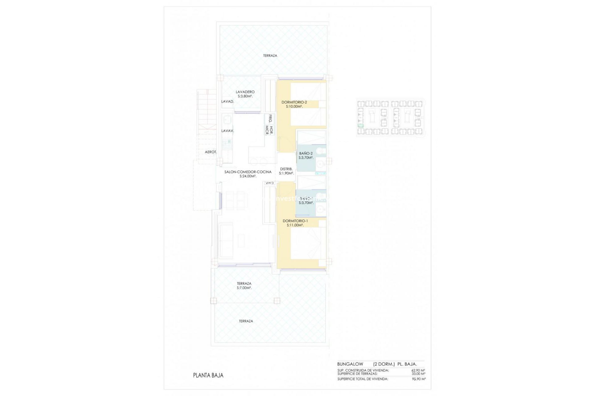 RESIDENCIAL DE OBRA NUEVA DE BUNGALOWS EN LOS BALCONES, TORREVIEJA Complejo residencial de nueva construcción con magníficas vistas a la salina rosa en Los Balcones. El complejo consta de 104 bungalows de 2 y 3 dormitorios, los bungalows de la última planta tienen solariums privados con vistas panorámicas a la laguna salada y los bungalows de la planta baja tienen grandes terrazas con vistas a la zona verde. Estos bungalows comparten hermosas zonas verdes y 2 grandes piscinas. Hay disponibles plazas de aparcamiento subterráneo y trasteros opcionales. Este residencial ofrece un diseño moderno, materiales seleccionados, apartamentos acabados con las más altas especificaciones utilizando sólo materiales de primera calidad. El Residencial se construirá en la ladera de una colina, de esta manera la vista y también el aire es claro y de calidad única. Los Balcones se encuentra a las afueras de Torrevieja con todos los servicios accesibles, a tan solo 5 minutos de la Playa de Los Náufragos, supermercados, el colegio y el Centro Comercial La Zenia Boulevard, y a un minuto del Hospital Universitario de Torrevieja. Además, encontrará 4 campos de golf a poca distancia en coche, incluyendo el galardonado Las Colinas Golf & Country Club. Complejo situado a 40 minutos del aeropuerto de Alicante y a 1 hora del aeropuerto de Murcia - Corvera.