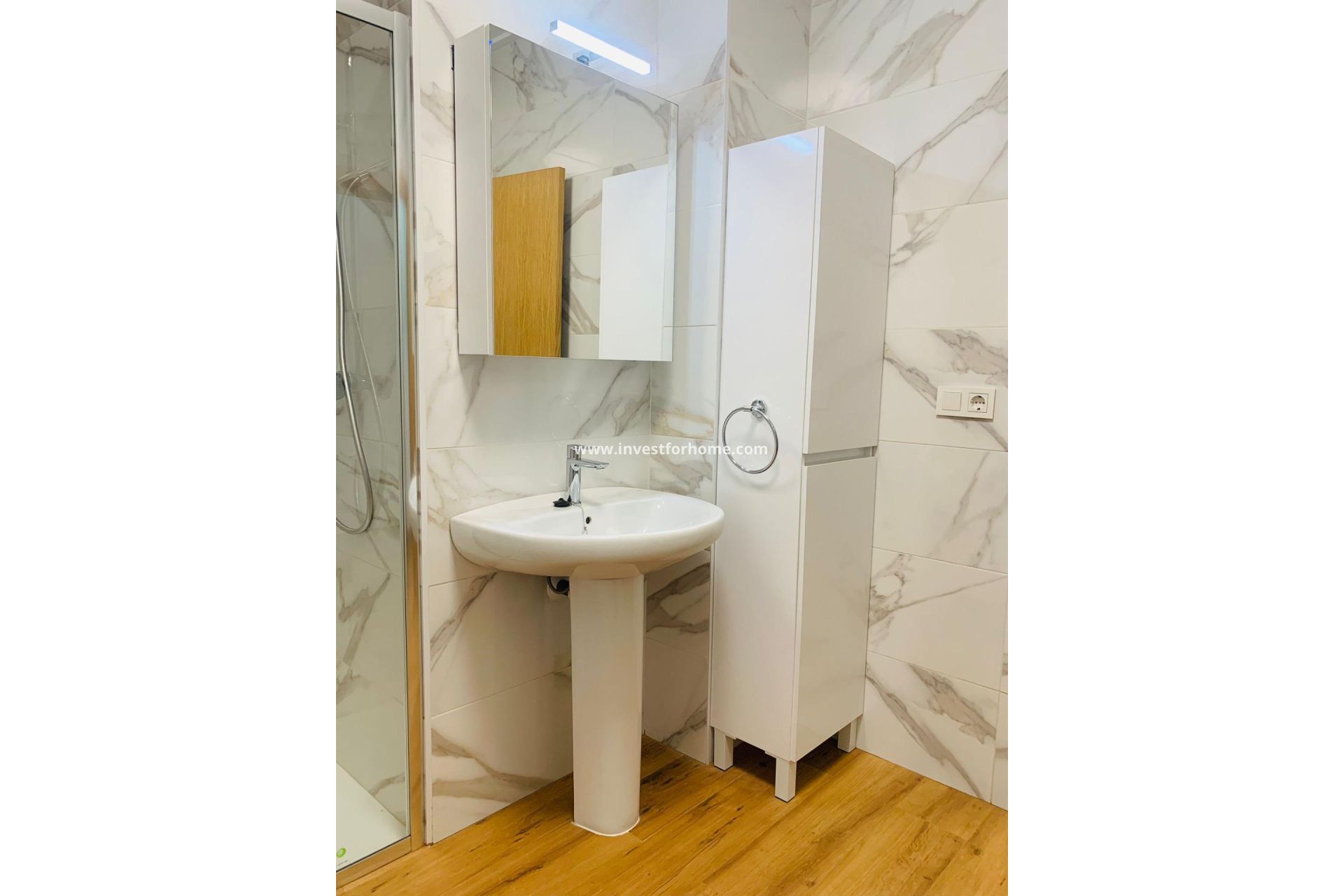 Diseño, calidad y confort a solo unos pasos del mar Descubre esta espectacular vivienda de obra nueva en planta baja, situada en una de las zonas más demandadas de Torrevieja: Playa del Cura. Con una excelente distribución y acabados de alta calidad, esta propiedad es ideal tanto como residencia habitual como inversión. Características principales de la vivienda (71,10 m² útiles): •2 dormitorios amplios con armarios empotrados forrados en madera y cajoneras •2 baños modernos con platos de ducha antideslizantes y grifería Roca •Cocina equipada con mobiliario en blanco brillo y encimera de granito verde •Cuarto de lavado independiente con pila, mueble y grifo •Preinstalación de aire acondicionado por splits en salón y habitaciones •Sistema de ventilación mecánica con renovación de aire •Cerramiento exterior con aislamiento térmico y acústico •Carpintería de aluminio blanco con climalit, suelos de primera calidad, carpintería interior en roble, techos con aislamiento y molduras lisas •Aerotermia (calificación energética A+), calentador con bomba de calor Incluye un garaje cerrado privado de gran capacidad (130,38 m²) •Espacio para 3 vehículos (incluso furgón, caravana o embarcación) •Zona de almacenamiento adicional •Portón de acceso con ventanas, puerta peatonal, ventilación mecánica y eléctrica independiente para carga de vehículos •Toma de agua, instalación eléctrica completa y placa de vado permanente