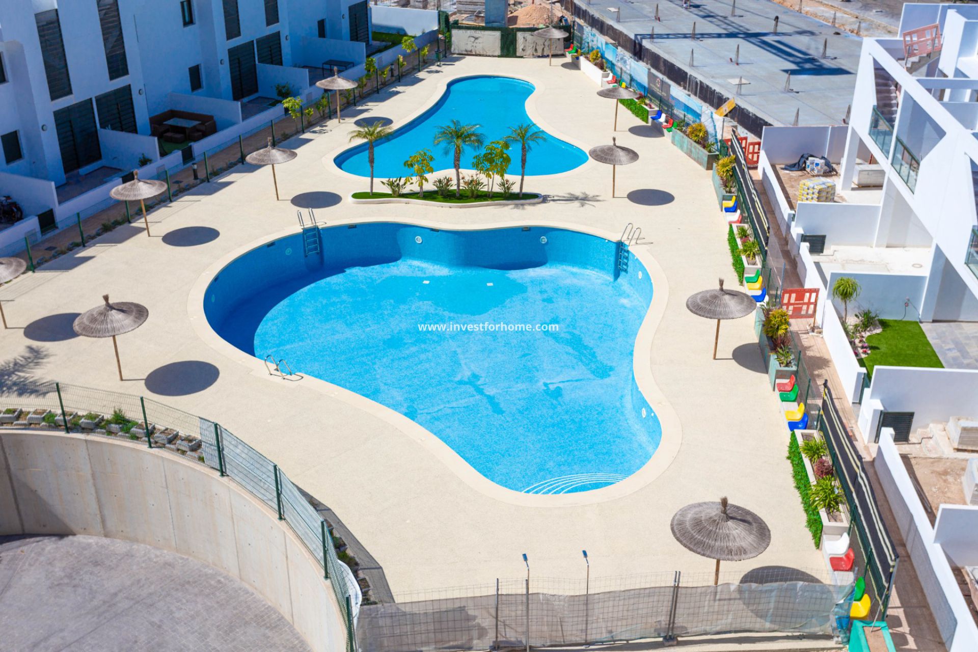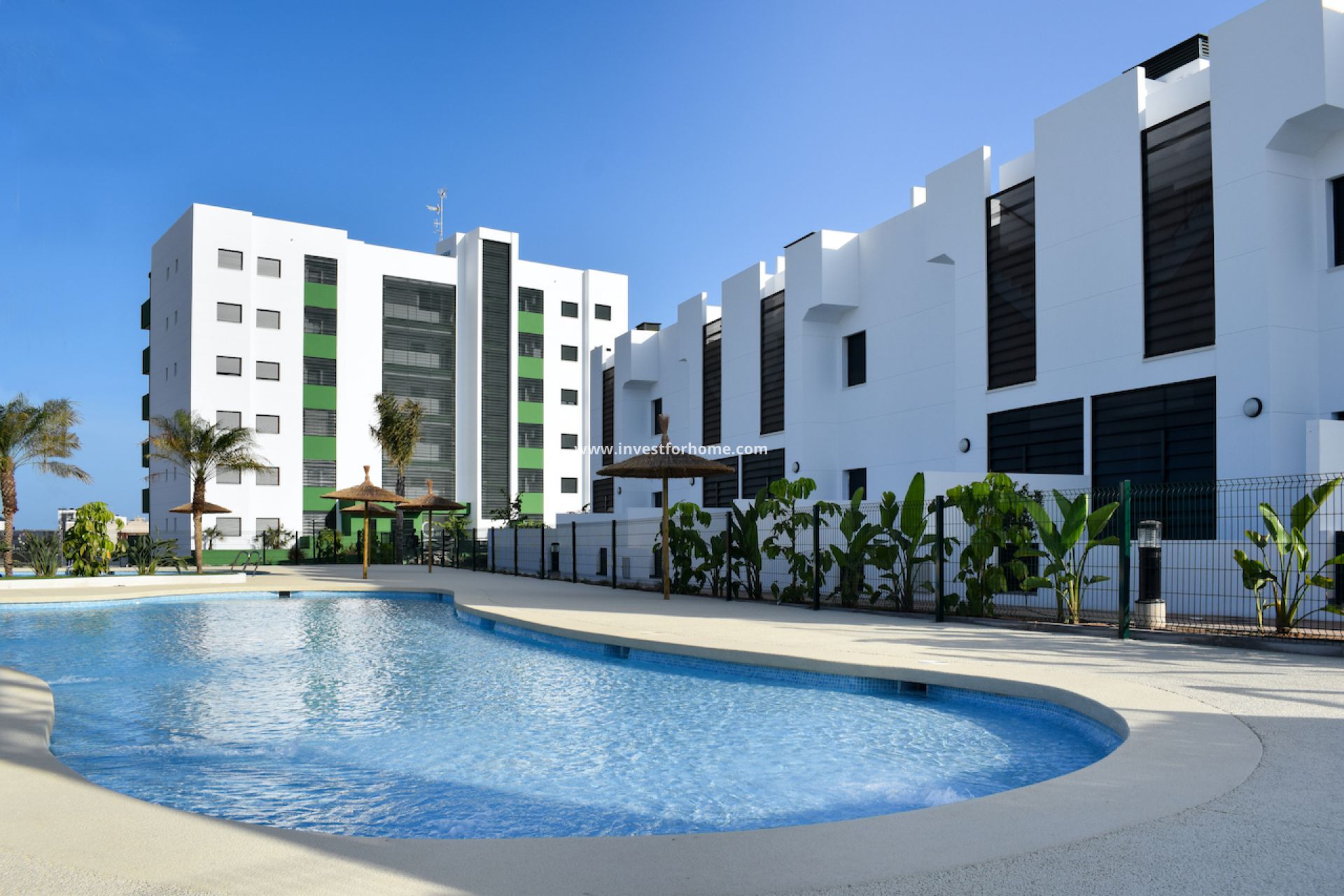 Ubicado en Mil Palmeras, a solo 300 metros del mar. Ubicado alrededor de hermosas piscinas comunitarias (una para niños, una para adultos), hermosos jardines amplios, parque infantil y estacionamiento subterráneo. Hay 4 bloques de apartamentos de 73m2 con terraza de 18m2, 2 o 3 dormitorios, 2 baños. Todos tienen una cocina equipada con vitrocerámica, horno y campana extractora. Hay una sala de lavandería y preinstalación para el aire acondicionado. Estos apartamentos están diseñados con un gusto exquisito, cuidando el diseño interior, siempre buscando la mayor comodidad para el cliente. Todos los apartamentos disponen de amplias terrazas, donde podrá disfrutar de vistas privilegiadas al mar.