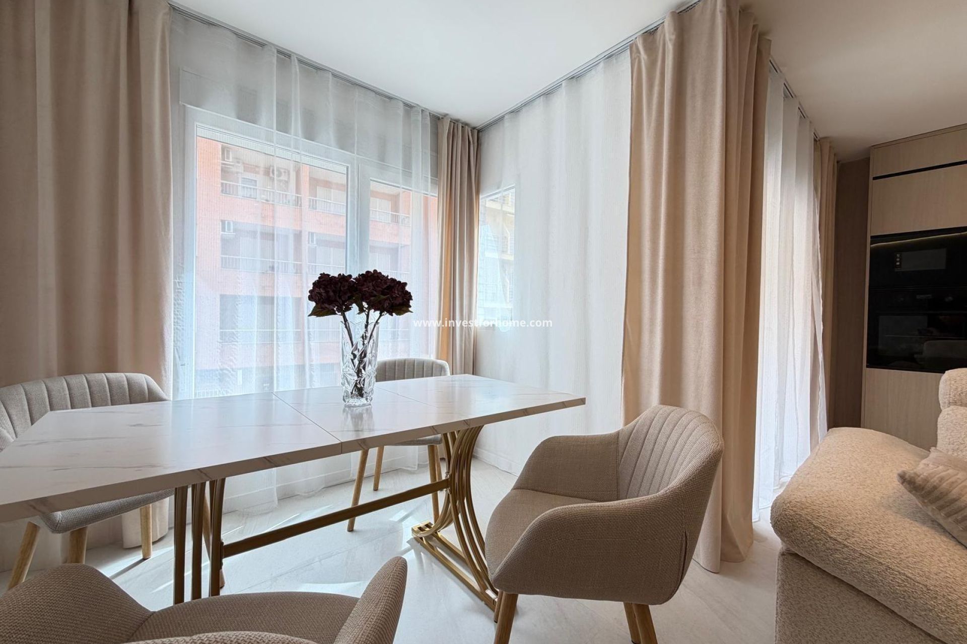 Se vende lujoso apartamento totalmente reformado, situado a tan solo 30 metros del paseo marítimo y de la playa del Cura, en una de las mejores zonas de Torrevieja. ???? Características principales: • Superficie total: 107 m² • Distribución: 4 dormitorios y 2 baños • Orientación: sur • Terraza: con vistas laterales al mar • Distancia a la playa: 30 metros La vivienda destaca por su amplitud, luminosidad y acabados de alta calidad. ✨ Equipamiento y confort: • Aire acondicionado centralizado (frío / calor) • Techos tensados con iluminación moderna • Suelo radiante en los baños • Ventanas con doble acristalamiento nuevas • Reforma integral realizada con altos estándares de calidad ???? Extras: • Desde uno de los dormitorios se accede a una zona de lavandería independiente, equipada con: • calentador de agua • lavadora ???? Se vende totalmente equipada: Se vende amueblada y equipada con electrodomésticos y decoración, tal como se muestra en las fotografías. ???? Ubicación: Ubicación inmejorable junto al paseo marítimo: • a pocos pasos del mar • rodeado de restaurantes, cafeterías y comercios • todos los servicios a su alcance Una propiedad ideal tanto para residencia habitual como para inversión en alquiler, con alta demanda.