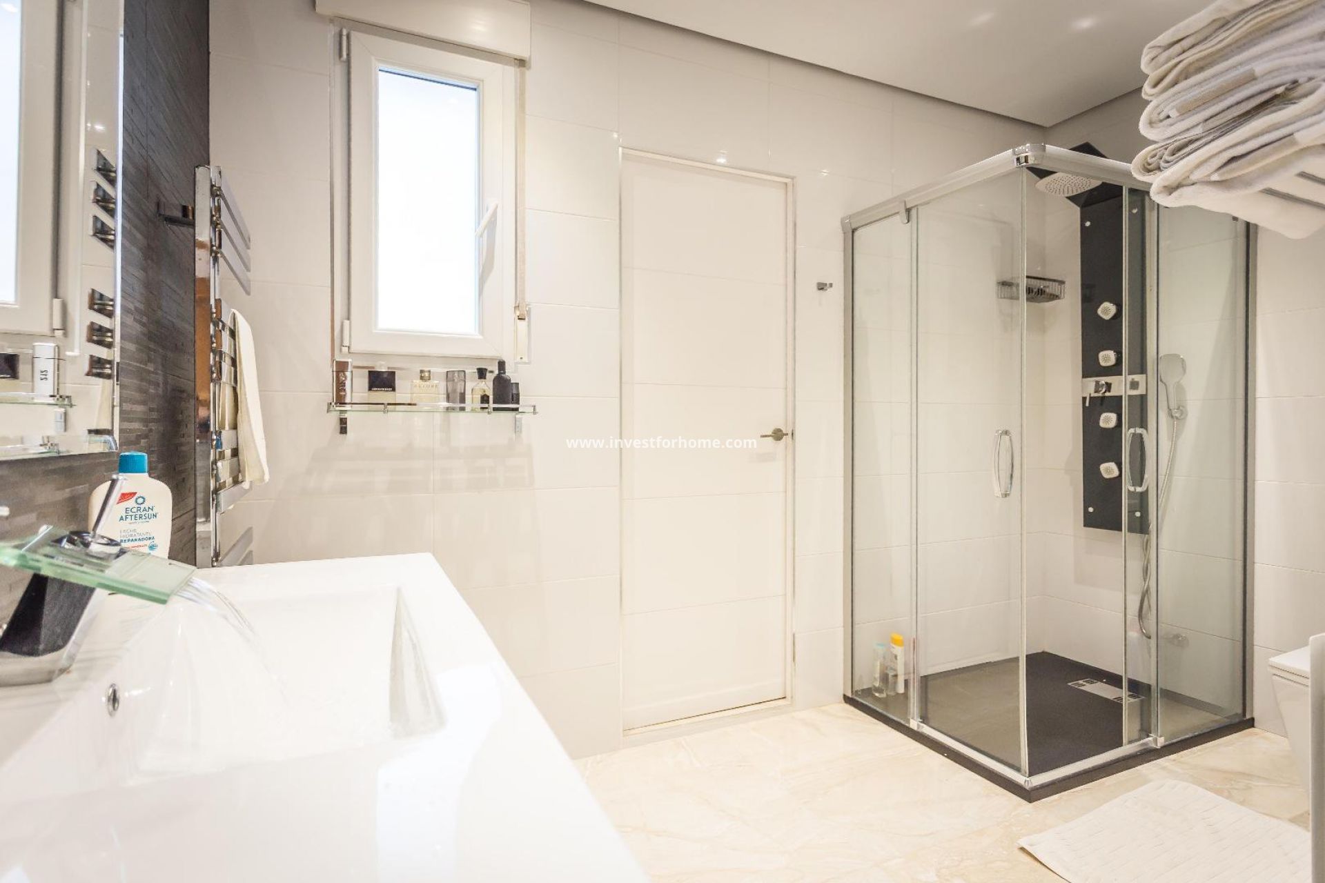 Una gran villa familiar en San Miguel de Salinas. En la planta baja hay 2 dormitorios grandes, sala de estar / comedor con cocina abierta y baño, en el primer piso dormitorio principal en suite que conduce a un gran balcón con vistas abiertas a las Salinas. El sótano se compone de una sala de estar adicional y 3 dormitorios. La propiedad se vende amueblada. Piscina privada. Hay muchos extras que se deben ver.