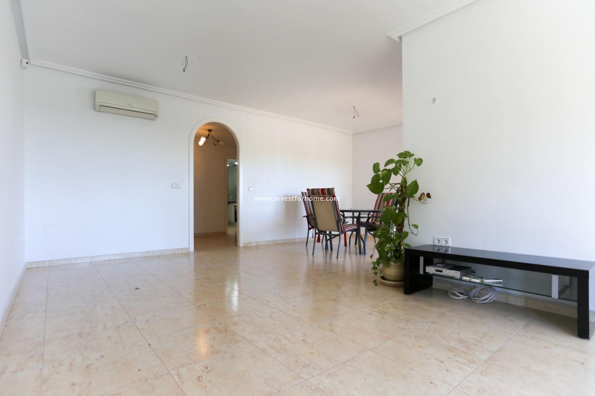 Esta casa espaciosa, orientada al sur, para 2 familias, se distribuye en 2 plantas. En la planta baja hay una gran cocina con trastero, una amplia sala de estar, un dormitorio con baño y una hermosa terraza y jardín. En la primera planta hay 2 dormitorios con balcón y un baño familiar. La casa está en buen estado y se vende amueblada. Hay una piscina comunitaria a pocos pasos de la casa y a pocos pasos del centro de negocios, donde encontrará todas las comodidades y paradas de autobús. Las famosas playas de Orihuela Costa están a pocos minutos en coche. Una casa de vacaciones perfecta o para quedarse todo el año.
