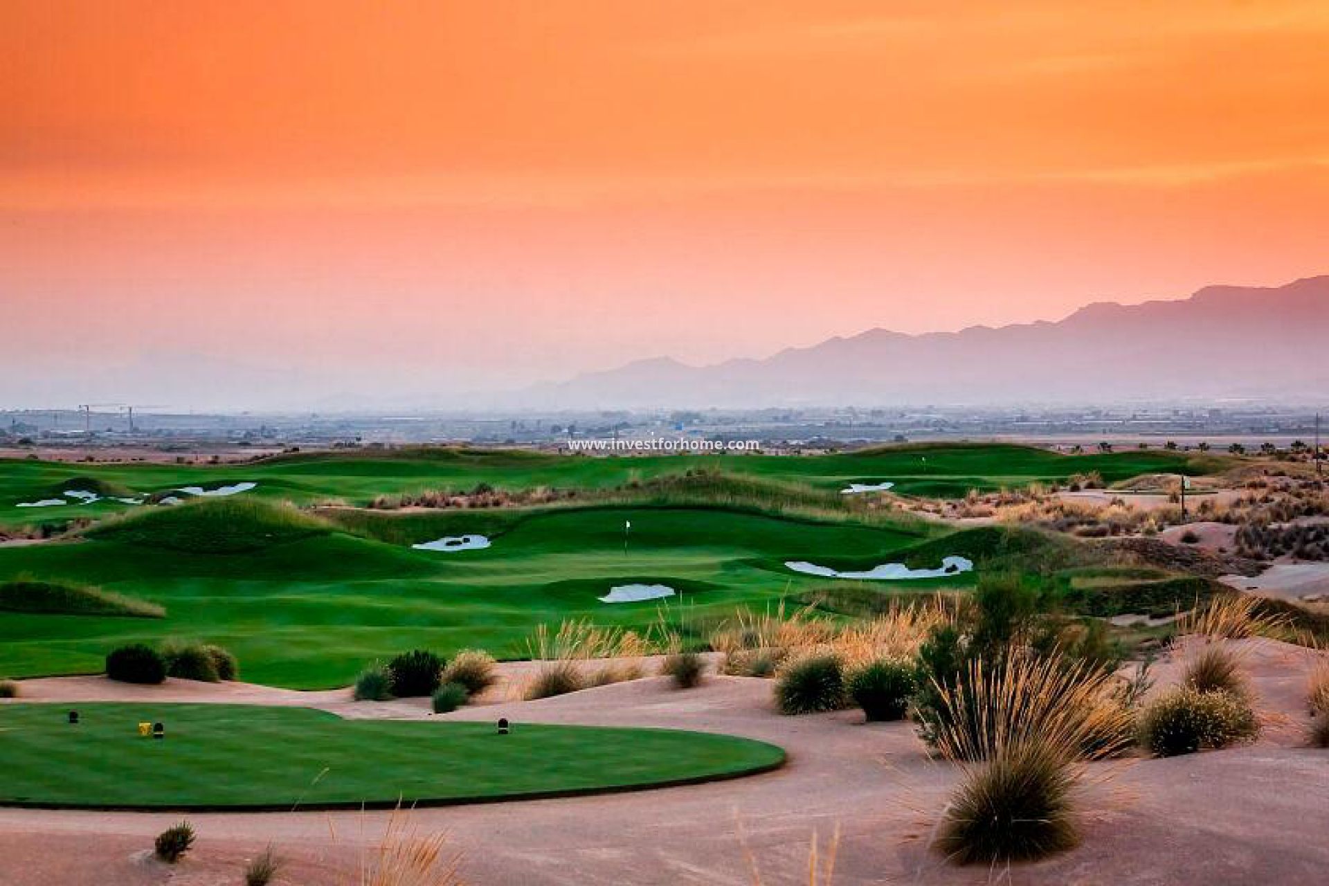 VILLAS DE OBRA NUEVA EN CONDADO DE ALHAMA CAMPO DE GOLF Complejo residencial de obra nueva de villas en Condado de Alhama Golf Resort. Villas con 3 dormitorios, 2 baños, cocina americana con salón, armarios empotrados, terraza, solárium privado y plaza de aparcamiento en el jardín. Todas las villas incluyen piscina privada de 21 m2. INCLUIDO en el precio: - PLAZA DE APARCAMIENTO ASIGNADA en el jardín privado. - SOLARIUM con escalera exterior. - BAÑOS: las mamparas de ducha, los lavabos, los espejos y la iluminación LED empotrada en el falso techo. - COCINA: la campana extractora, la iluminación LED empotrada en el techo. - Preinstalación de AIRE ACONDICIONADO. - ARMARIOS EMPOTRADOS forrados. - PERSIANAS ELÉCTRICAS. - Sistema de AEROTERMIA. - INSTALACIÓN DE SUAVIZADOR DE AGUA. - PUNTO DE CARGA para instalación de VEHÍCULOS ELÉCTRICOS E HÍBRIDOS. - PISCINA PRIVADA. Situado en el complejo privado y vigilado del Resort de golf de Condado de Alhama, entre Alhama de Murcia y Mazarrón. Condado de Alhama Golf Resort es un fantástico Resort de Golf con muchas instalaciones y servicios . Un centro comercial, un centro deportivo, una gran variedad de bares y restaurantes, supermercados y más de 25 piscinas y jardines comunitarios. Condado de Alhama Golf Resort tiene su propio campo de golf diseñado por Jack Nicklaus y está a sólo 15 minutos de las hermosas playas de Bolnuevo y Mazarrón. Mazarrón tiene más de 35 km de costa, gran parte de la cual es costa virgen. Numerosas playas de la Bahía de Mazarrón han sido galardonadas con la Bandera Azul por su calidad. Condado de Alhama Golf Resort está a sólo 20 minutos del nuevo Aeropuerto Internacional de Corvera.