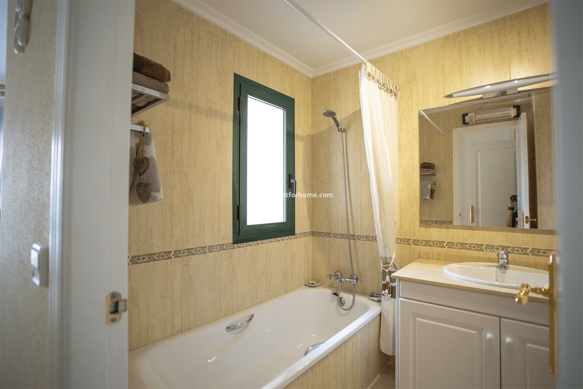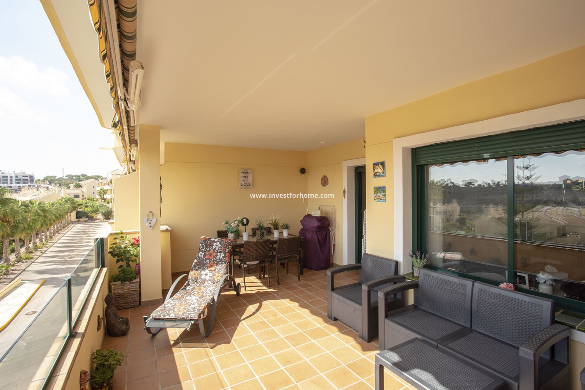 Este hermoso apartamento está ubicado en la prestigiosa zona de Lomas de Campoamor al lado del campo de golf con seguridad privada durante todo el año. Este apartamento en el primer piso consta de 2 dormitorios con armarios grandes, 2 baños con muebles lacados en blanco y encimera de mármol, cocina moderna totalmente equipada con electrodomésticos, escotilla y lavandería separada. Un amplio salón con aire acondicionado y calefacción de gas. Desde el salón tiene acceso directo a una gran terraza orientada al suroeste. La propiedad cuenta con una piscina comunitaria y a 5 minutos a pie del centro comercial de La Fuente, donde encontrará todo tipo de servicios como restaurantes, cafeterías y supermercados. El apartamento se venderá completamente amueblado.