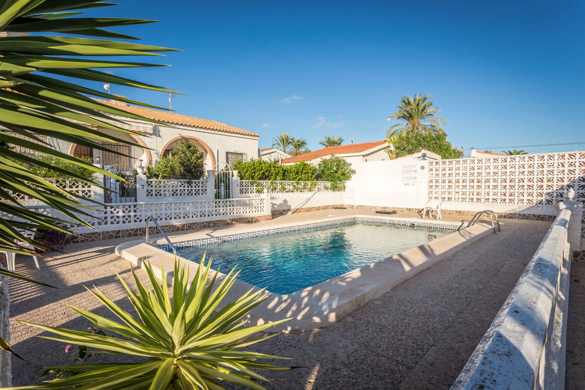 Preciosa casita en una sola planta con dos dormitorios, baño con bañera, salón, cocina totalmente equipada con electrodomésticos y bonita terraza de 20m2 con orientación sur y barbacoa. Dispone de aparcamiento comunitario y privado. También hay una piscina comunitaria con un gran jardín. Es posible ampliar la casa construyendo un primer piso. Todos los servicios están a poca distancia y a solo 1 km de las playas cercanas. Torrevieja y La Mata.