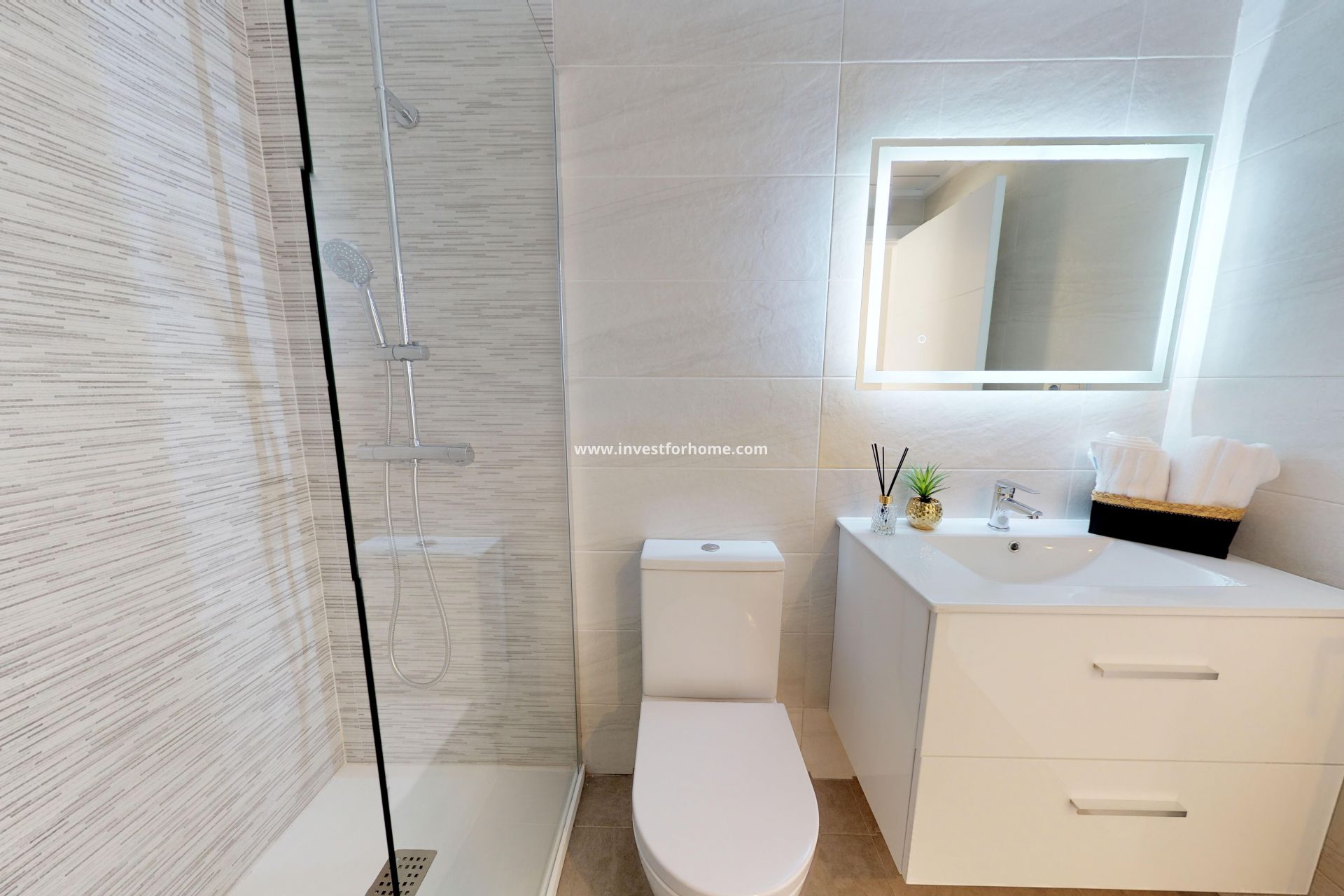 Una escalera conduce al piso superior con una gran terraza privada de azulejos y una puerta de entrada. Al igual que en la planta baja, un salón / comedor de planta abierta con una gran cocina, 2 dormitorios traseros (principal con baño). La terraza privada en la azotea es accesible desde el frente.
