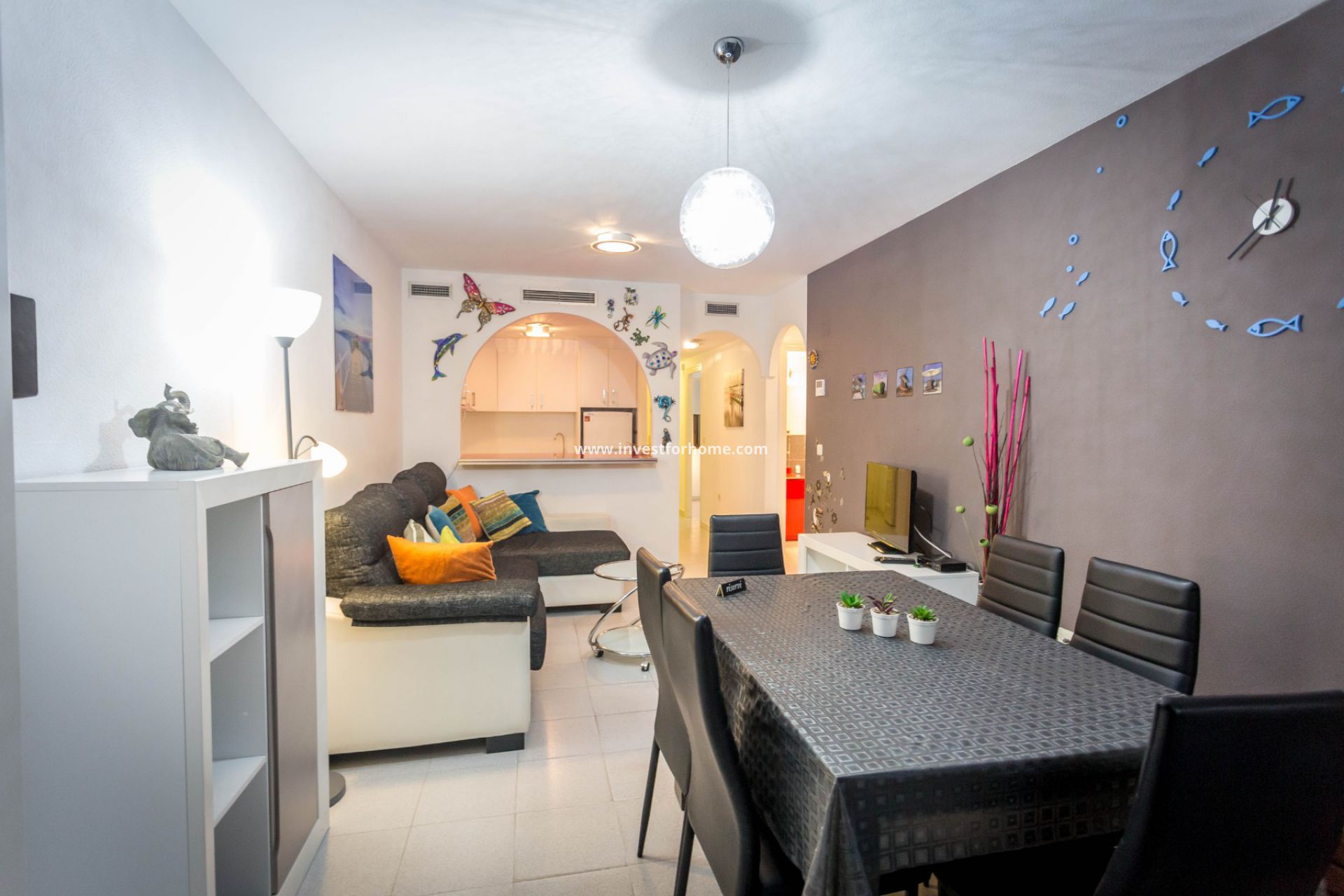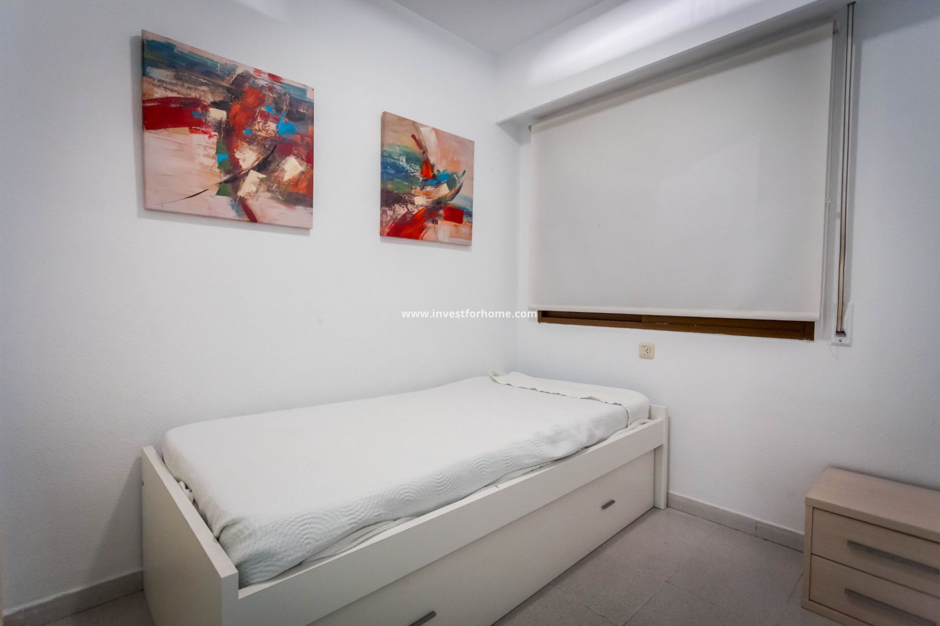 Esta propiedad es un apartamento de 3 dormitorios situado en la zona del Parque de las Naciones. La propiedad consta de un gran salón comedor con cocina abierta, 3 dormitorios y 1 baño. El apartamento está situado en el primer piso con ascensor. Se vende en buen estado totalmente amueblado y con electrodomésticos y aire acondicionado central por conductos. Ubicado junto al popular parque de las Naciones, al lado de todos los servicios como supermercados, bancos, parada de autobús y a pocos pasos del centro de Torrevieja y del puerto deportivo. El apartamento está en un residencial donde puedes disfrutar de una hermosa piscina comunitaria.