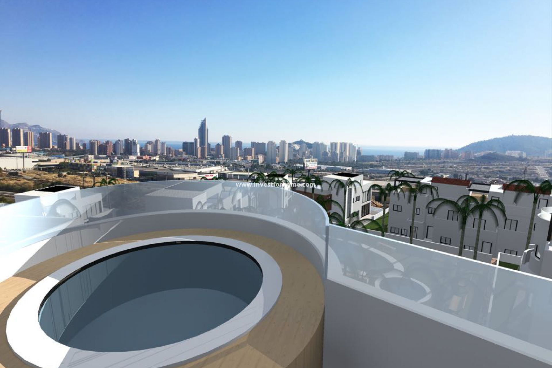 Un hermoso hoem familiar, en la cima de la playa de Poniente y la cala de Finestrat. A minutos de campos de golf y minutos en coche desde la playa. A poca distancia de supermercados y estación de tranvía.