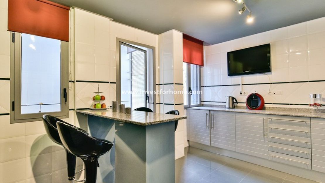 Apartamento de lujo en primera línea de mar ubicado entre la playa de Del Cura y Playa Los Locos. El edificio es de reciente construcción y cuenta con una piscina, sistema de video vigilancia y conserje. El apartamento es amplio y luminoso y se compone de 3 dormitorios, 2 baños, amplio salón, cocina, galería y balcón acristalado con calefacción por suelo radiante. Todas las comodidades están al lado y el centro de la ciudad se encuentra a 10 minutos a pie por el paseo marítimo.