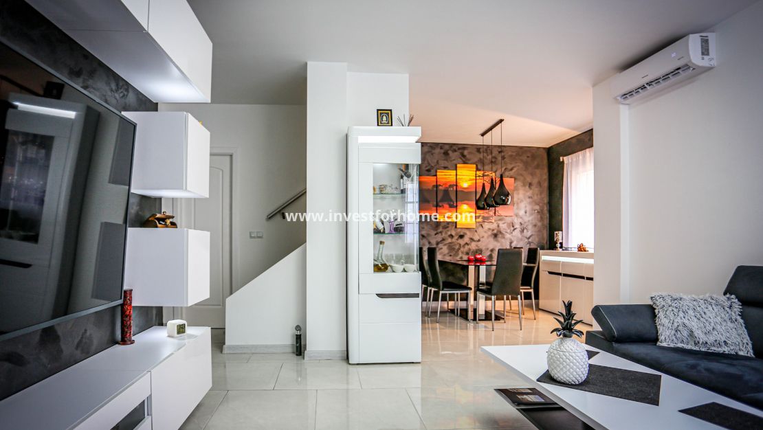 El bungalow en Torrelamata, Torrevieja es una propiedad encantadora situada en una ubicación privilegiada. Con 2 habitaciones y 2 baños, es ideal para pequeñas familias o parejas que buscan un escape tranquilo y cómodo. La decoración interior es elegante y moderna, con tonos cálidos y acogedores que crean un ambiente relajante.