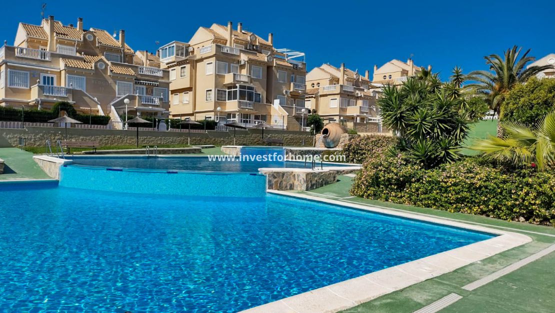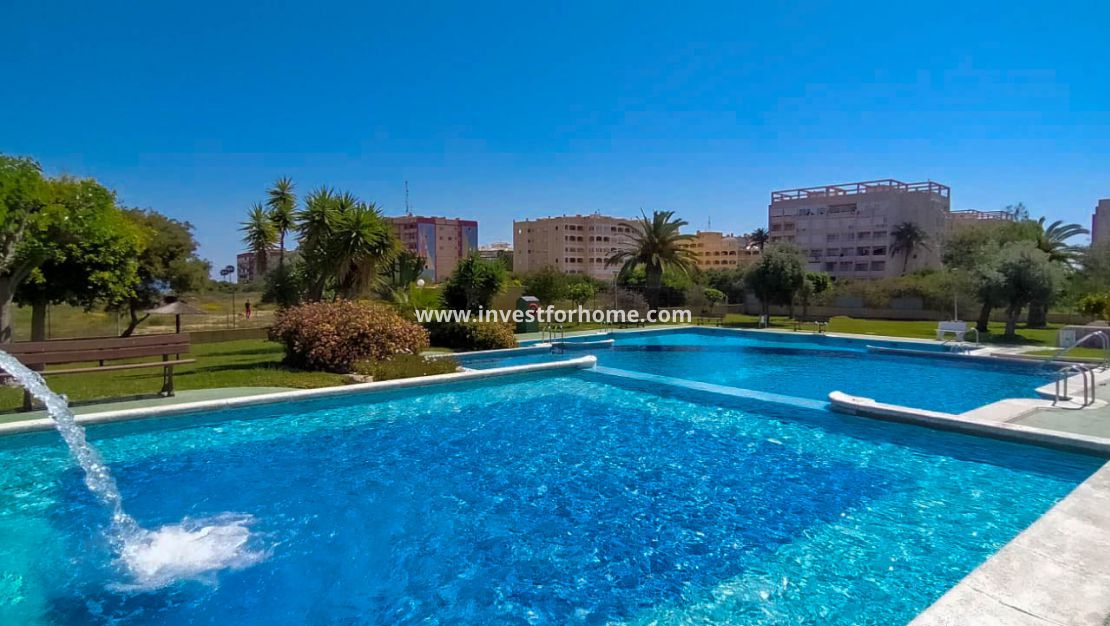 En resumen, este bungalow en Torrelamata, Torrevieja es una propiedad ideal para aquellos que buscan un escape relajante y cómodo. Con sus habitaciones acogedoras, su zona de estar amplia y su piscina comunitaria.