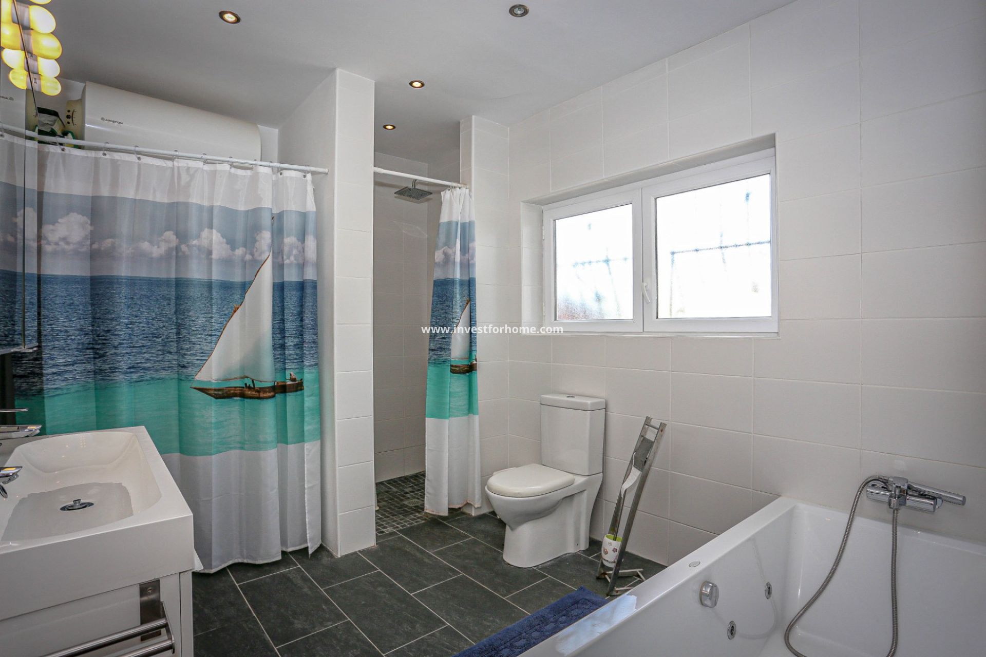 La villa dispose d'un total de 137 m2 de surface habitable, offrant amplement d'espace pour tous les membres de la famille. Chacune des 5 chambres est bien aménagée et confortable, assurant une nuit de sommeil paisible. Les 2 salles de bains sont modernes et décorées avec goût, avec des installations et des accessoires de haute qualité.