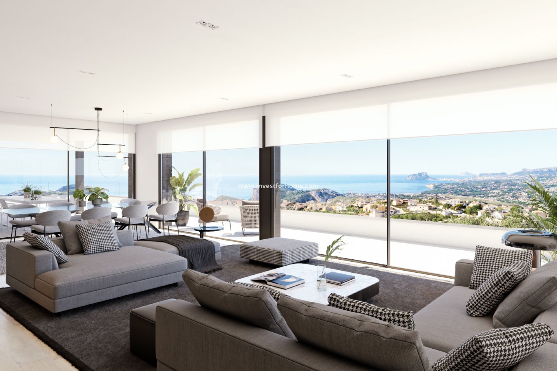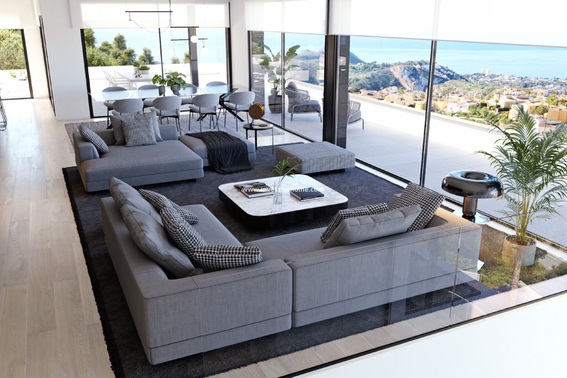 Villa Elegance est une propriété située dans le Residential Resort Cumbre del Sol, plus précisément dans le quartier résidentiel Jazmines, un quartier exclusif de grandes villas de luxe qui surplombent élégamment la mer Méditerranée. Ses plus de 625 m² sont répartis sur trois étages et s'intègrent subtilement dans l'environnement, s'adaptant à la pente naturelle du terrain et permettant au bleu de la mer d'être présent à tout moment dans pratiquement toute la maison. Cette propriété dispose de nombreuses pièces uniques pour profiter à différents moments de la journée, mais sans aucun doute s'il y en a une qui mérite une mention spéciale c'est la chambre principale, une immense pièce baignée de lumière naturelle, distribuée pour profiter pleinement de la vue sur la mer, situé dans un module indépendant de la maison, préservant ainsi son intimité par rapport aux parties les plus communes. La terrasse principale de plus de 91m² est dominée par une piscine à débordement avec accès à effet plage, créant ainsi une oasis de détente. L'ensemble des espaces extérieurs est complété par un porche qui abrite une cuisine d'été, préparée pour installer un barbecue, le tout entouré d'espaces paysagers, avec des mûrs en pierre naturelle, sans aucun doute un cadre idyllique pour profiter du plein air. Une propriété unique sur la Costa Blanca Nord, Méditerranée espagnole, avec un design aux lignes pures et au caractère minimaliste, habillée de matériaux élégants de haute qualité et dernières technologies, vous attend à Cumbre del Sol.