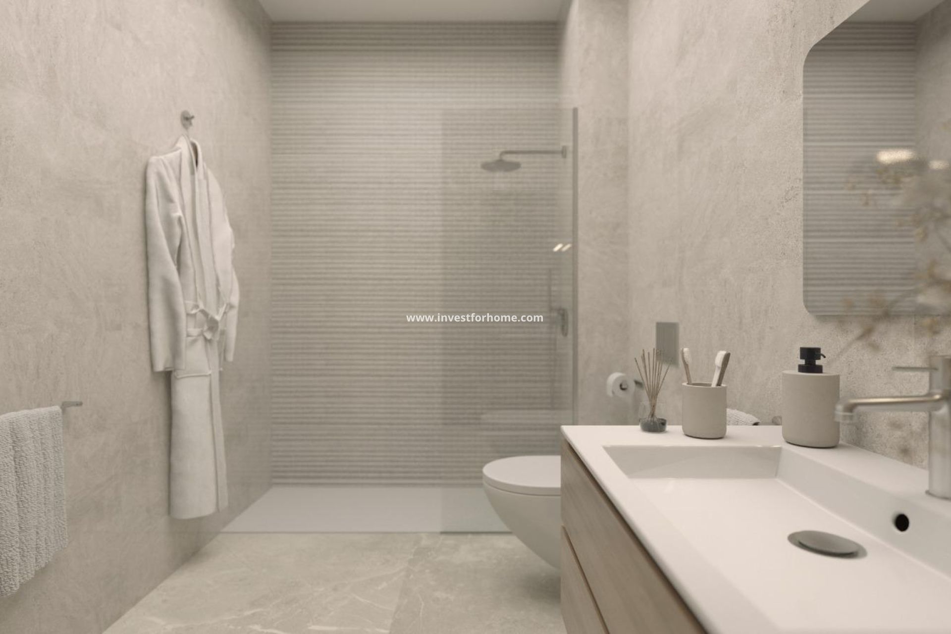 Appartements modernes neufs au cœur de Torrevieja Emplacement privilégié à seulement 150 m de la mer Ce nouveau complexe exceptionnel est situé en plein centre de Torrevieja, à seulement 150 m des piscines naturelles et de la promenade en bord de mer, et à seulement 500 m de Playa del Cura. Entouré d'une large gamme de services, notamment des magasins, des supermarchés, des parcs, des cafés et des restaurants, le quartier offre tout ce dont vous avez besoin à quelques pas. La combinaison du confort urbain et de la tranquillité côtière en fait l'un des quartiers résidentiels les plus attrayants de la ville. Appartements contemporains avec 1 ou 2 chambres Le projet propose des appartements modernes comprenant 1 ou 2 chambres et 1 ou 2 salles de bains, dont deux penthouses exclusifs avec solarium privé, barbecue et piscine privée. Toutes les maisons sont conçues avec des agencements ouverts qui maximisent la lumière naturelle, et comprennent des terrasses spacieuses et des cuisines élégantes de style américain. Chaque appartement comprend une cuisine entièrement équipée avec des appareils électroménagers, des salles de bains complètes avec des meubles, des parois de douche et le chauffage au sol, ainsi que l'éclairage intérieur. Il y a également une préinstallation pour la climatisation centralisée, garantissant un confort tout au long de l'année. Des espaces communs attrayants pour la détente Les résidents peuvent profiter d'excellentes installations communes conçues pour le bien-être et les loisirs. Le rez-de-chaussée dispose d'une piscine commune rafraîchissante et d'un sauna relaxant. La terrasse sur le toit offre un solarium commun, idéal pour prendre le soleil et profiter de l'atmosphère méditerranéenne. Profitez d'un environnement côtier et naturel unique Torrevieja est réputée pour son climat méditerranéen doux, avec une température moyenne annuelle de 20 ºC, parfaite pour vivre toute l'année. La ville abrite les célèbres lacs salés et le parc naturel protégé de La Mata et Torrevieja, situé à seulement 4 km du complexe. Avec ses lagunes roses et vertes, ses sentiers de randonnée pittoresques et sa faune diversifiée, il offre un cadre naturel sain et inspirant. Distances par rapport aux principaux points d'intérêt Puerto Deportivo de Torrevieja 1 km Parque Natural de La Mata 4 km Villamartin Golf 8 km Aéroport d'Alicante 45 km Aéroport de Murcie 60 km Vivez le style de vie méditerranéen Assurez-vous une maison moderne dans l'une des villes côtières les plus prisées de la Costa Blanca. Contactez-nous dès aujourd'hui pour planifier une visite et réserver votre place dans ce nouveau développement exceptionnel.