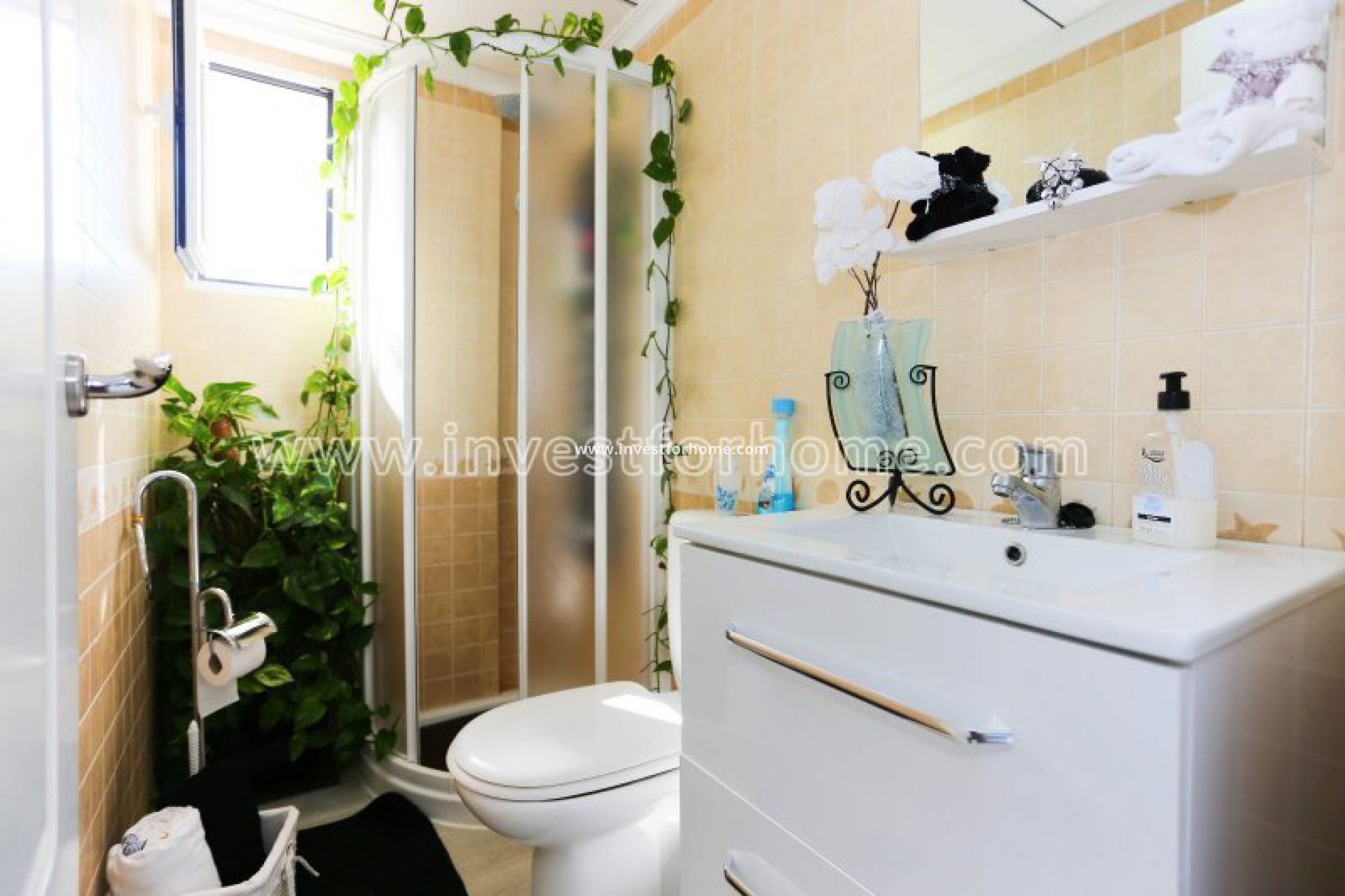 Situé à Guardamar del Segura, sur deux niveaux, ce bungalow est très joli et composé d'un salon / salle à manger, d'une salle de bain avec douche au premier étage et de 2 chambres, d'une salle de bains au deuxième étage et d'un joli solarium de 18m2 sud-est très ensolleillé et avec les belles vues sur la mer. Il y a une piscine commune réservée aux résidents. La propriété est entièrement meublée en parfait état.