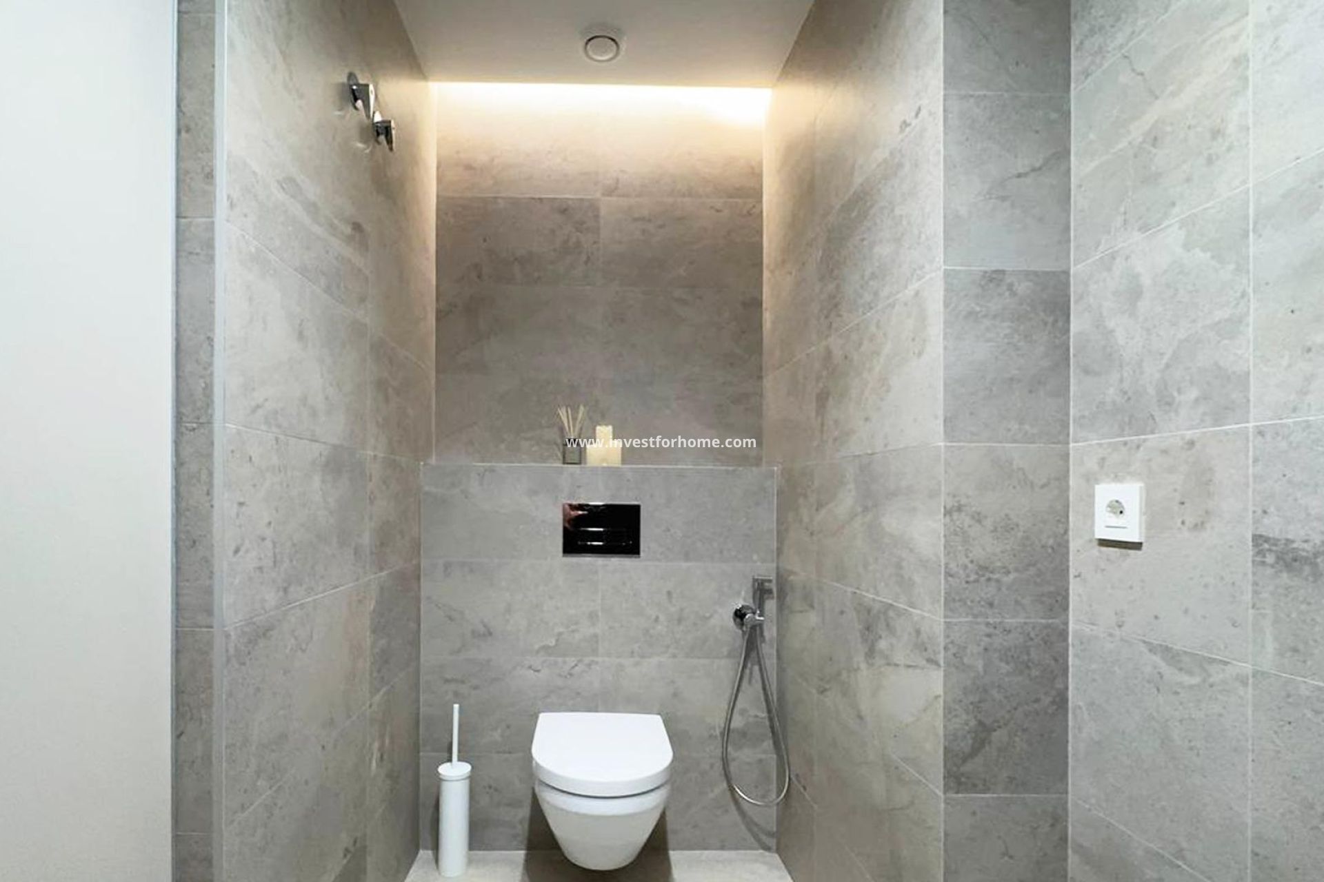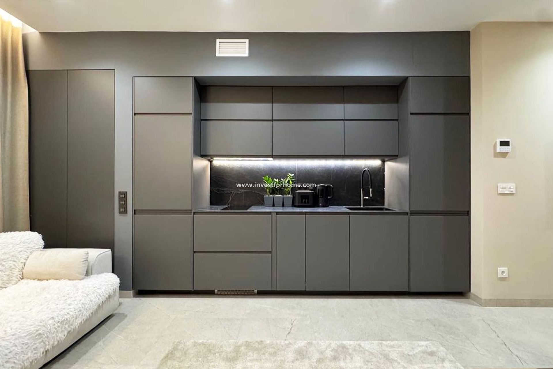 Élégant appartement d’une chambre de 45 m² au cœur de Torrevieja, à seulement 250 mètres de la plage de Los Locos. L’appartement dispose d’un salon lumineux avec des fenêtres panoramiques du sol au plafond, d’une cuisine moderne entièrement équipée et d’une chambre confortable avec placard intégré et finitions élégantes. La salle de bain comprend une douche à effet pluie, un lavabo en pierre et un chauffage au sol. Climatisation, éclairage LED et terrasse privée complètent ce refuge méditerranéen sophistiqué – idéal comme résidence secondaire ou habitation permanente sous le soleil espagnol.