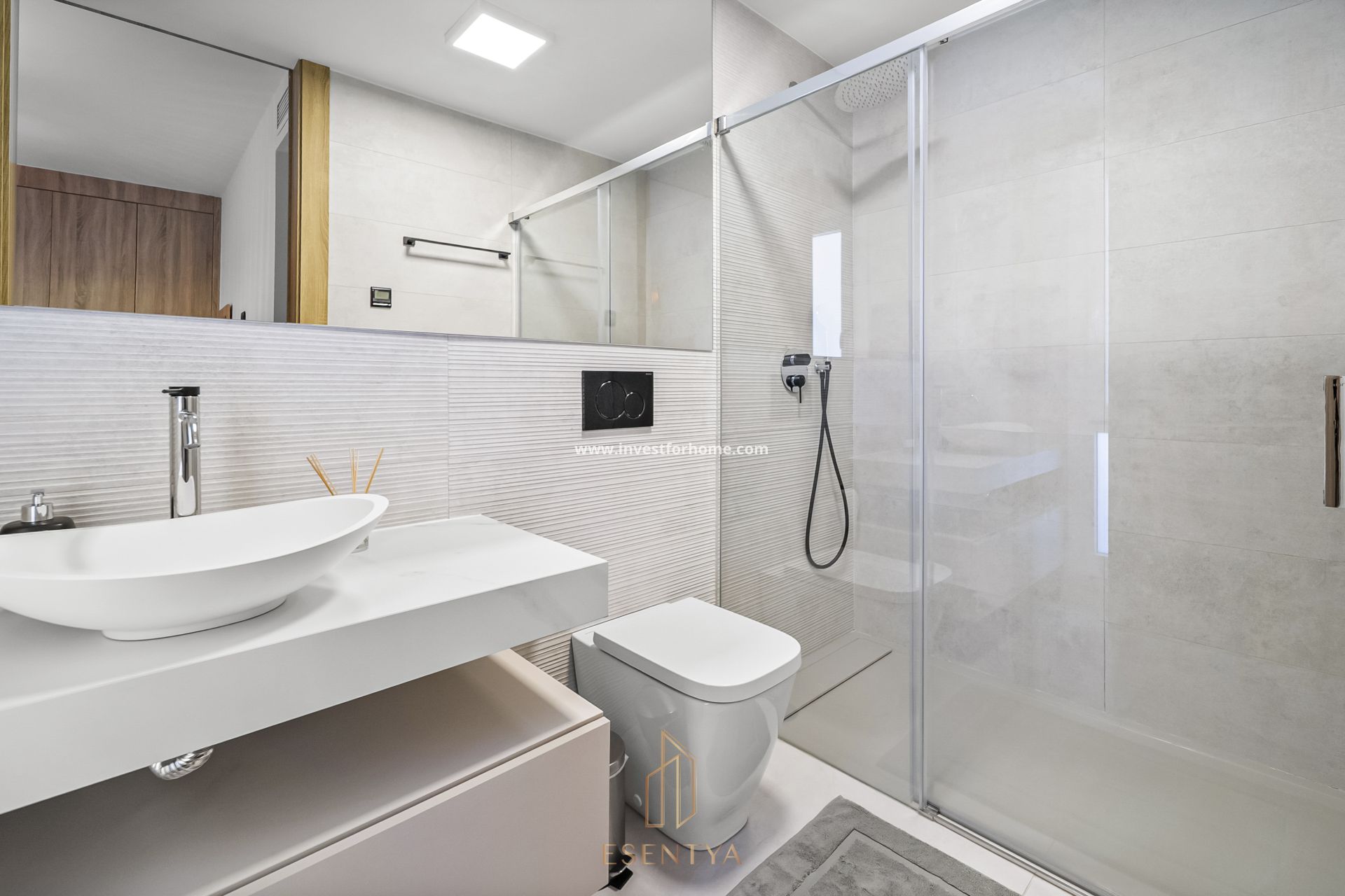 Villa moderne de plain-pied avec sous-sol et piscine à La Finca Golf. Propriété indépendante neuve au design contemporain, terrain paysager de 458 m² avec orientation sud-est. Surface de 133 m² au rez-de-chaussée et sous-sol spacieux de 180 m². Salon avec plafond double hauteur, cuisine Bosch entièrement équipée, 4 chambres et 4 salles de bain. À l’extérieur : pergola de 25 m² (préinstallation cuisine d’été), terrasse avant de 30 m², piscine privée de 28 m² (préinstallée pour pompe à chaleur), jardin avec arrosage automatique. Sous-sol avec chambre, salle de bain et salle de sport, possibilité de créer un appartement indépendant. Caractéristiques principales 133 m² au rez-de-chaussée + 180 m² de sous-sol Terrain de 458 m² Piscine privée de 28 m² (préinstallée pour pompe à chaleur) Pergola de 25 m² Terrasse avant de 30 m² Salon avec plafond double hauteur Cuisine équipée Bosch Meublé 1 suite principale avec dressing 1 suite supplémentaire 1 chambre double 1 salle de bain invités Sous-sol avec 1 chambre, 1 salle de bain et salle de sport Possibilité de 2 chambres et une cuisine supplémentaires au sous-sol Système aérothermique Chauffage au sol dans les salles de bain Panneaux solaires (5 pour l'eau chaude + 5 pour l'électricité) Domotique Volets roulants électriques Portail automatique Arrosage automatique dans le jardin Orientation sud-est Construction juillet 2024 La Finca Golf : L’un des lieux de golf les plus exclusifs de la Costa Blanca. Ce terrain de golf de championnat, 18 trous et par 72, offre de larges fairways, des greens impeccables, des bunkers stratégiques, des éléments aquatiques et des paysages naturels à couper le souffle. Une expérience de golf à la fois stimulante et agréable pour tous les niveaux de jeu. Équipements de premier ordre : Terrain de golf de championnat (18 trous, par 72). Restaurant et bar au club-house. Restaurant Frijolino : fusion italo-mexicaine haut de gamme. Centre de fitness moderne, courts de tennis et de padel. Hôtel 5 étoiles La Finca. Spa et piscine. Bodega La Finca pour des dégustations de vins. Station de recharge pour véhicules électriques. Distances : Aéroport d’Alicante : 55 km (40 min). Centre commercial La Zenia Boulevard : 21 km (20 min). Plage de Guardamar del Segura : 19 km (20 min). Parc aquatique Aquópolis Torrevieja : 19 km (20 min). Hôpital universitaire de Torrevieja : 18 km (18 min).