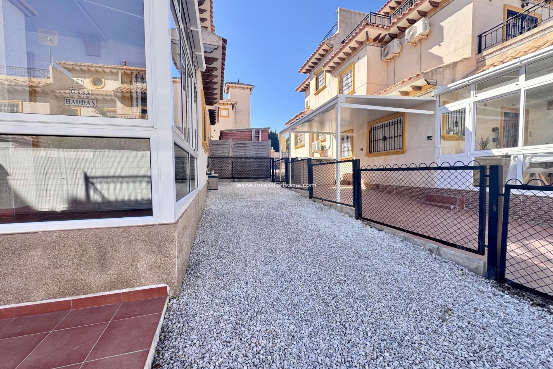 Située dans le secteur recherché entre La Fuente, Las Filipinas et le Golf de Villamartín, au sein du résidentiel PINADA GOLF II, cette maison 2 façades orientée nord-ouest bénéficie d’un environnement calme et parfaitement entretenu, avec une magnifique piscine communautaire. À seulement 10 minutes à pied de la Villamartín Plaza et à quelques minutes de la prestigieuse école privée EL LIMONAR INTERNATIONAL SCHOOL (ELIS), l’emplacement est idéal pour une résidence principale comme pour une maison de vacances. Les plages de La Zenia et Campoamor sont accessibles en moins de 10 minutes en voiture. La maison offre une belle véranda quasi neuve, lumineuse et spacieuse, idéale pour profiter de la lumière toute l’année. À l’extérieur, une allée privative permet de stationner jusqu’à 2 véhicules, ainsi qu’un espace de rangement à l’entrée. En rez-de-chaussée : Un séjour spacieux et modulable, avec possibilité d’aménager facilement une chambre ou un bureau. Une cuisine semi-équipée. Une toilette. Climatisation. Au premier étage : Deux chambres avec climatisation réversible. Grandes armoires encastrées. Une salle de bain complète avec baignoire/douche, toilette, bidet et lavabo. Au deuxième étage : Un agréable solarium offrant une magnifique vue mer, parfait pour profiter du soleil et du climat méditerranéen. Une maison polyvalente, idéalement située et prête à être appréciée immédiatement. À visiter sans hésiter !