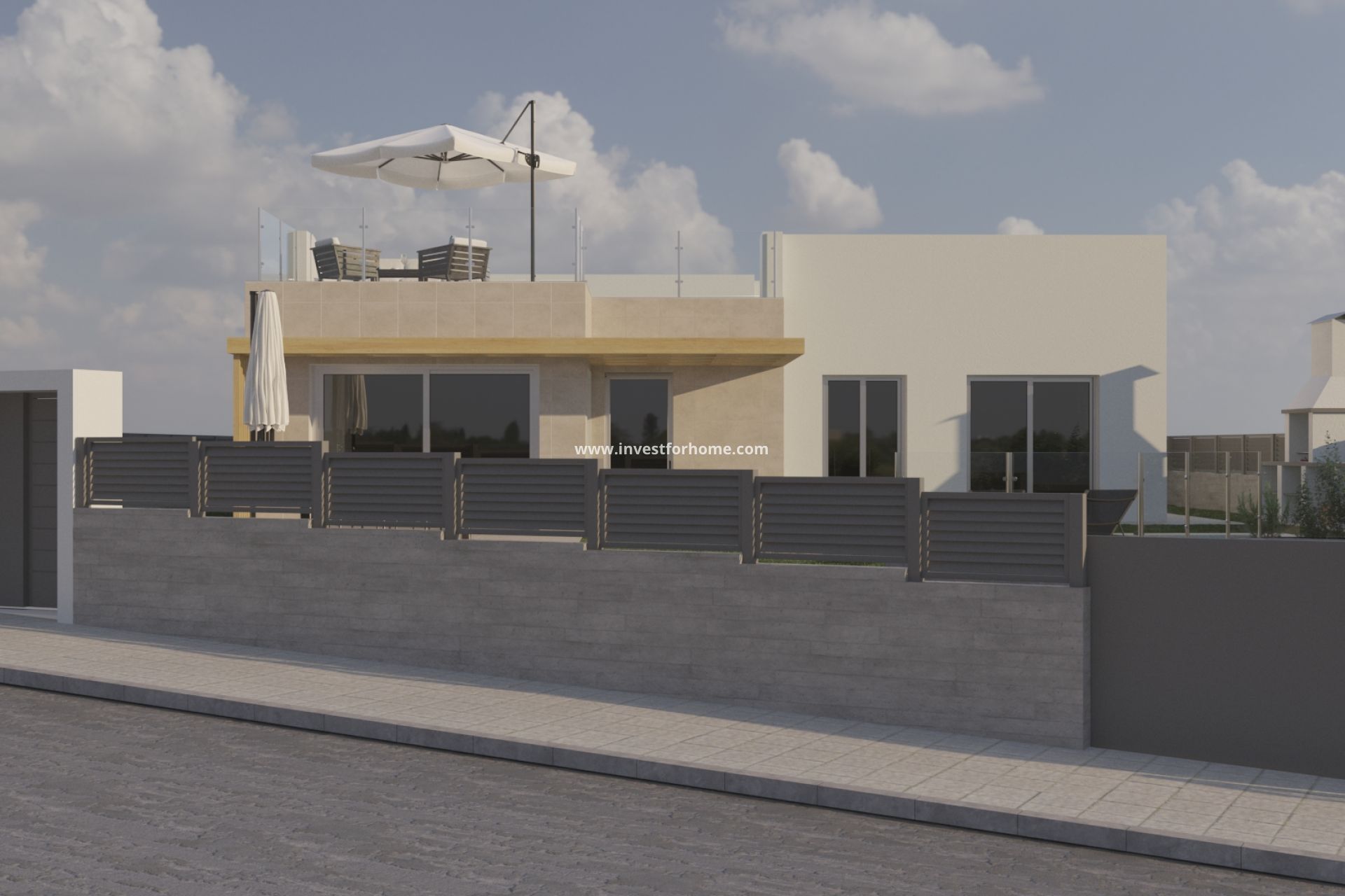 Située dans la charmante ville de Polop, cette collection exclusive de chalets indépendants offre un cadre de vie privilégié. Avec seulement trois propriétés disponibles, chacune a été conçue pour maximiser le confort et l'intimité de ses résidents. Les maisons offrent une vue imprenable sur la mer, créant une atmosphère sereine et relaxante. La typologie des propriétés est Indépendante, garantissant un style de vie unique et exclusif. Ces maisons sont idéales pour ceux qui recherchent un foyer dans un environnement paisible, avec l'avantage d'être proche des commodités locales. EXTÉRIEURS Les extérieurs de ces propriétés à Polop sont conçus pour profiter au maximum du climat méditerranéen. Chaque chalet indépendant dispose d'une piscine privée, parfaite pour se rafraîchir pendant les chaudes journées d'été. De plus, les propriétés incluent un solarium, un espace idéal pour bronzer ou profiter de la vue panoramique sur la mer. Les extérieurs sont pensés pour offrir un espace de loisirs et de détente, où l'on peut profiter de la vie en plein air dans un environnement privé et sécurisé. INTÉRIEURS L'intérieur de ces maisons à Polop est soigneusement conçu pour offrir un maximum de confort et de fonctionnalité. Les maisons disposent de trois chambres et deux salles de bains, offrant un espace spacieux et confortable pour toute la famille. Les sols en céramique apportent une touche moderne et sont faciles à entretenir. Les volets électriques et les placards intégrés sont des caractéristiques standard qui ajoutent confort et style. De plus, les maisons sont équipées d'une pré-installation pour la climatisation, assurant une ambiance agréable tout au long de l'année. ESPACES COMMUNS Ces propriétés disposent d'un parking communautaire, offrant confort et sécurité aux résidents et à leurs visiteurs.