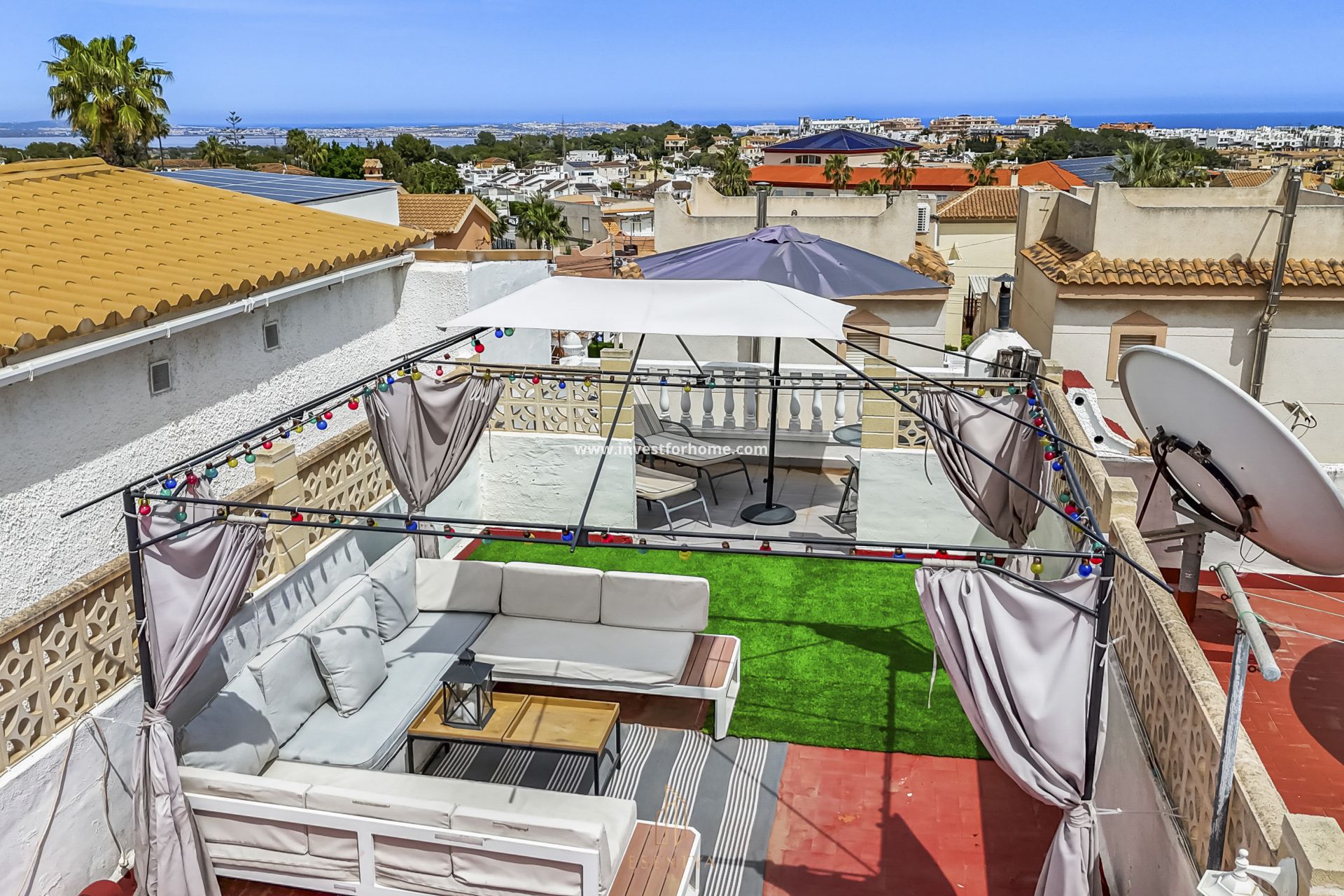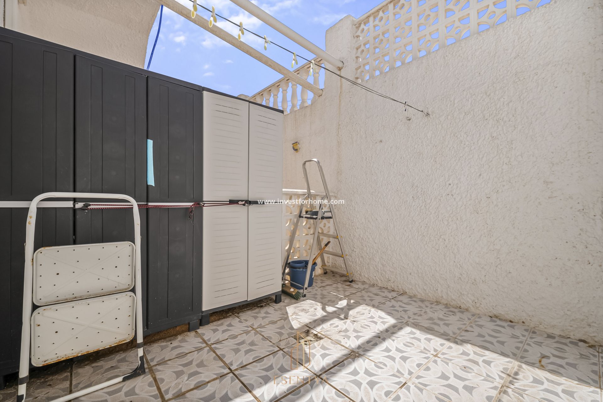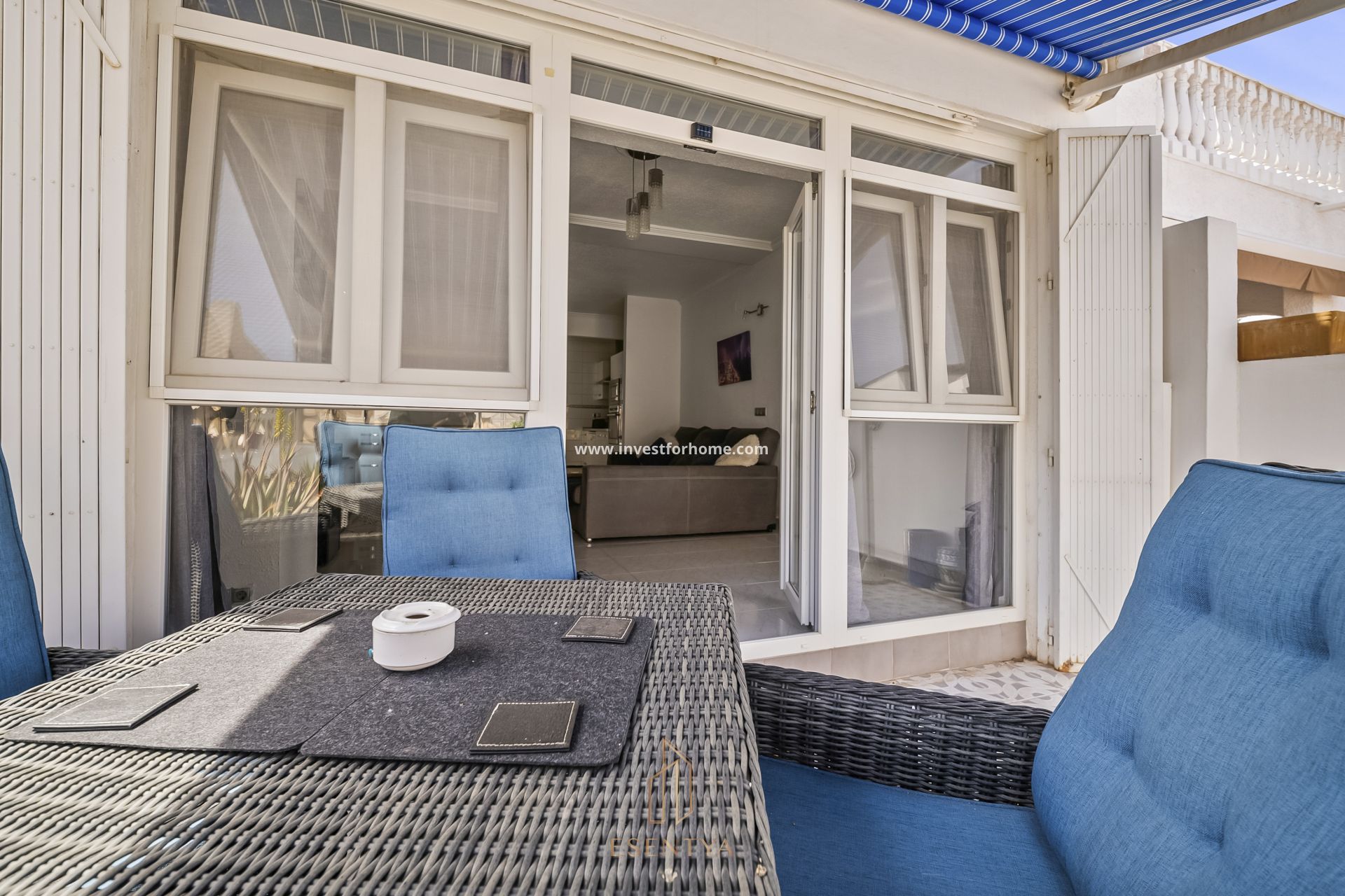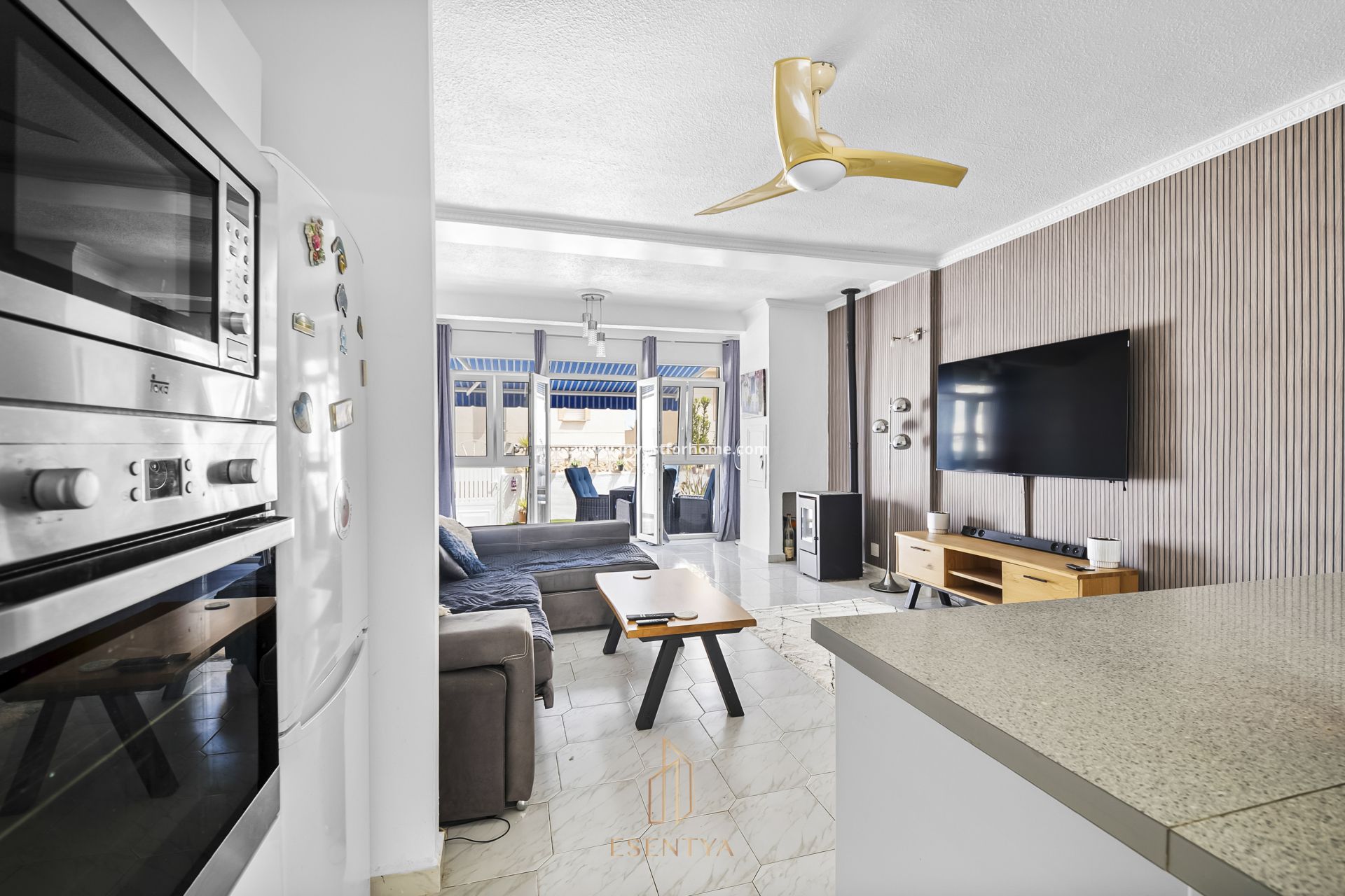 Bungalow avec solarium à Blue Lagoon, San Miguel de Salinas Logement en rez-de-chaussée avec solarium, situé dans un quartier résidentiel calme. Il offre 49 m² construits sur un terrain de 90 m², avec un solarium de 40 m². Il comprend 1 chambre et 1 salle de bain, avec cuisine et salle de bain rénovées. Vendu meublé et prêt à emménager. Situé dans la zone de Blue Lagoon, proche des services, loisirs et golfs. Caractéristiques principales : 1 chambre 1 salle de bain 49 m² construits Terrain de 90 m² Solarium de 40 m² Cuisine rénovée Salle de bain rénovée Meublé Quartier calme Frais annuels : Charges de copropriété : 132 € IBI : 150 € Emplacement : Blue Lagoon, San Miguel de Salinas À pied des bars et restaurants Proche mini-golf avec restaurant et bar Proche El Limonar International School À 5 minutes en voiture de Villamartín Golf Supermarchés à quelques minutes en voiture
