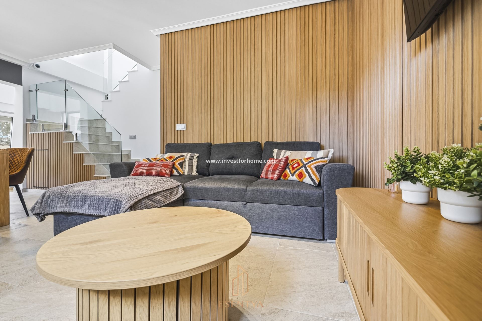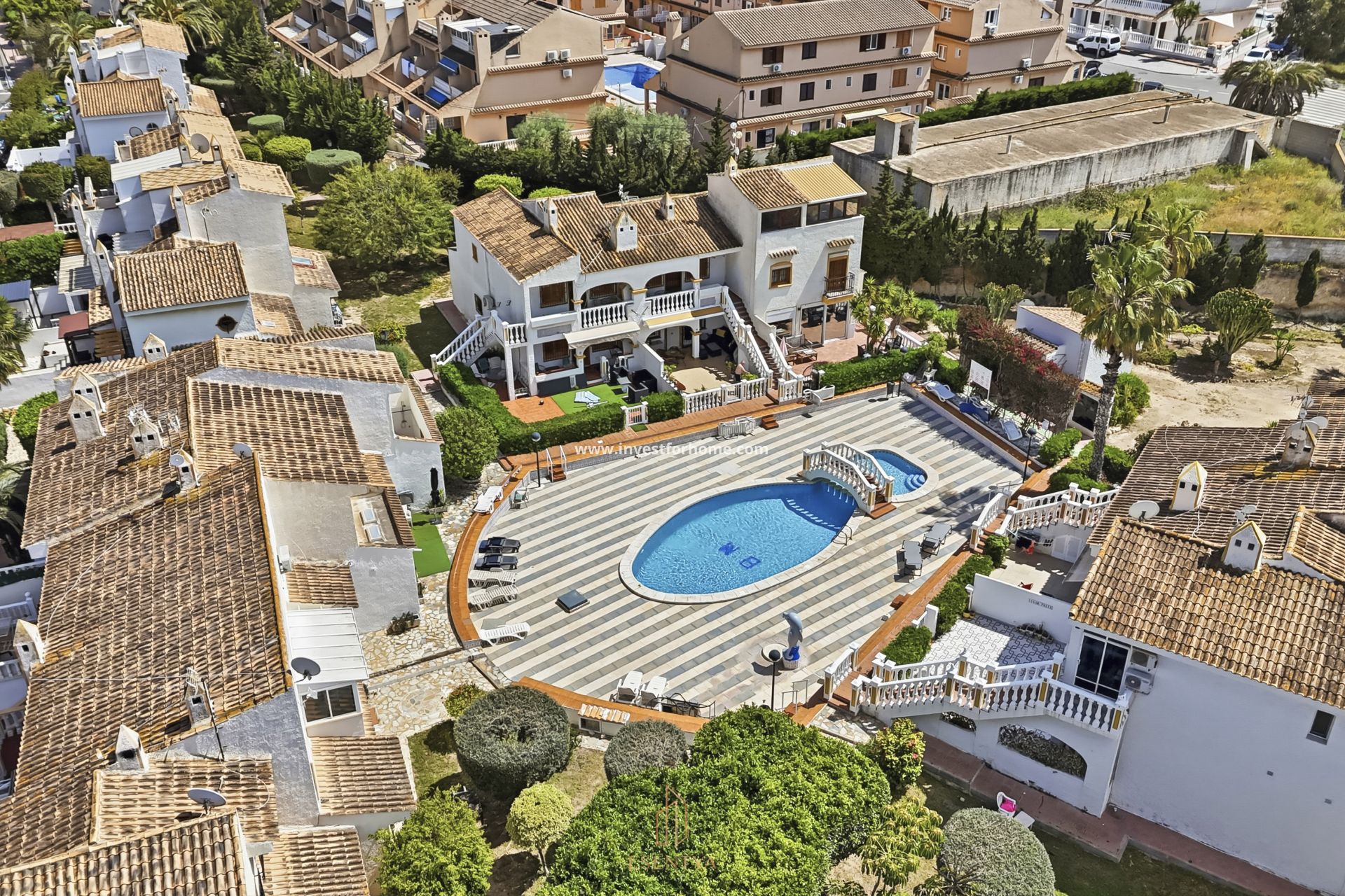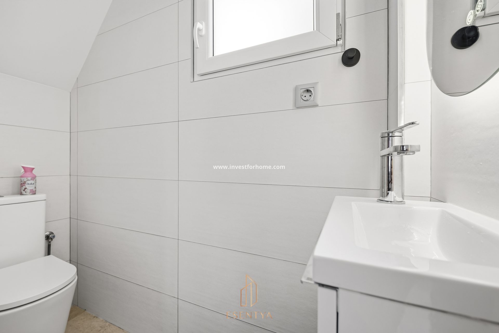 Maison mitoyenne rénovée avec terrasse et espace barbecue à Los Altos, Torrevieja. Maison mitoyenne d’angle entièrement rénovée en 2026, située dans un quartier résidentiel avec piscine communautaire. Elle offre 86 m² construits sur un terrain de 60 m², avec une terrasse de 20 m² et un espace barbecue. Le rez-de-chaussée comprend un salon meublé, une cuisine indépendante entièrement équipée avec accès à un patio fermé avec buanderie et douche, ainsi qu’un toilette invités et un hall d’entrée avec placard intégré. À l’étage, 2 chambres avec mobilier neuf et 1 salle de bain. Orientation ouest, fenêtres double vitrage et sol en céramique. Caractéristiques principales: 2 chambres 2 salles de bain 86 m² construits Terrain de 60 m² en angle Terrasse de 20 m² avec espace barbecue Orientation ouest Année de construction : 1993 Rénovée en 2026 Cuisine indépendante équipée Patio fermé avec buanderie et douche Salon meublé (hors TV) Toilette invités au rez-de-chaussée Hall avec placard intégré Double vitrage Sol en céramique Piscine communautaire Frais annuels : Charges : 350 € IBI : 250 €