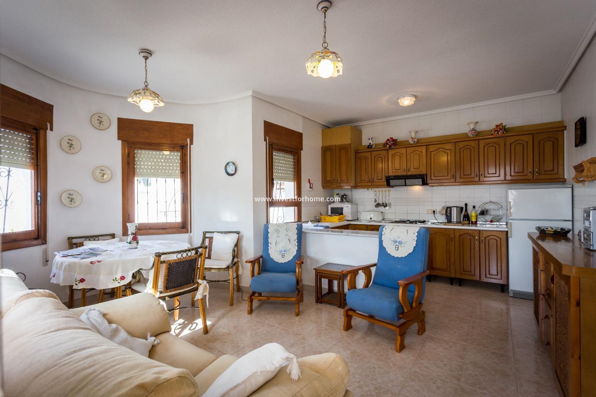 Charmante villa de style espagnol de plain-pied, construite sur un grand terrain de 400m2 avec parking privé. La propriété se compose de 2 chambres spacieuses, salle de bains, salon avec cuisine américaine et terrasse.