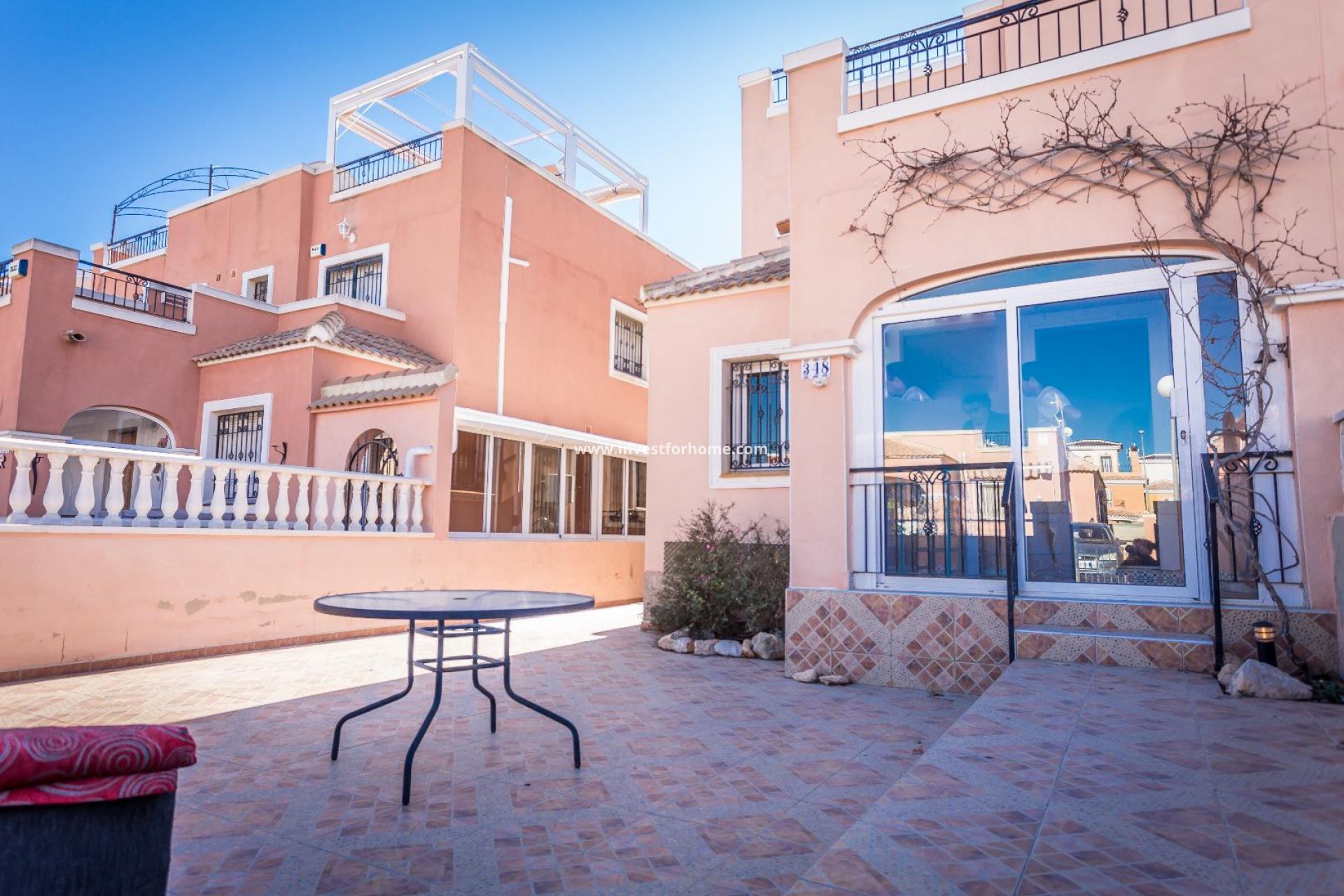 Cette belle maison dispose de 3 chambres et 2 salles de bains. Elle est située dans une urbanisation tranquille près de la ville de Los Montesinos. Il y a de beaux parcs communaux et il y a une belle piscine. A l'avant de la maison se trouve une terrasse spacieuse et un parking pour votre voiture sur un espace privé. La maison est entièrement meublée et comprend des électroménagers. Les nombreuses terrasses offrent toujours un rayon de soleil garanti. Il y a une terrasse spacieuse à l'avant de la maison, aussi une belle terrasse sur le côté de la cuisine, une belle terrasse à la chambre principale et un grand solarium. Une chambre et une salle de bains au rez-de-chaussée. Au premier étage se trouvent deux chambres et une salle de bains.