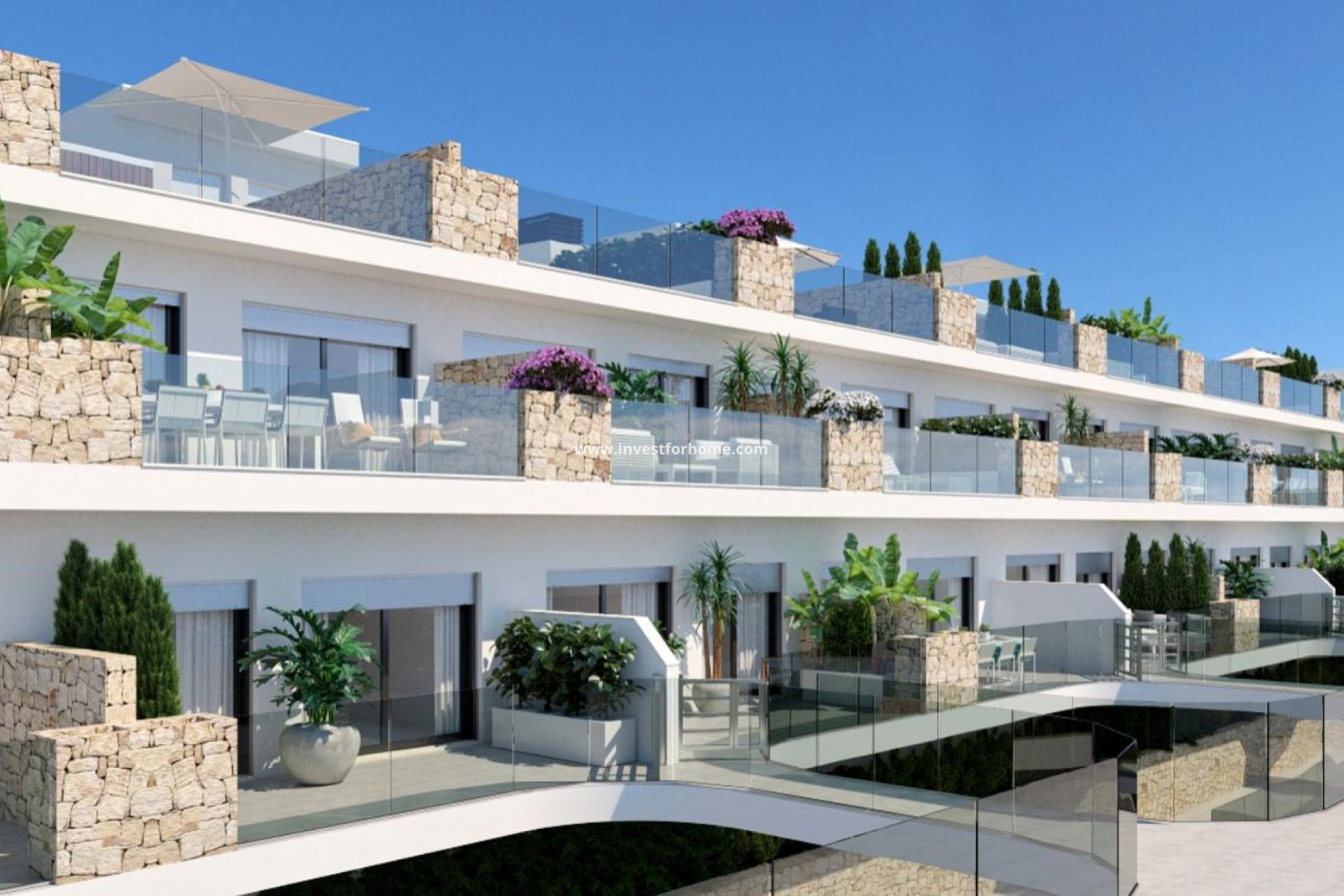 Superbes appartements de 2 ou 3 chambres et duplex à Gran Alacant. L'appartement dispose d'une cuisine ouverte et d'un coin salon, de 2 ou 3 chambres et de 2 salles de bains et W.C . Chambre principale avec avec salle de bains attenant . De la cuisine, vous avez accès à la buanderie . Depuis le salon et la chambre principale, vous avez accès à la terrasse en partie couverte avec une vue panoramique magnifique. Les appartements sont livrés avec pré-installation de AC et un garage inclus dans le prix.