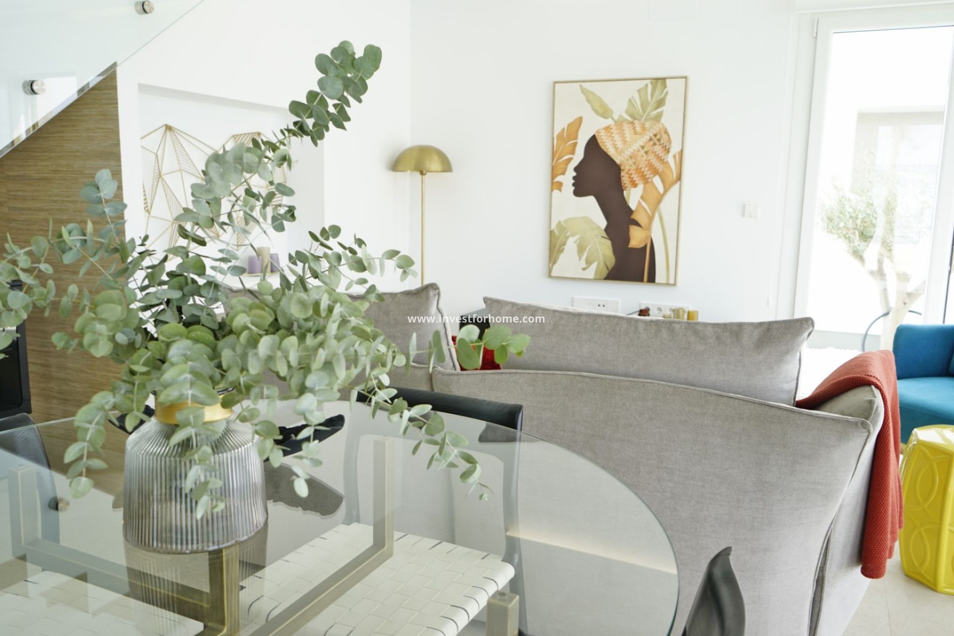 Ces villas de nouvelle construction se trouvent à côté du terrain de golf sur la Costa Blanca et se composent de 3 chambres spacieuses et de 3 salles de bain, d’une surface totale de 110 m2, d’une grande terrasse, construite sur un terrain de plus de 200 M2 piscinable pour un coût additionnel de 12500 € + TVA Au rez-de-chaussée, séjour ouvert - salle à manger, cuisine équipée, 1 chambre à coucher, salle de bain et au premier étage, 2 chambres en suite.