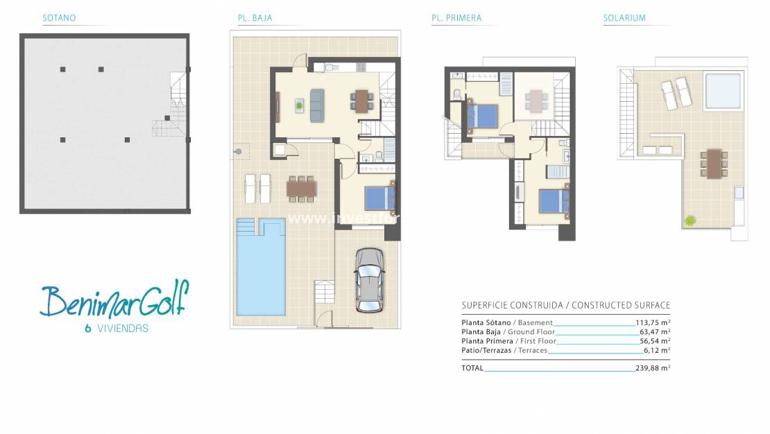 La résidence se compose de villas de style moderne sur des parcelles privées avec terrasse, parking et piscine privée. Les maisons se composent d'un salon, d'une cuisine, de 3 chambres (dont deux en suite), de 3 salles de bains, d'un sous-sol et d'un solarium avec une vue privilégiée. Tous soigneusement conçus avec des matériaux de haute qualité pour satisfaire les clients les plus exigeants.