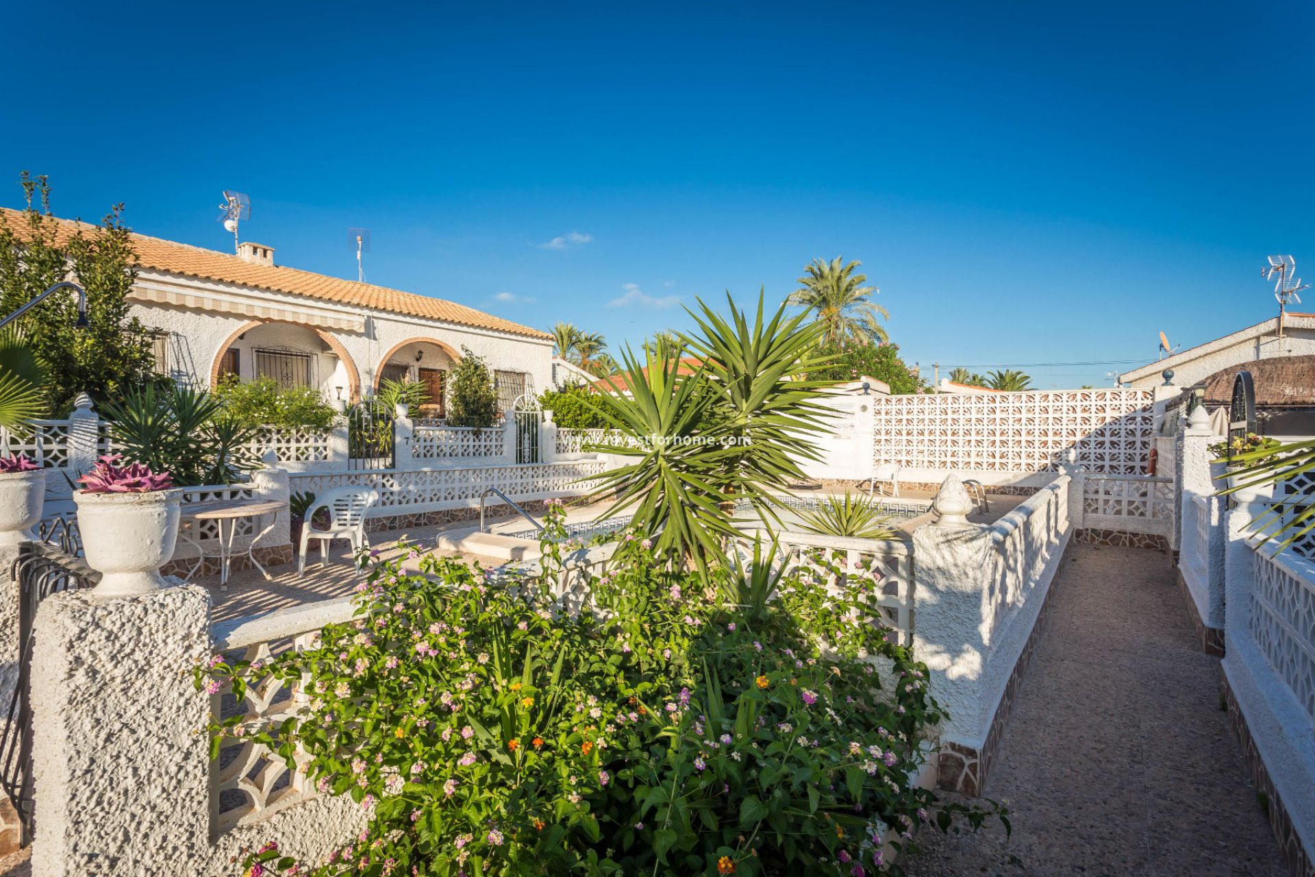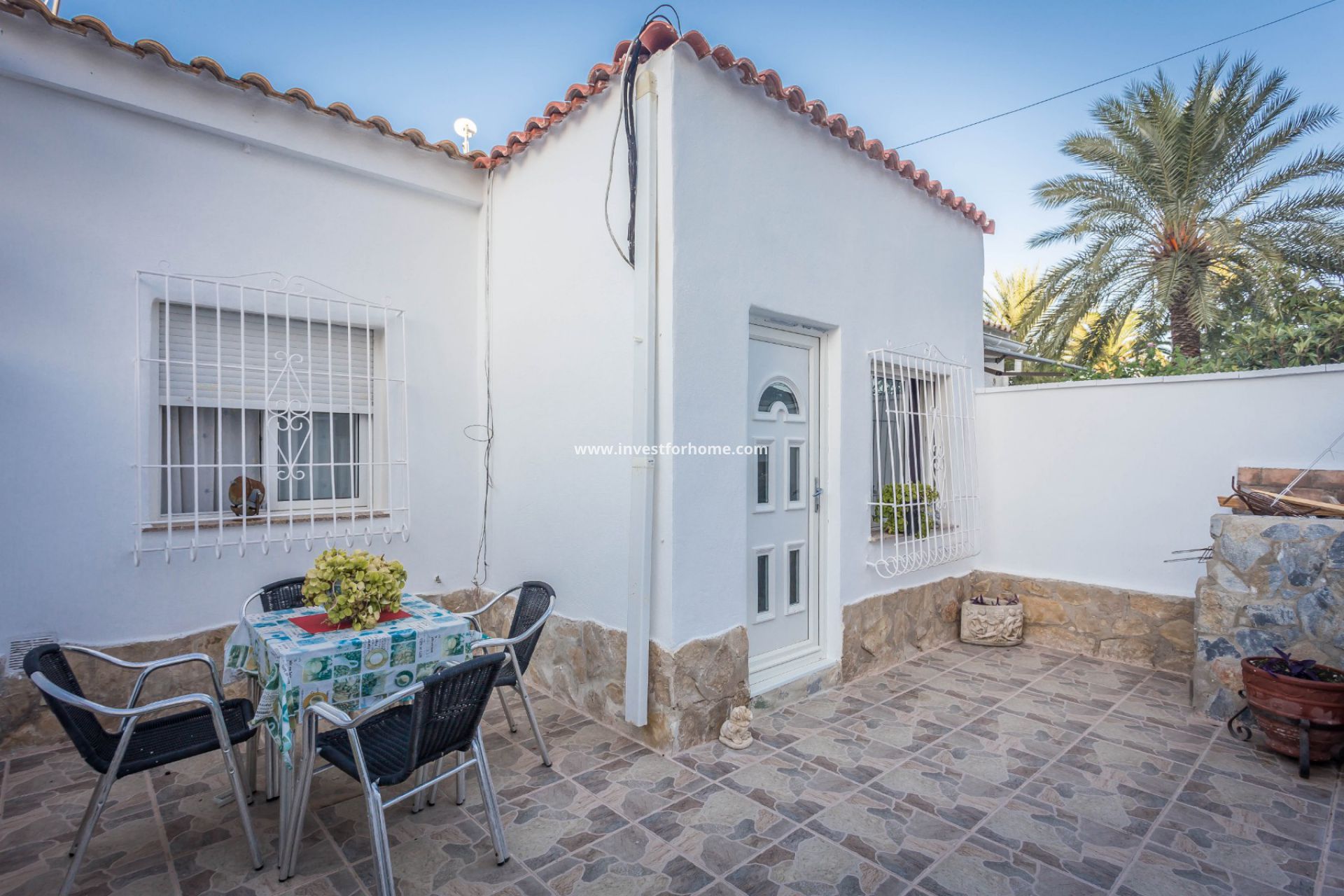 Belle petite maison sur un étage avec deux chambres à coucher, salle de bains avec baignoire, salon, cuisine entièrement équipée avec électroménager et agréable terrasse exposé sud de 20m2 avec barbecue. Elle dispose d'un parking commune et privatif.Il y aussi une piscine commune avec un grand jardin.Il est possible d'agrandir la maison en construisant un premier étage.Toutes les commodités sont accessibles à pied et à seulement 1 km des plages voisines de Torrevieja et de La Mata.