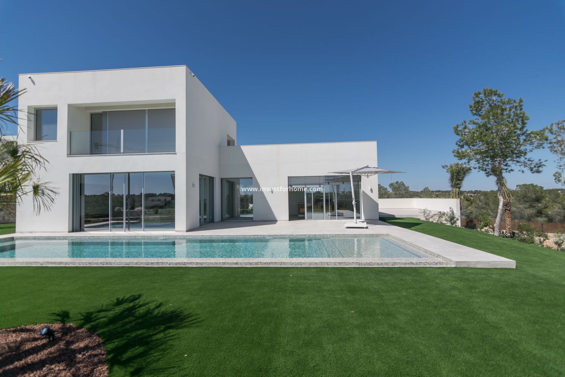 Clé en main. C'est une villa de luxe impressionnante, située sur l'une des plus hautes parcelles du complexe de golf de Las Colinas. Grande villa individuelle moderne. 5 chambres 4 salles de bains sur deux niveaux avec piscine privée, terrasses spacieuses, espace barbecue et garage / sous-sol. La qualité haut de gamme se termine sur un grand terrain exceptionnel offrant une vue fantastique sur le golf et la mer. Au rez-de-chaussée il y a 2 chambres à coucher et une salle de bain. Depuis le salon et la salle à manger, vous avez une vue sur le golf et la mer. La cuisine ouverte et la salle à manger bénéficient de la lumière naturelle des grandes fenêtres donnant sur la terrasse. Derrière la cuisine se trouvent des toilettes invités et une buanderie.Au 1er étage, vous trouverez 3 chambres doubles et 2 salles de bain. Chambre à coucher principale de 34 m2 avec salle de bain et accès à un petit balcon. De la chambre principale, vous avez une vue sur le parcours de golf, les montagnes, la mer et même la Manga del Mar Menor. Au premier étage, vous trouverez également une autre terrasse de 54 m2 avec les mêmes vues que la chambre principale, ainsi que des vues vers l’entrée du golf de Las Colinas.