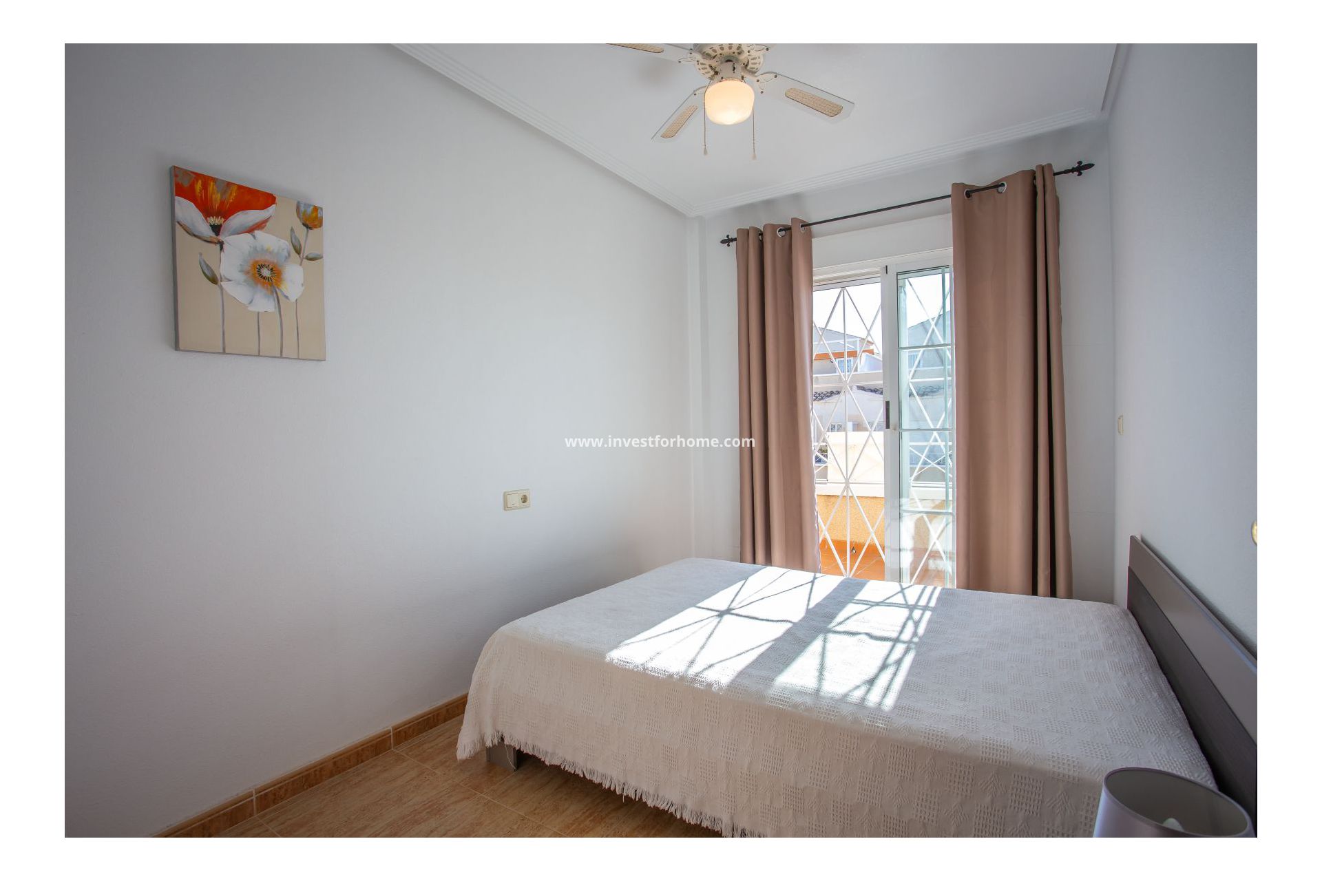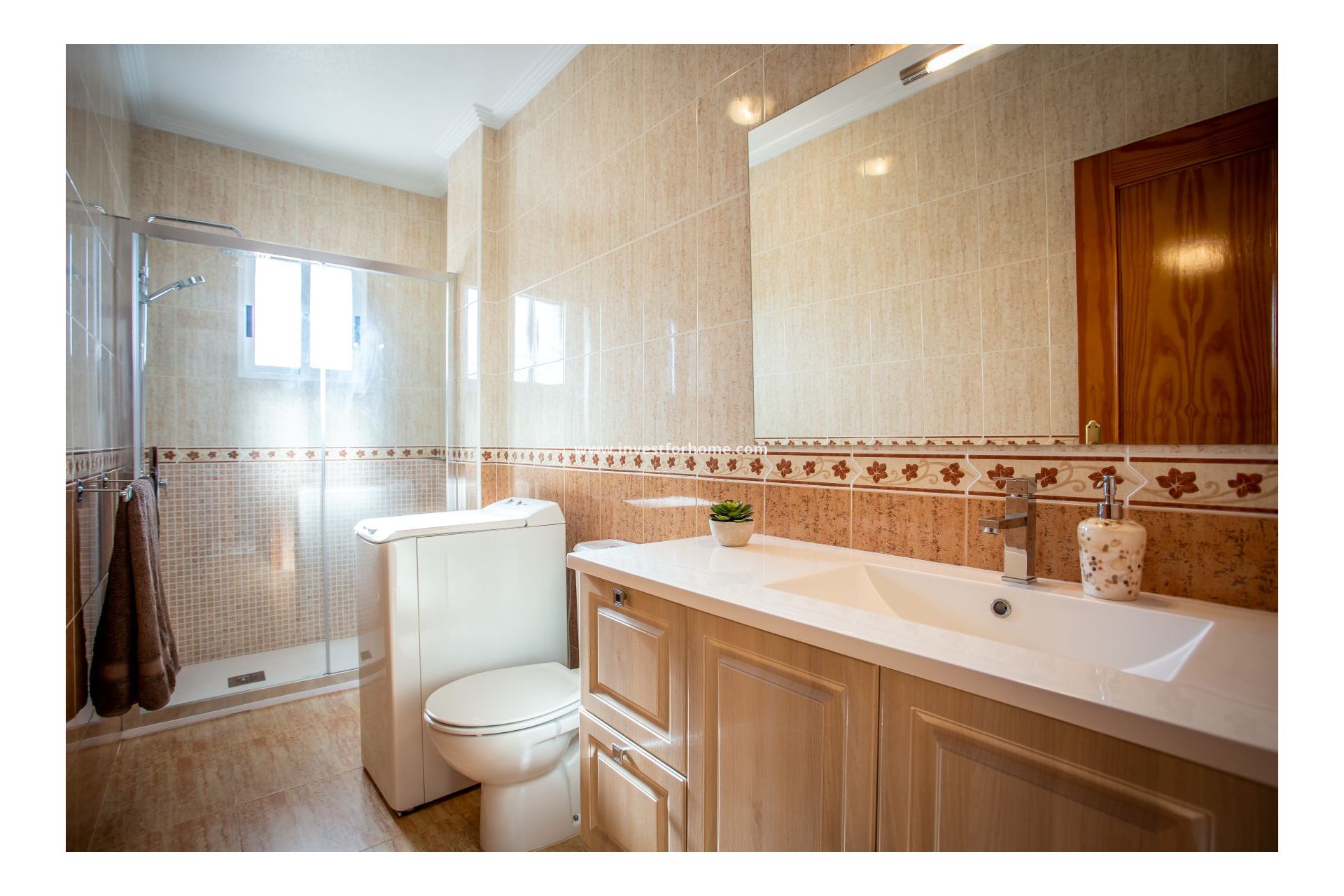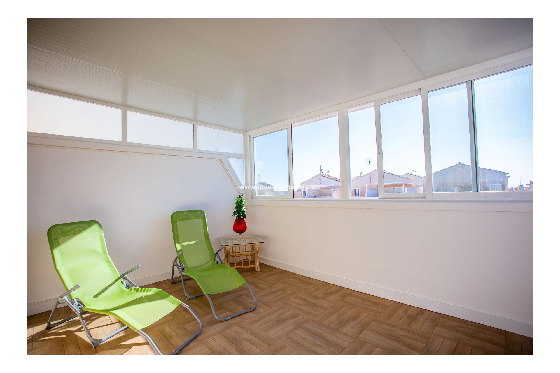 Belle maison de ville à La Florida, Orihuela Costa. La propriété se compose de 2 chambres et 1 salles de bain réparties sur 2 étages. Au rez-de-chaussée, vous trouverez une grande salle à manger-salon, une cuisine indépendante équipée avec électroménager, 1 toilettes . Au premier étage, vous trouverez 2 chambres, 1 salle de bain et terrasse. La propriété dispose également d'un solarium fermé privé où il y a possibilité d'avoir une troisième chambre. Il y a aussi une terrasse et un jardin devant la maison. En excellent état et vendu meublé. La maison de ville est dans un complexe privé avec piscine commune.