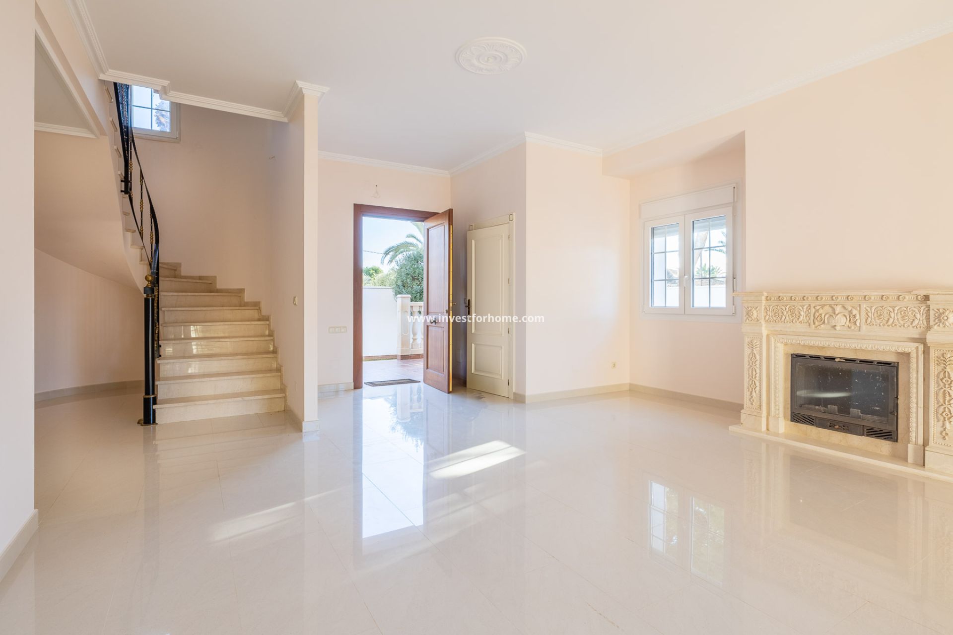 Villa indépendante à Cabo Roig Villa de style méditerranéen située à seulement 500 mètres de la plage de Cala Capitán, à Cabo Roig. Construite en 2017, cette propriété offre 200 m² répartis sur 2 étages avec 4 chambres et 4 salles de bain. Au rez-de-chaussée, vous trouverez un spacieux salon-salle à manger avec cheminée, une cuisine ouverte entièrement équipée, un système de chauffage centralisé, un débarras et un solarium. À l'extérieur, la parcelle de 517 m² dispose d'une piscine privée et d'un espace de stationnement. Caractéristiques principales : 4 chambres et 4 salles de bain. 200 m² construits. Année de construction : 2017. Parcelle de 517 m². Piscine privée. Chauffage centralisé. Solarium. Débarras. Emplacement : À 500 mètres de la plage Cala Capitán. À seulement 1,5 km du centre commercial Zenia Boulevard. À 3,8 km du golf de Las Colinas. À proximité des commerces, bars et restaurants. Taxes : IBI : 806 €/an.