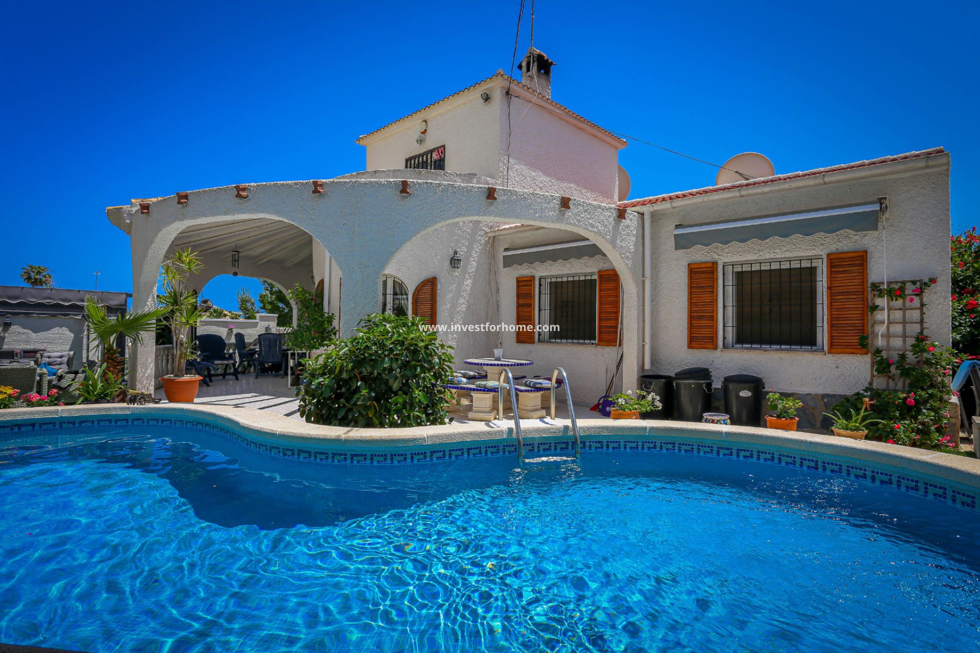 Bienvenue dans cette villa de style méditerranéen à Villamartin. La villa dispose de 3 chambres, 2 salles de bains et un salon avec une grande cuisine séparée entièrement meublée.Depuis le salon, vous pouvez accéder à une autre chambre et un balcon.Il y a plusieurs caractéristiques telles que cheminée, alarme, double vitrage, pergola et piscine privée .