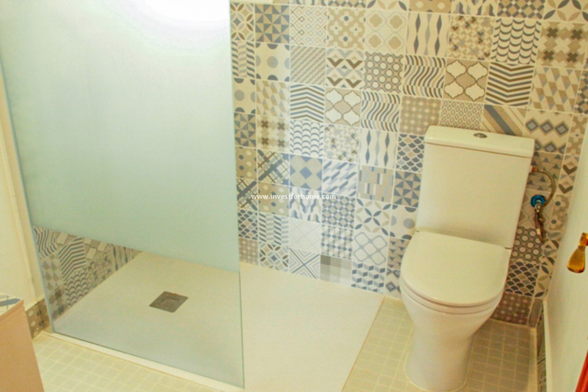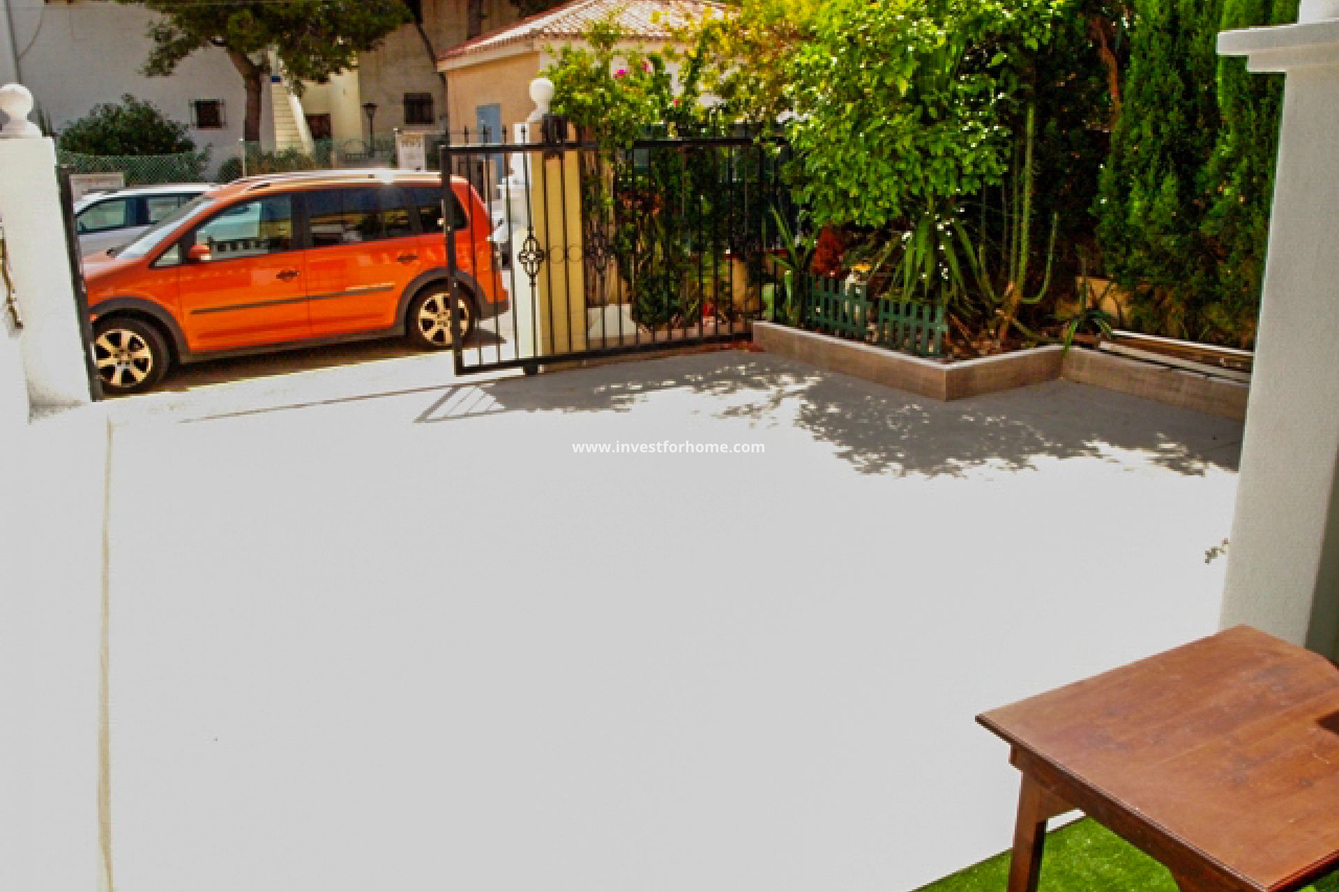 Fantastique bungalow rénové au rez-de-chaussée, orienté sud-est, avec une grande terrasse à l'avant avec possibilité de garer 2 voitures.