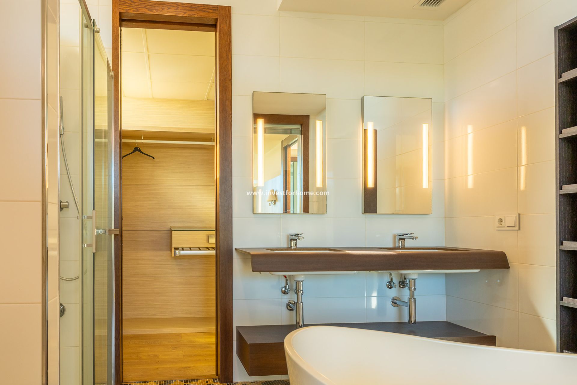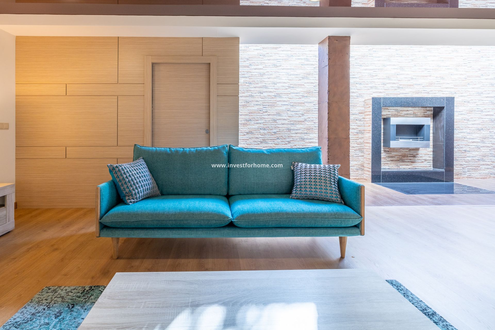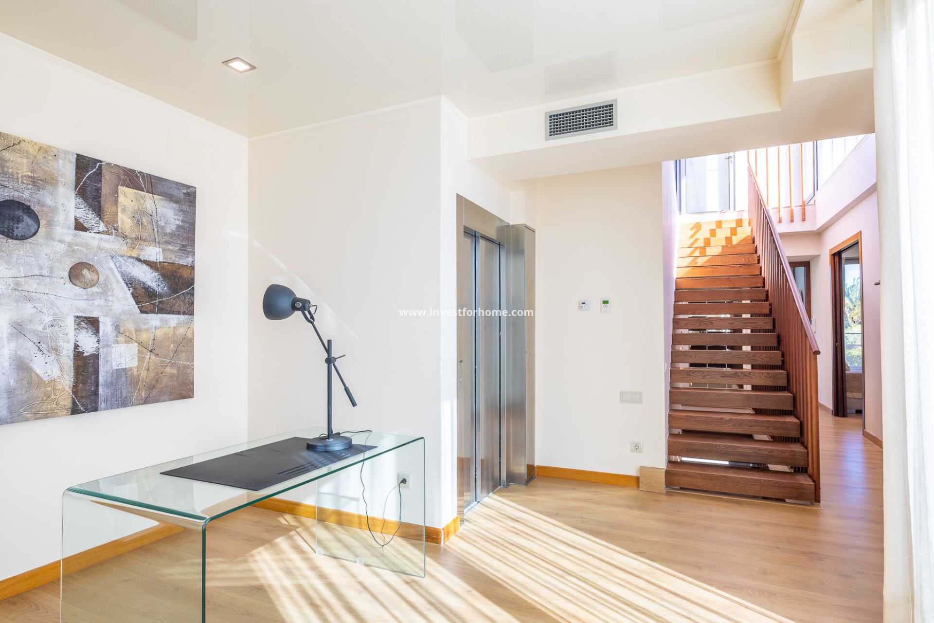 Villa de luxe à La Zenia – À quelques minutes de la plage et du golf Découvrez cette impressionnante villa au cœur de La Zenia, où luxe, confort et situation privilégiée se combinent parfaitement. Situé à quelques pas d'un large choix de restaurants, à seulement 800 mètres des plages de La Zenia et de Cabo Roig, et à quelques minutes à pied du célèbre centre commercial Zenia Boulevard. Pour les amateurs de golf, la région possède certains des meilleurs parcours de la Costa Blanca. Las Ramblas, Villamartin et Campoamor sont à seulement 5 minutes en voiture, tandis que l'exclusif Las Colinas Golf & Country Club est à 10 minutes. Détails de la propriété: Construite en 2015, cette élégante villa est implantée sur un terrain de 700 m², avec une surface habitable de 280 m². Conçu pour un confort maximal, il dispose de 2 grandes chambres avec salles de bains privatives et dressings. De plus, il dispose d'un sous-sol de 140 m² avec un salon spacieux, un sauna finlandais et une cave à vin, idéal pour se détendre et profiter entre amis ou en famille. Caractéristiques principales : 2 chambres | 4 salles de bain Surface totale construite : 420 m² Garage privé Piscine et jardin privés Ascenseur et solarium Sauna finlandais et cave à vin Orientation Ssur Suppléments : Entièrement meublé Grande terrasse Porte automatique et sécurité Climatisation et débarras Espace barbecue extérieur Distances: Plage: 800 m Aéroport d'Alicante : 65 km Parcours de golf : 3,5 km Cette villa exceptionnelle offre un style de vie exclusif dans l'une des zones les plus recherchées de la Costa Blanca. Que ce soit comme résidence permanente ou comme lieu de vacances de luxe, cette propriété a tout pour plaire. Contactez-nous dès aujourd'hui pour plus d'informations ou pour planifier une visite.