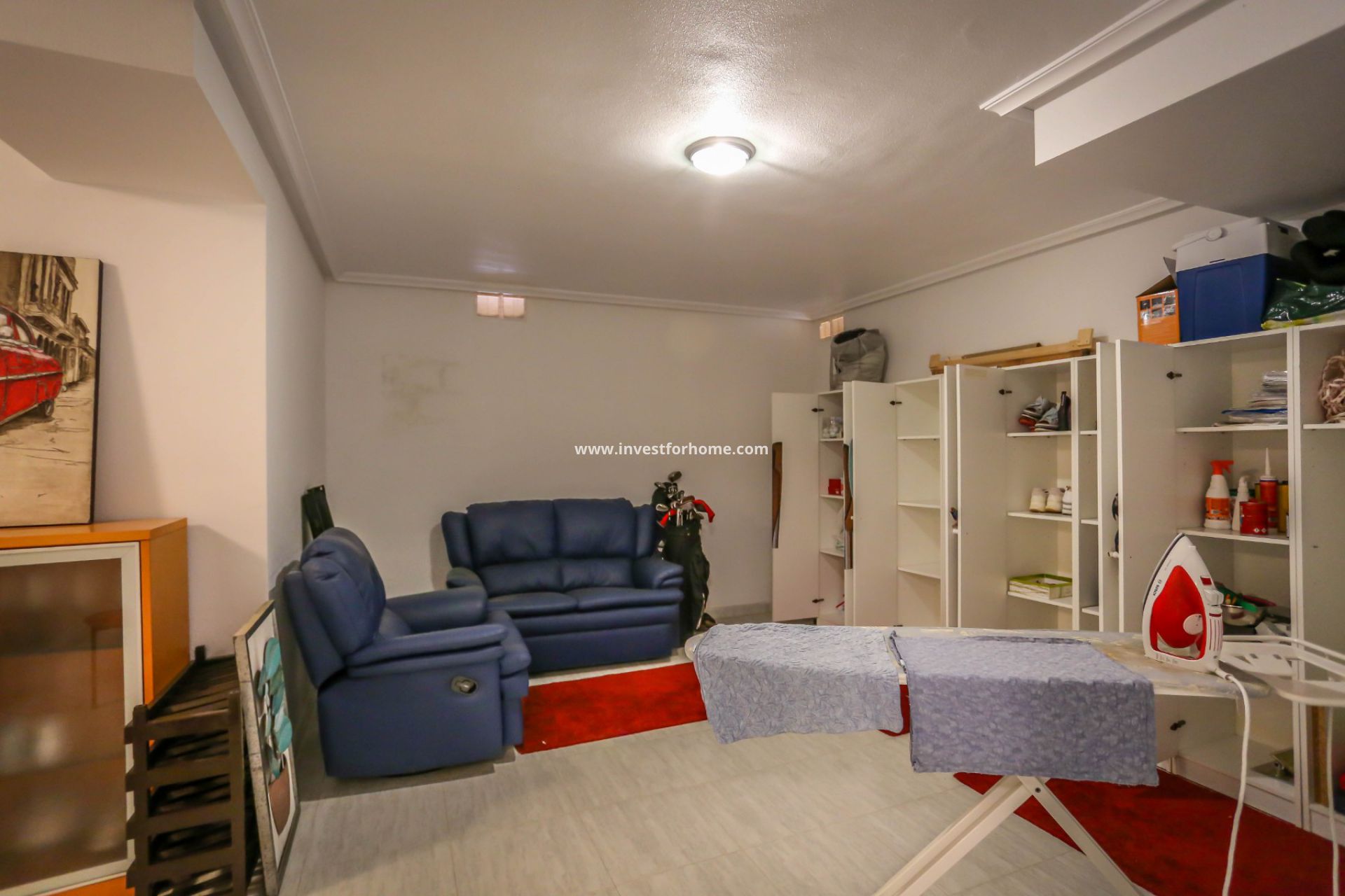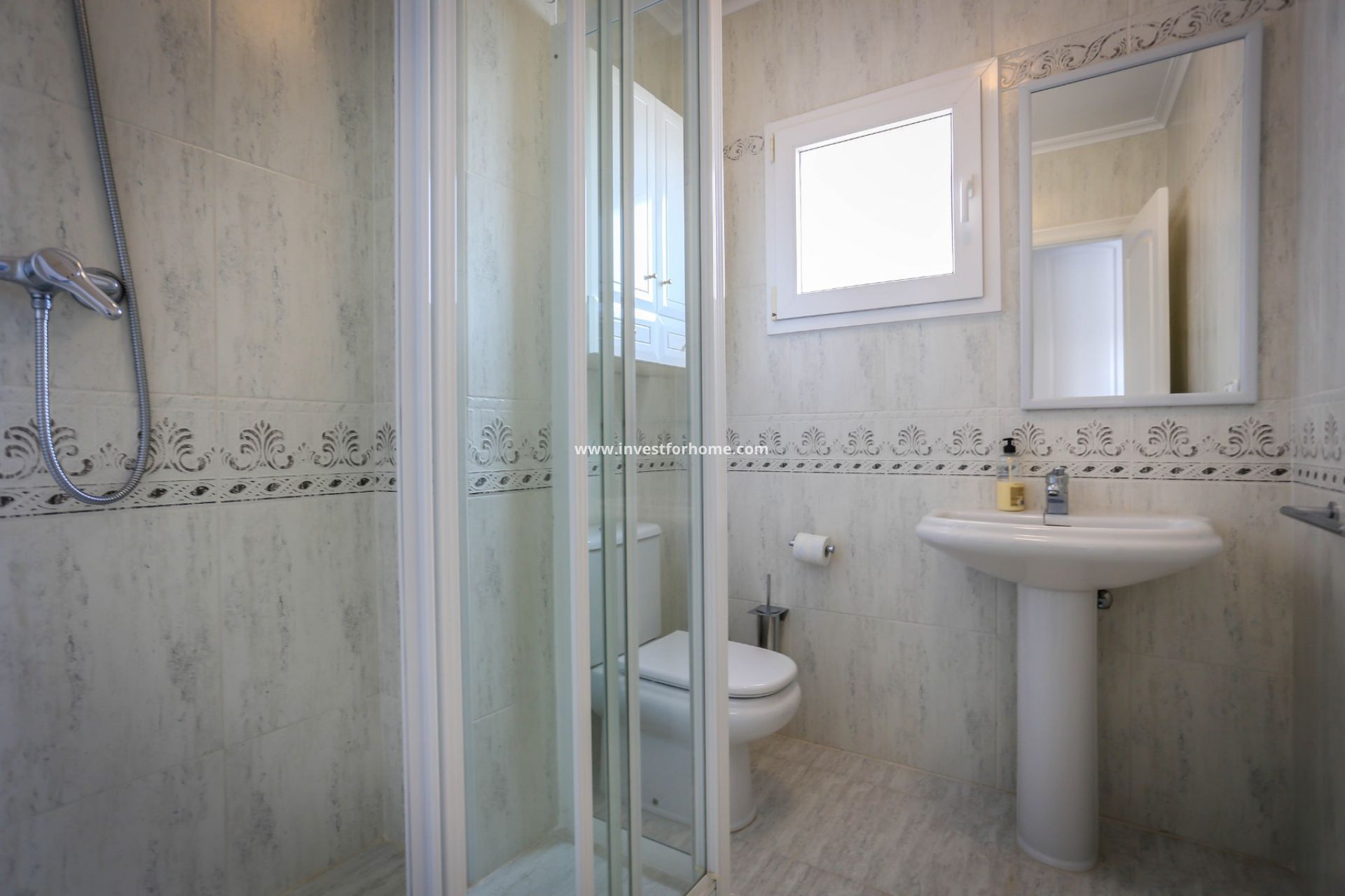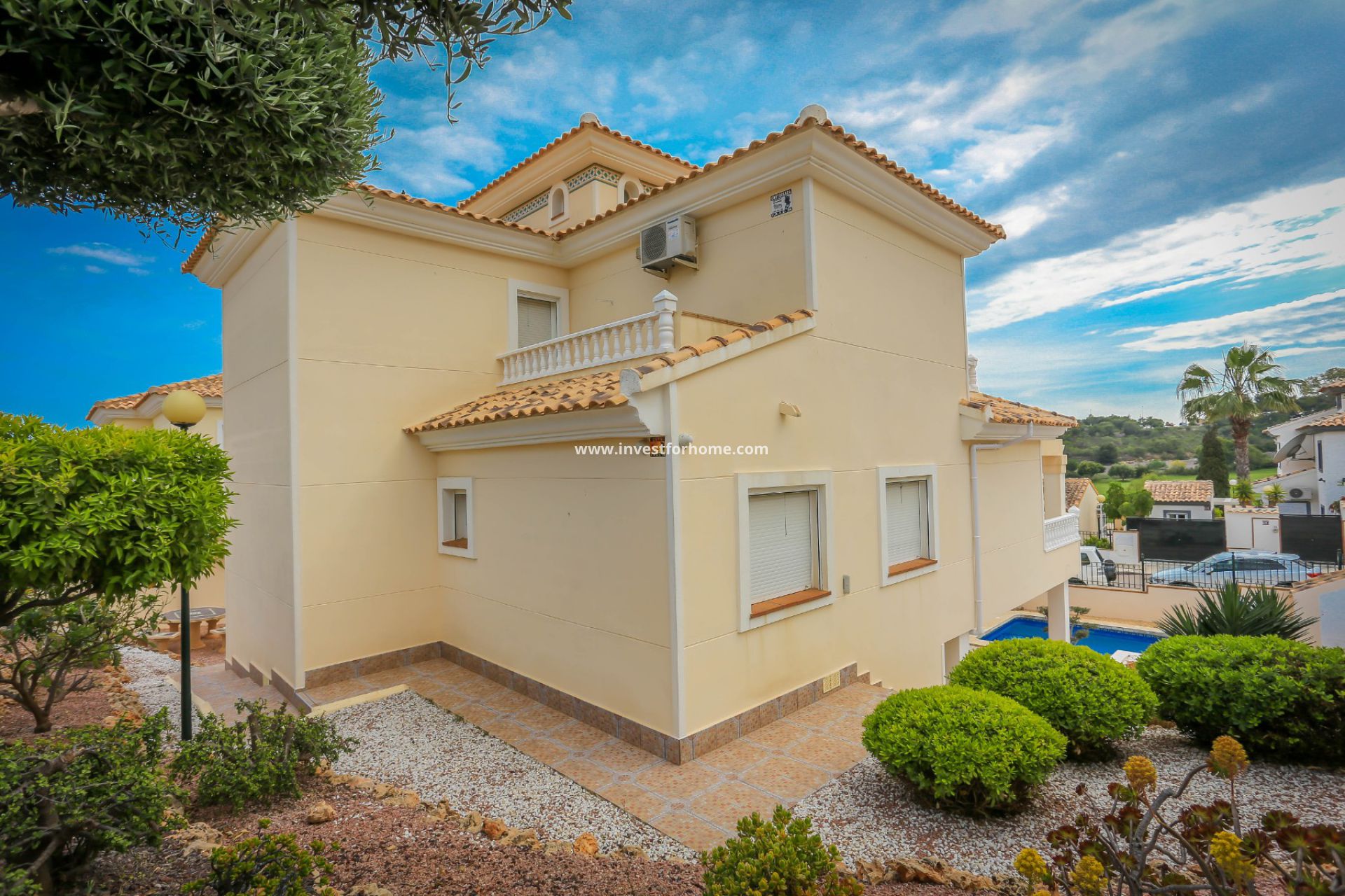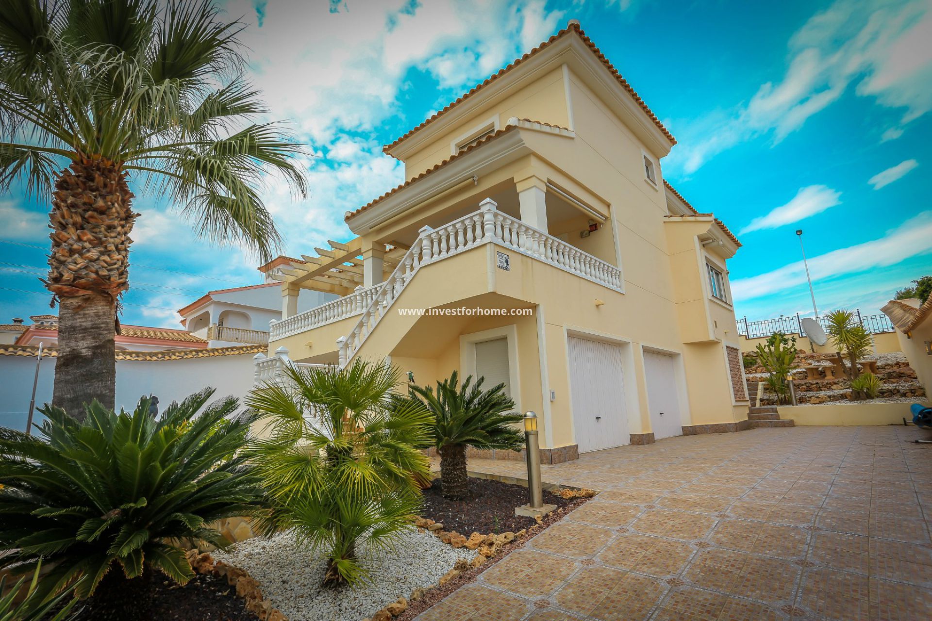 Magnifique villa familiale spacieuse dans le Golf de Lomas de Campoamor comprenant 5 chambres et 4 salles de bains. La villa a une surface habitable totale de 270 m² répartis sur trois étages. Le rez-de-chaussée se compose d'une entrée, de deux chambres doubles , salle de bain et W.C . En outre, une grande cuisine équipée et un salon avec un espace pour une salle à manger et un salon. Le premier étage est composé de 3 chambres et 2 salles de bains. Le sous-sol comprend un garage, une buanderie et une salle de bain. La villa est située sur un terrain de 550 m². Dans le jardin, il y a une grande piscine privée et beaucoup d'espace pour s'asseoir à l'extérieur et transats. La villa est située à seulement 4 km des belles plages de sable d'Orihuela Costa. Dans le quartier, vous trouverez toutes les commodités telles qu'un centre commercial, des boutiques, des restaurants, des bars et plusieurs terrains de golf. Cette belle villa est idéale pour les vacances ou toute l'année.
