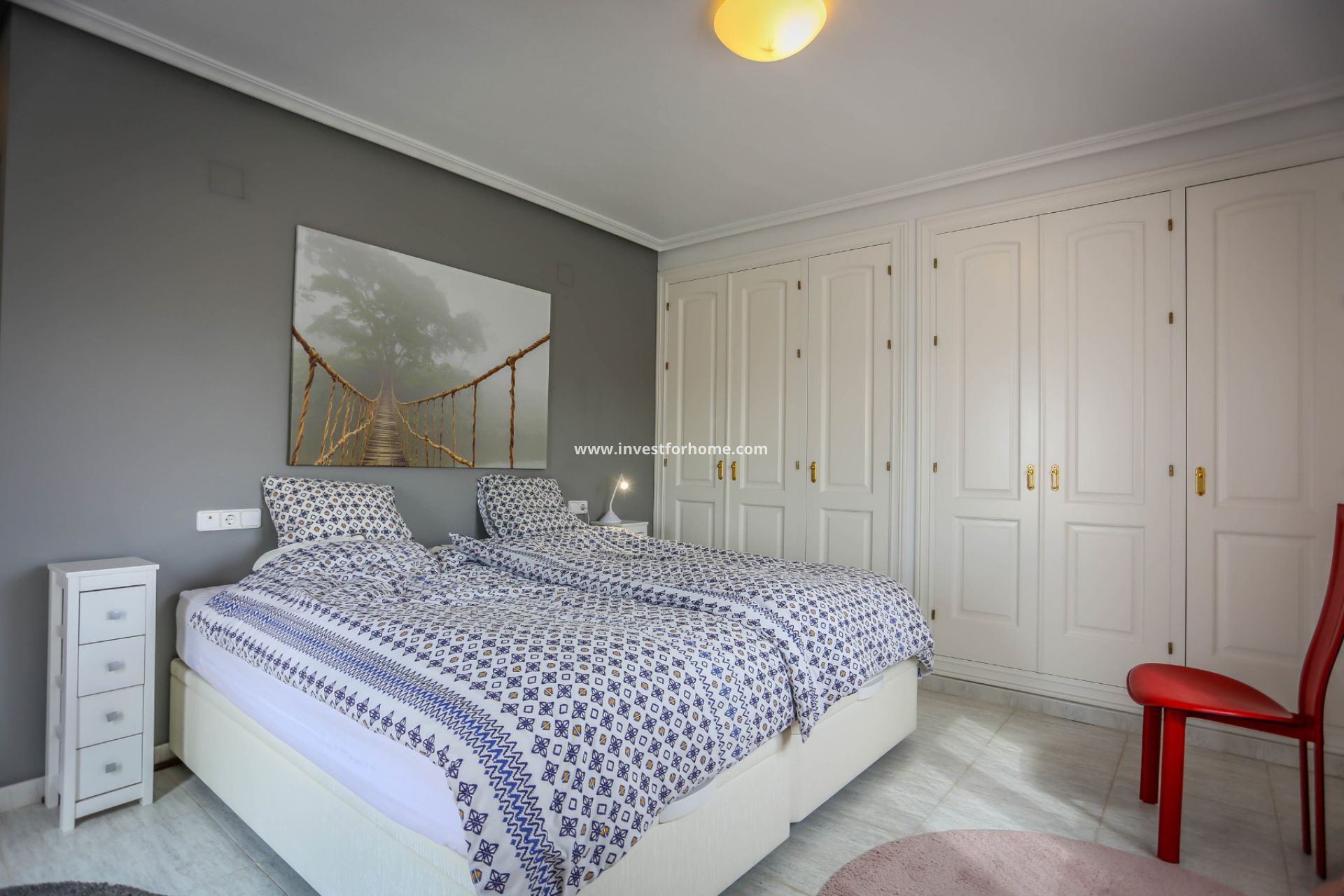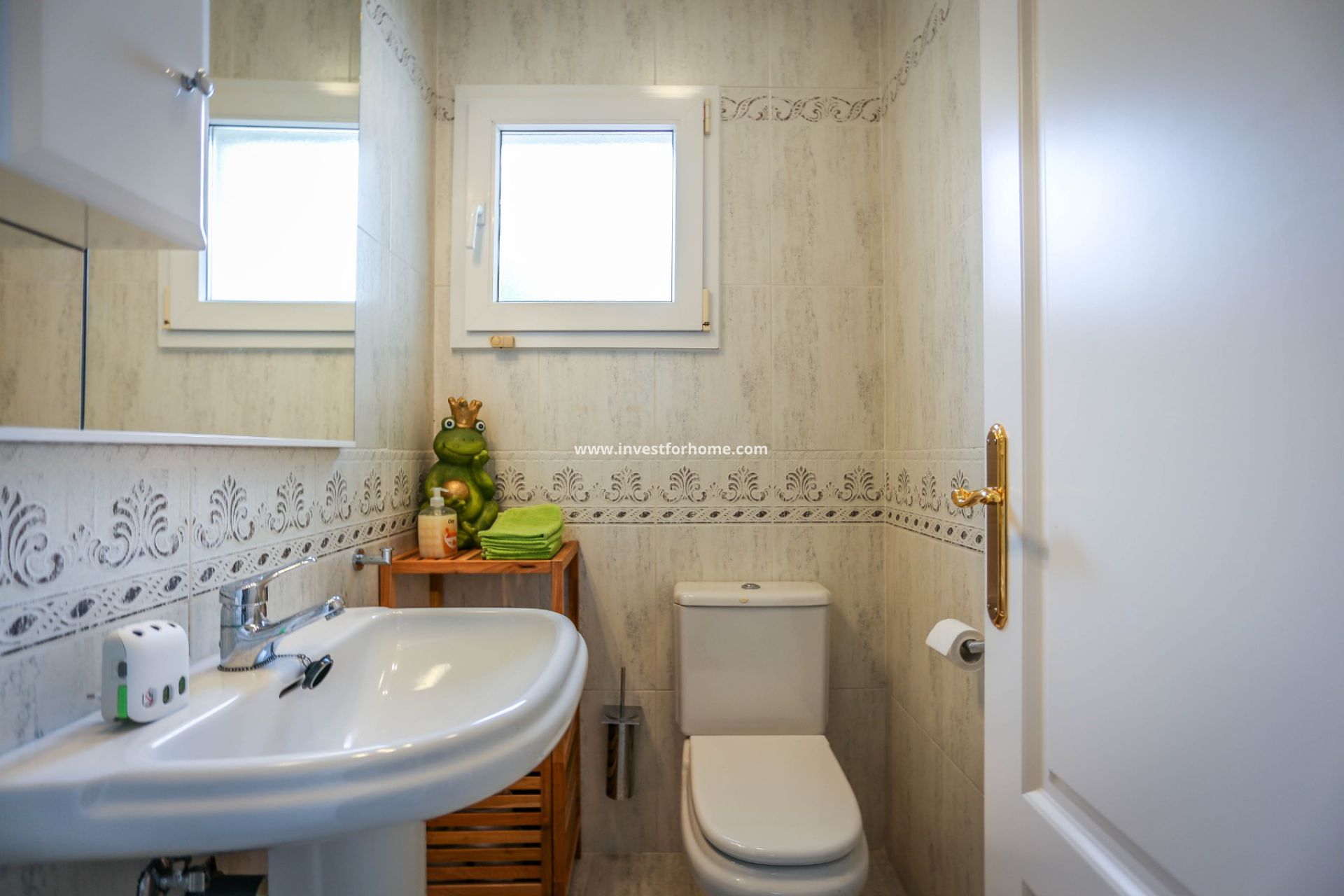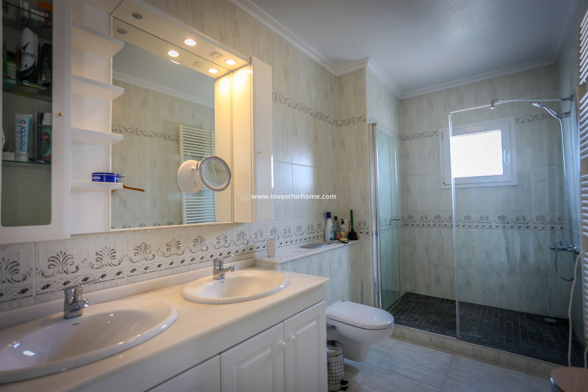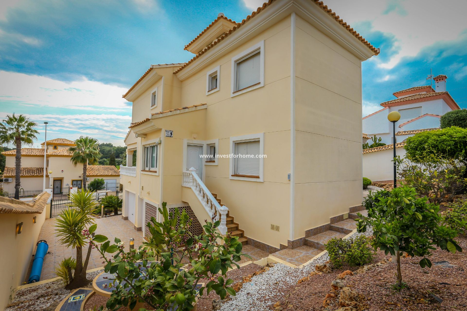 Magnifique villa familiale spacieuse dans le Golf de Lomas de Campoamor comprenant 5 chambres et 4 salles de bains. La villa a une surface habitable totale de 270 m² répartis sur trois étages. Le rez-de-chaussée se compose d'une entrée, de deux chambres doubles , salle de bain et W.C . En outre, une grande cuisine équipée et un salon avec un espace pour une salle à manger et un salon. Le premier étage est composé de 3 chambres et 2 salles de bains. Le sous-sol comprend un garage, une buanderie et une salle de bain. La villa est située sur un terrain de 550 m². Dans le jardin, il y a une grande piscine privée et beaucoup d'espace pour s'asseoir à l'extérieur et transats. La villa est située à seulement 4 km des belles plages de sable d'Orihuela Costa. Dans le quartier, vous trouverez toutes les commodités telles qu'un centre commercial, des boutiques, des restaurants, des bars et plusieurs terrains de golf. Cette belle villa est idéale pour les vacances ou toute l'année.